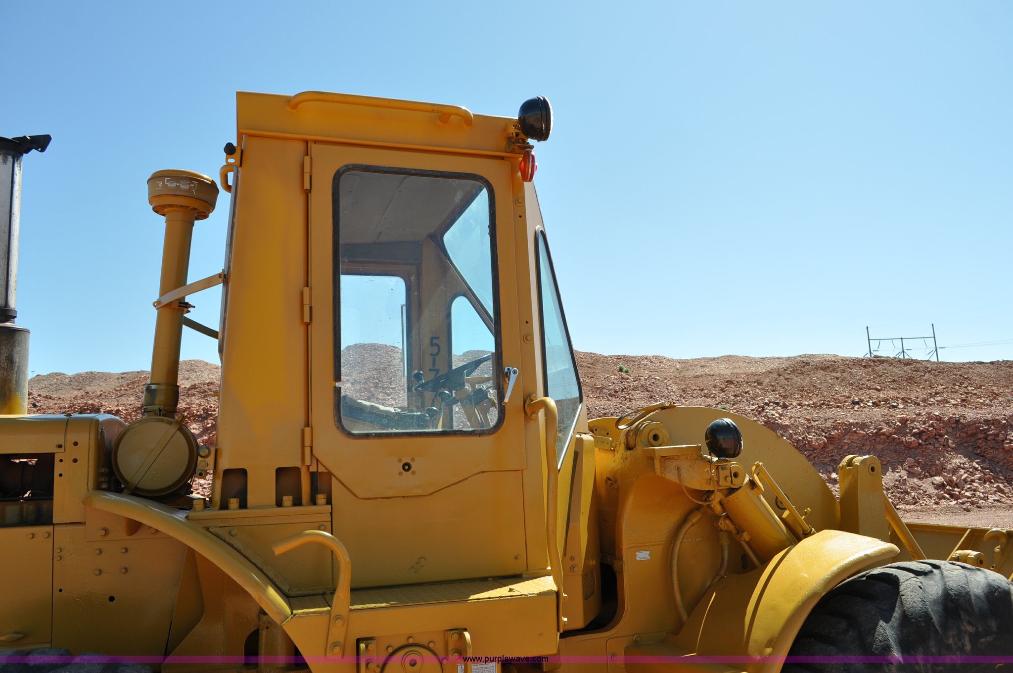 Purple Wave is selling a used Wheel Loader in Wyoming. This item is a 1977 Caterpillar 950 wheel loader with the following: 3,244 hours on meter, Caterpillar 3304 four cylinder diesel engine, Four speed shuttle shift transmission, Enclosed cab, Heat, Work lights, 103"W bucket, (10) teeth, Three cubic yard capacity, 20.5-25 tires, 24,995 lbs. base operating weight, Serial 81J10098