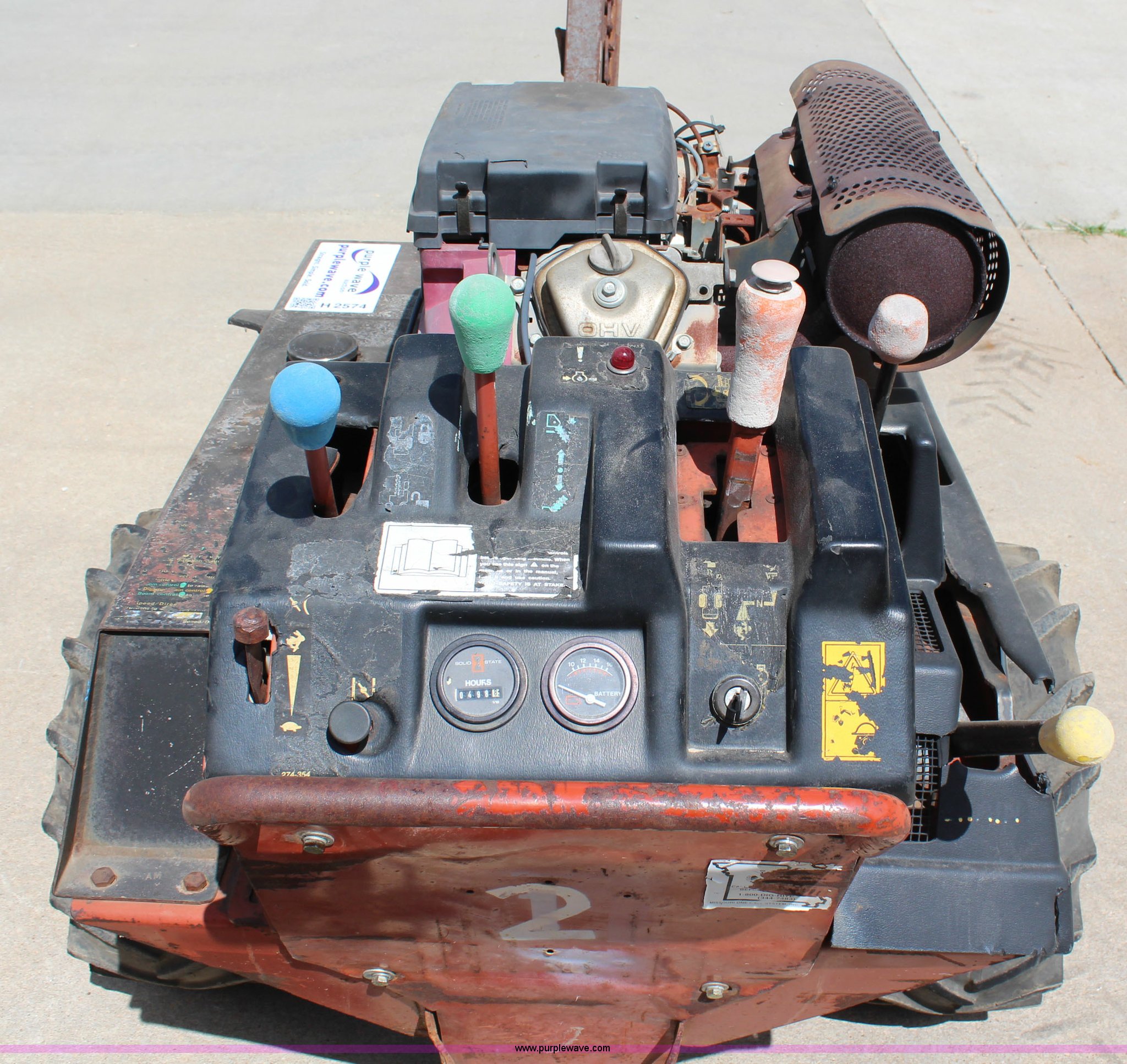 Purple Wave is selling a used Trencher or Rock Saw in Kansas. This item is a Ditch Witch 1820 walk-behind trencher with the following: 498 hours on meter, Honda 20 HP gas engine, 48" maximum digging depth, 23 x 8.50-12 tires