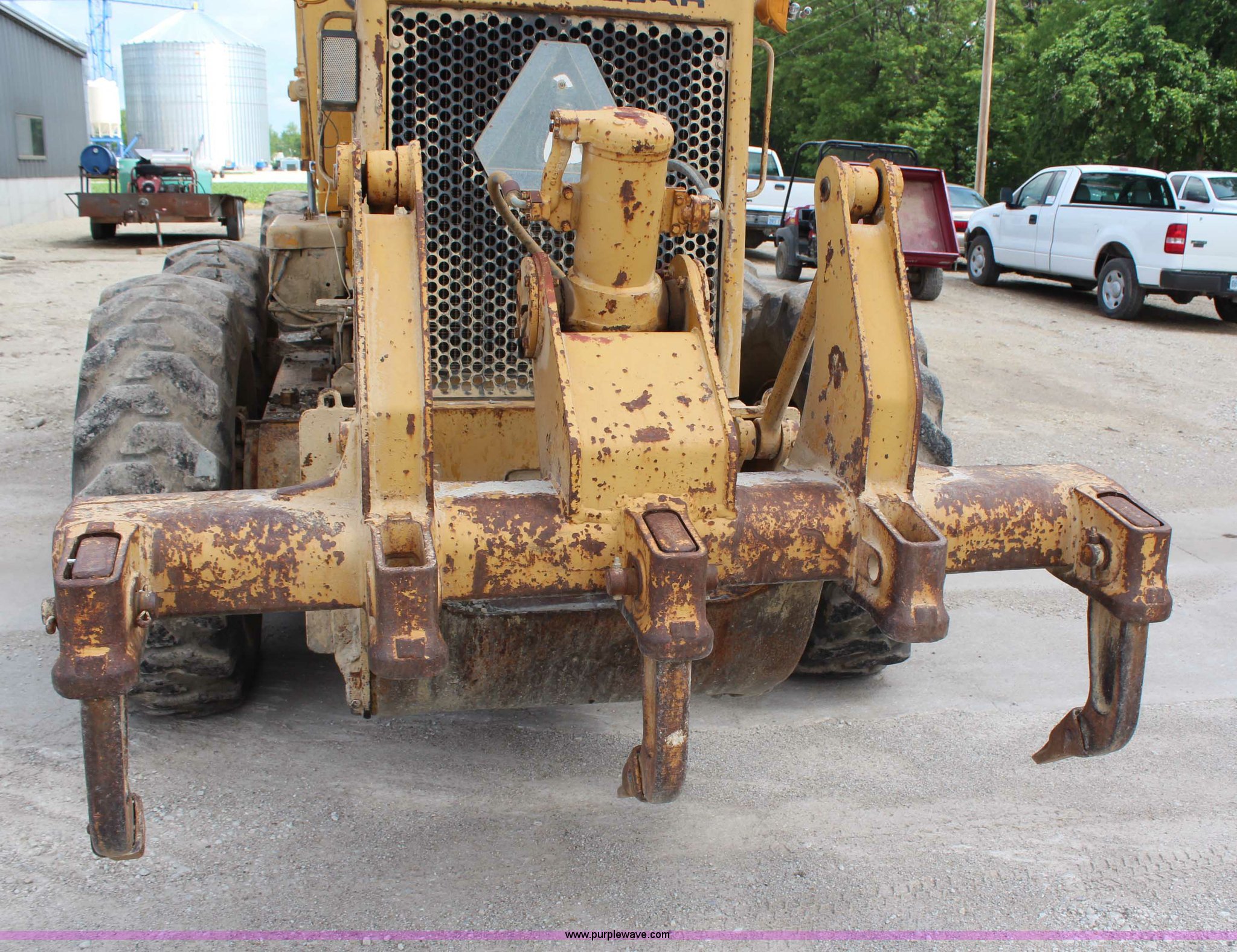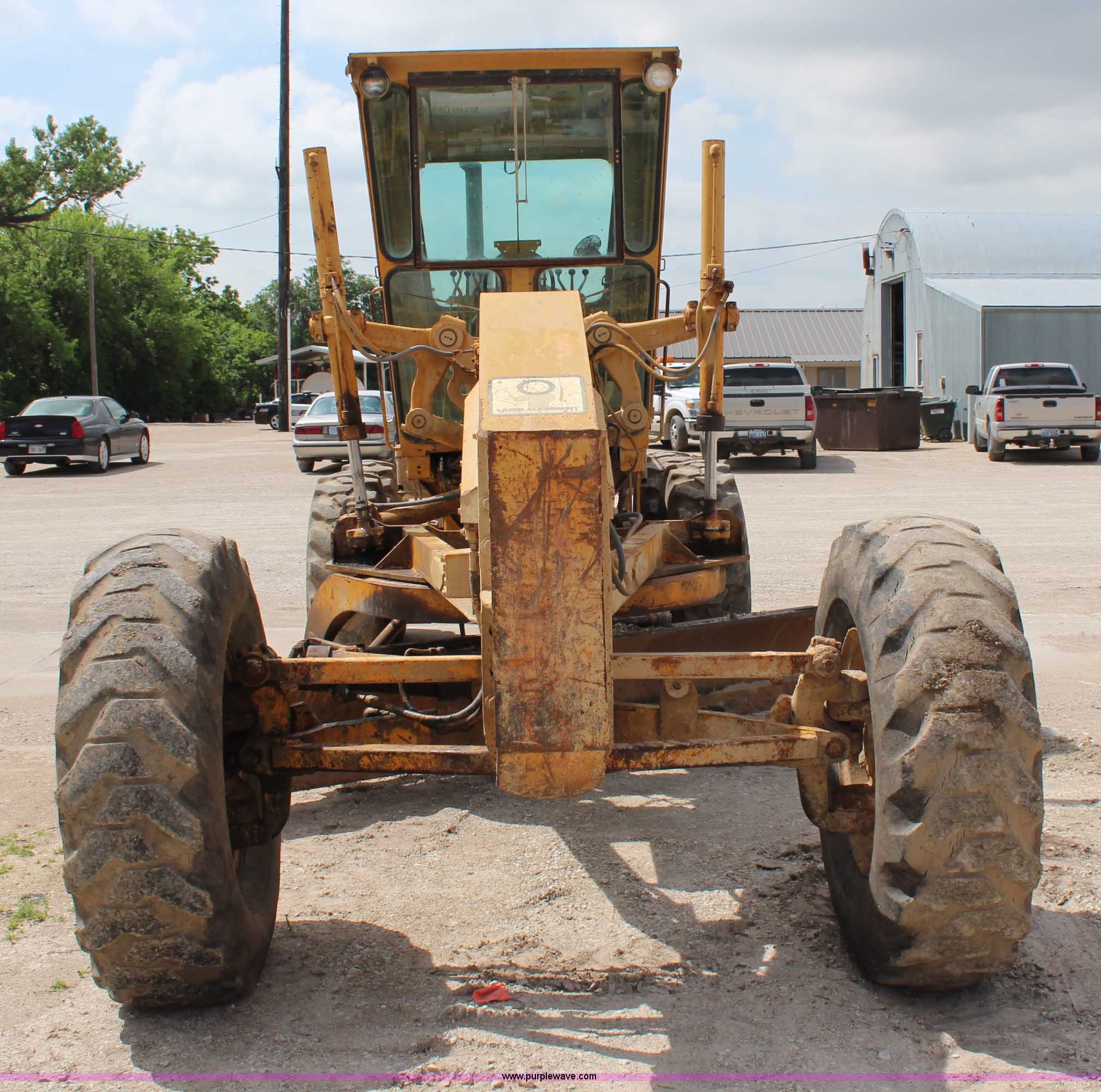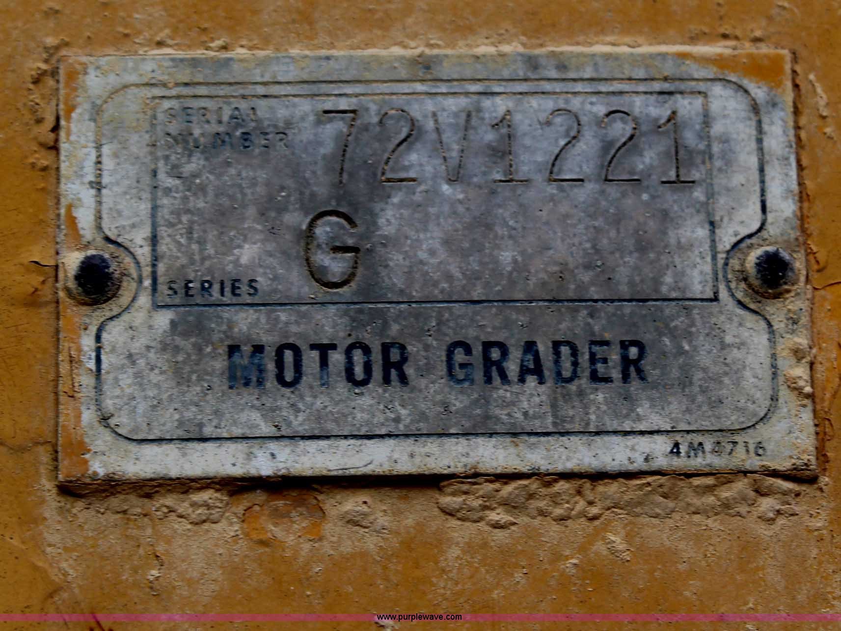 Purple Wave is selling a used Motor Grader in Kansas. This item is a 1976 Caterpillar 140G articulated motor grader with the following: 10,653 hours on meter, Caterpillar 3306 six cylinder turbo diesel engine, 150 HP, Serial 3N43478, Powershift transmission, 6F-6R gears, Locking differential, Four wheel drive, EROPS, Heat, Front work lights, 12' moldboard, Side shift, Rear ripper, Three ripper shanks, 14.00-24 tires, 29,175 lbs. base operating weight, Serial 72V1221