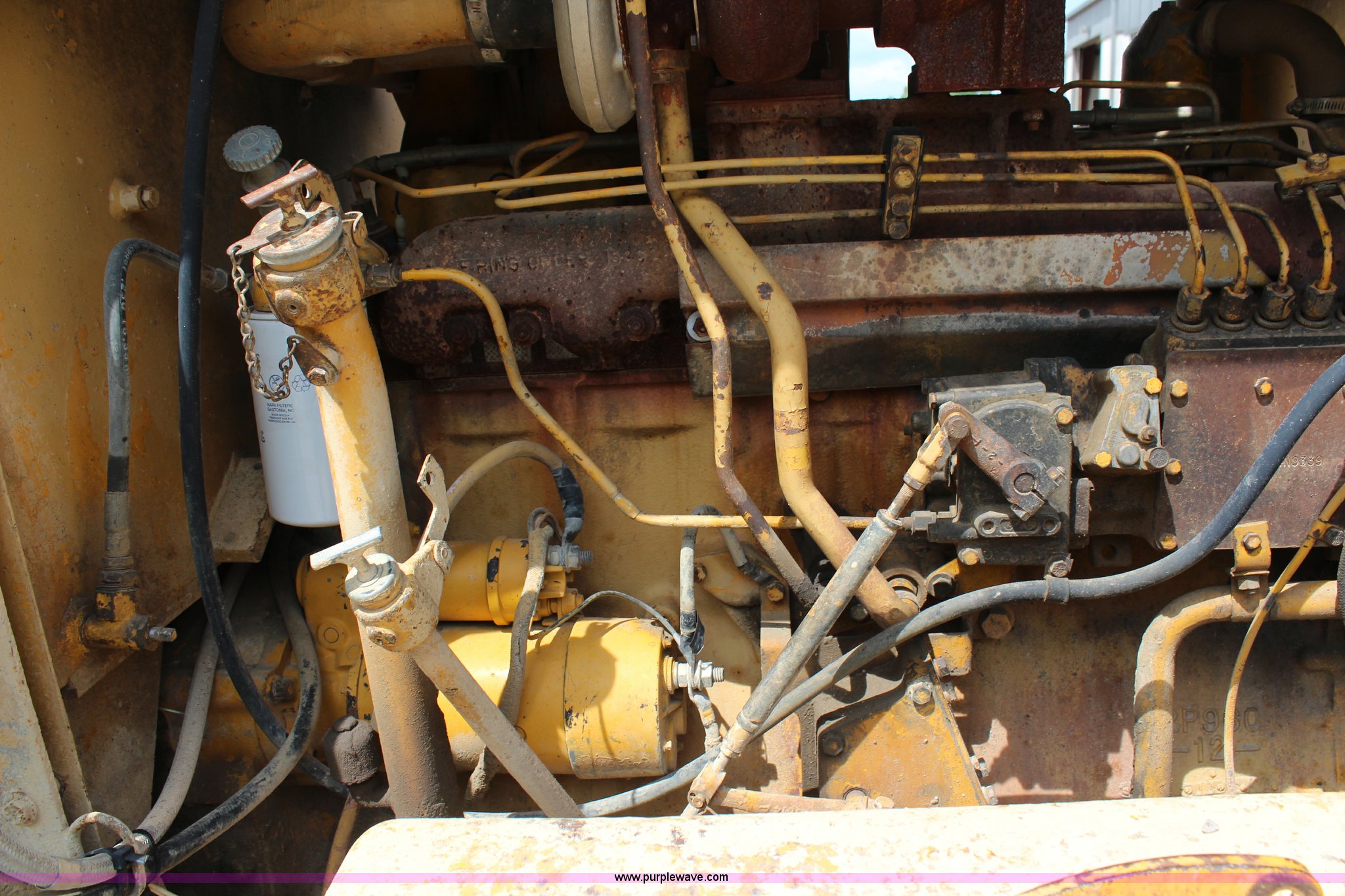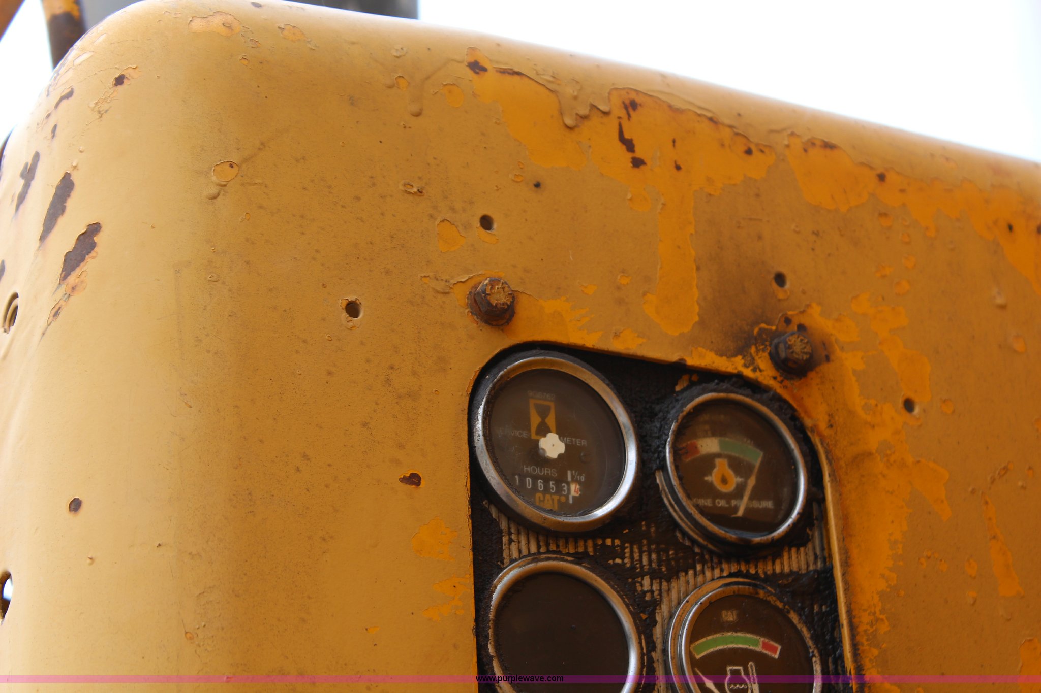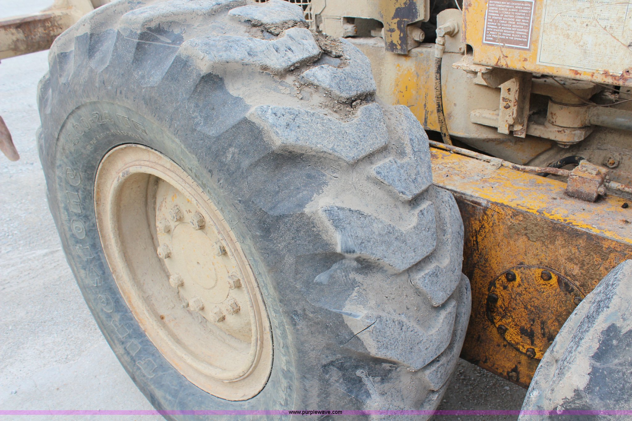 Purple Wave is selling a used Motor Grader in Kansas. This item is a 1976 Caterpillar 140G articulated motor grader with the following: 10,653 hours on meter, Caterpillar 3306 six cylinder turbo diesel engine, 150 HP, Serial 3N43478, Powershift transmission, 6F-6R gears, Locking differential, Four wheel drive, EROPS, Heat, Front work lights, 12' moldboard, Side shift, Rear ripper, Three ripper shanks, 14.00-24 tires, 29,175 lbs. base operating weight, Serial 72V1221