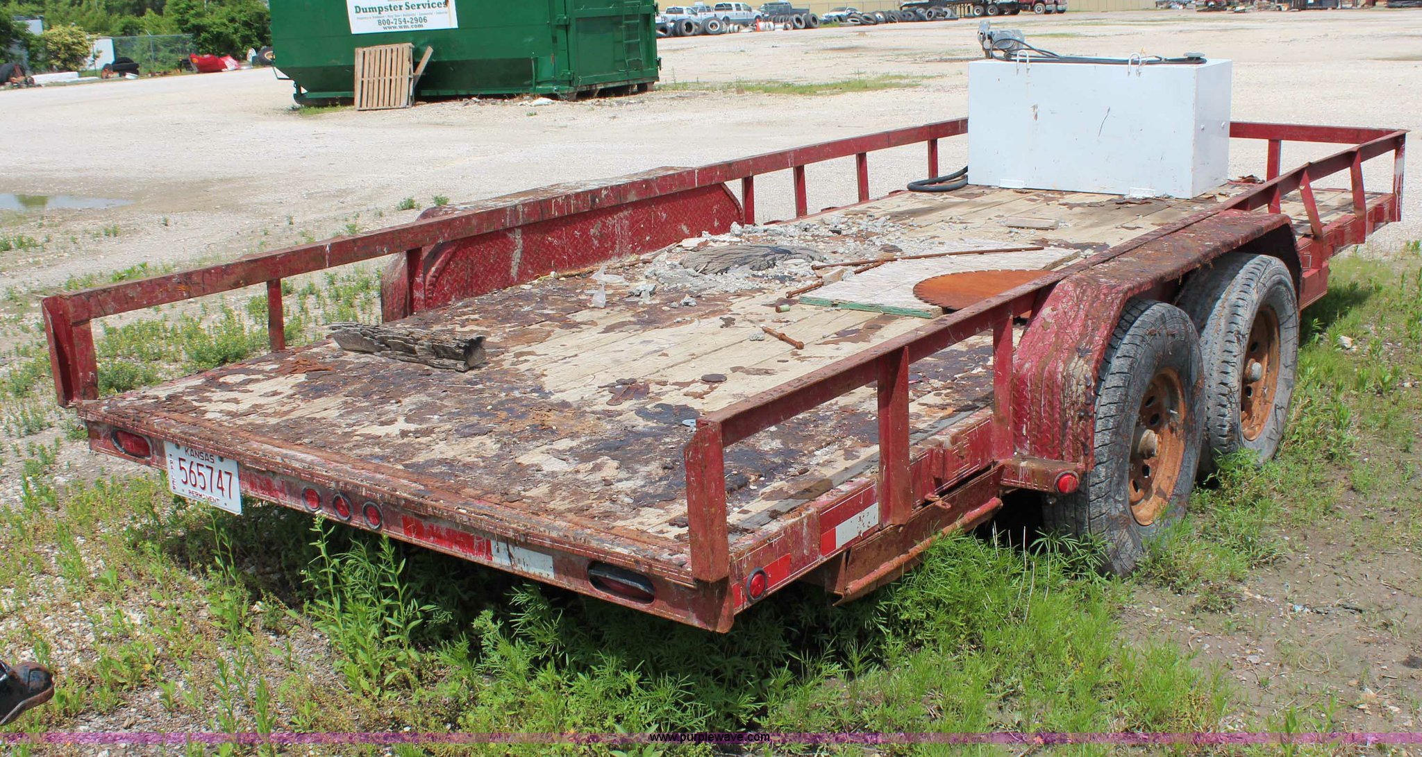 Purple Wave is selling a used Car or Utility Trailer in Kansas. This item is a 2003 Target tandem axle trailer with the following: 18'L x 82 3/4" deck, Ramps, 2 5/16" ball hitch, 235/85R16 tires, Fuel tank not included, Unit# 1575
