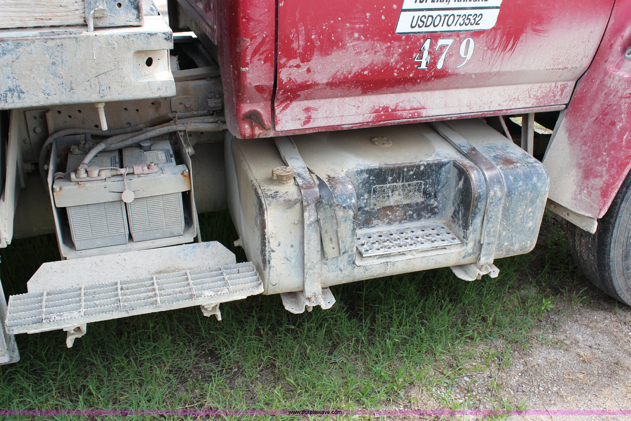 1998 Ford F800 flatbed truck. 97,392 miles on odometer, Cummins 5.9L L6 diesel engine 190 HP, Automatic transmission, Dual 50 gallon fuel tanks, 12.5'L flatbed, 10R22.5 tires, Seat torn, Driver's door handle broken, Interior/exterior cosmetic damage, Tires on bed are not included, Unit# 479. Title distribution may be delayed up to 14 days from verification of funds. 1FDNF80C5WVA32947. Koss Construction Company. Topeka, KS 66604