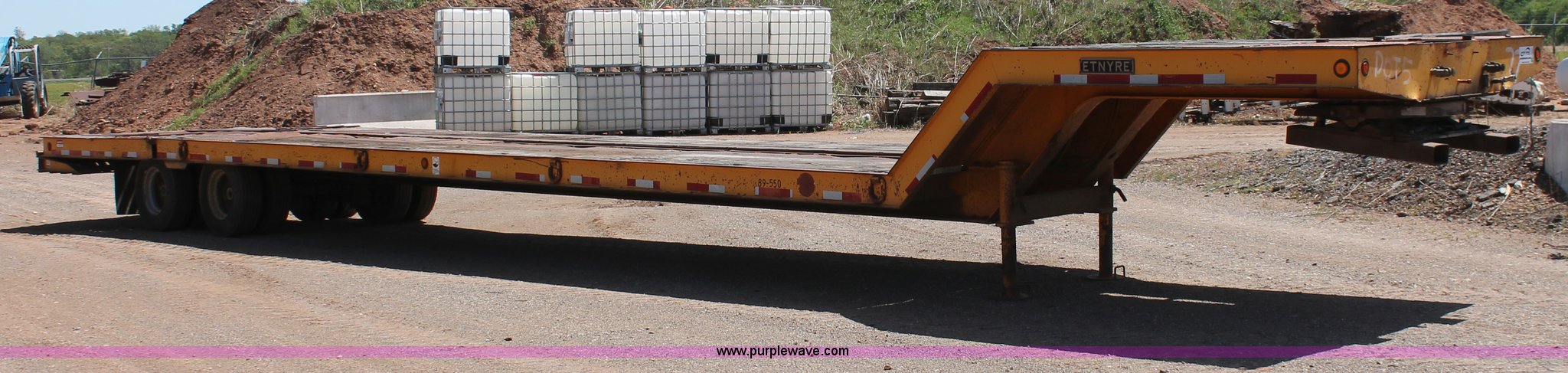 Purple Wave is selling a used Equip. Trailer in Oklahoma. This item is a 1994 Etnyre SR30TL Hydratail step deck trailer with the following: 48' overall length, 37.5'L main deck, 7.5'L upper deck, 36" hydratail, 35" main deck height, 60" upper deck height, 24" step height, Steel and wood deck, Steel deck frame, Stake side pockets, D-ring tie downs, Two stick hydraulic controls, Continental 235/75R17.5 tires, GVWR 76,380 lbs, 16,380 lbs unloaded weight, Serial Q25350