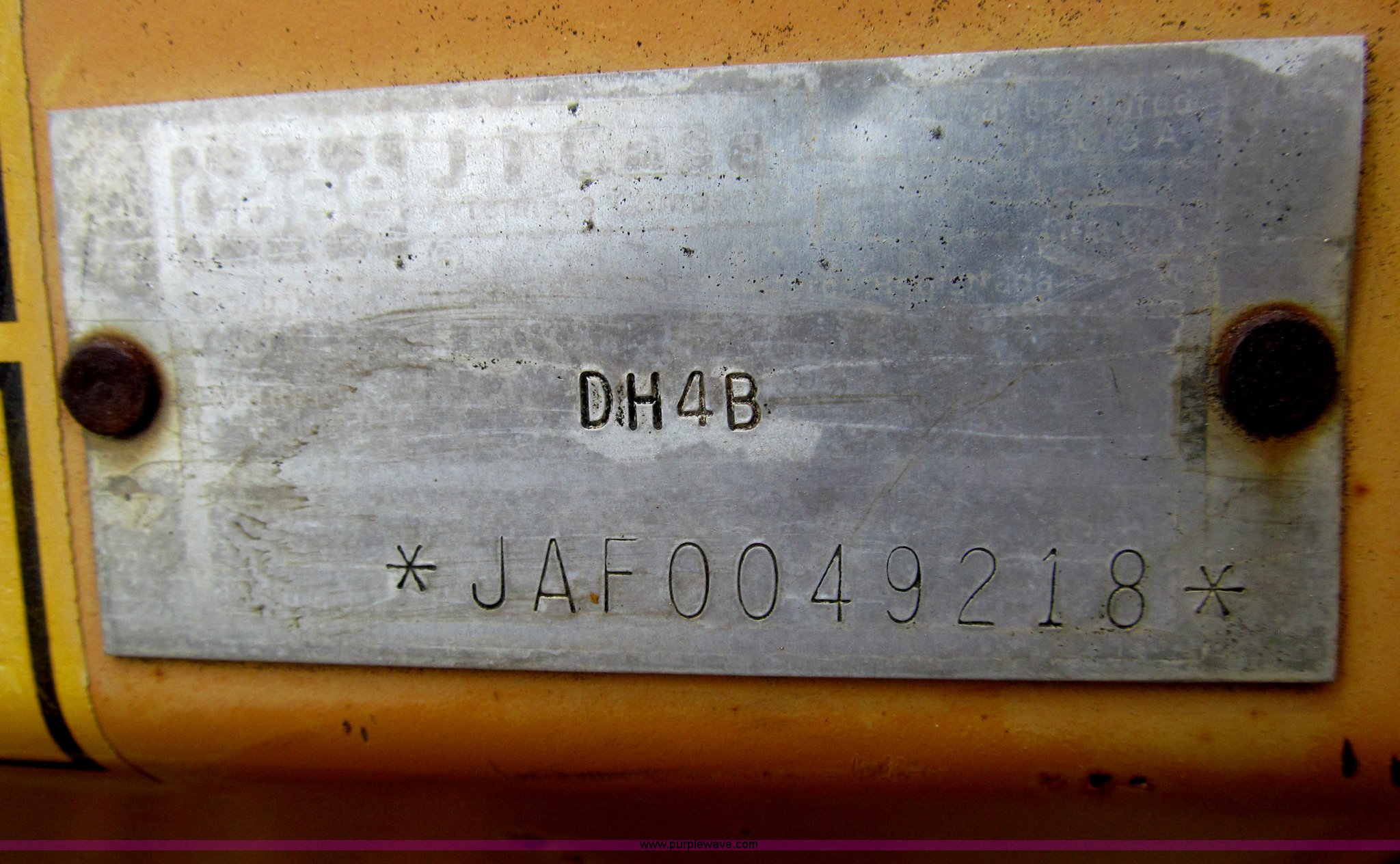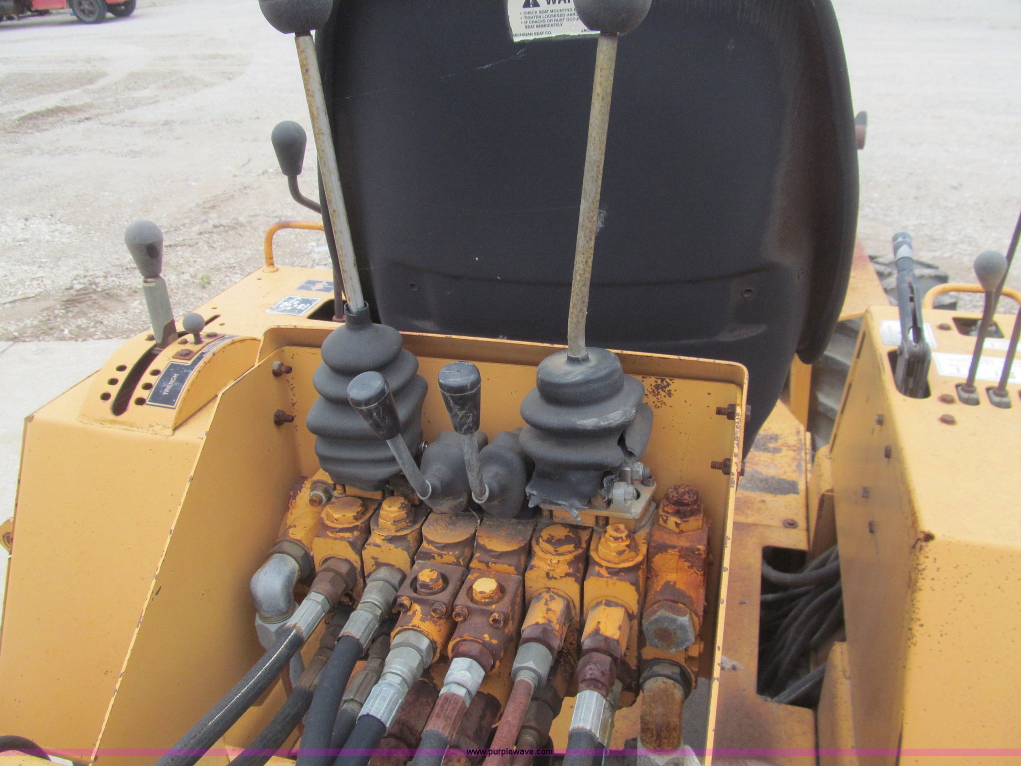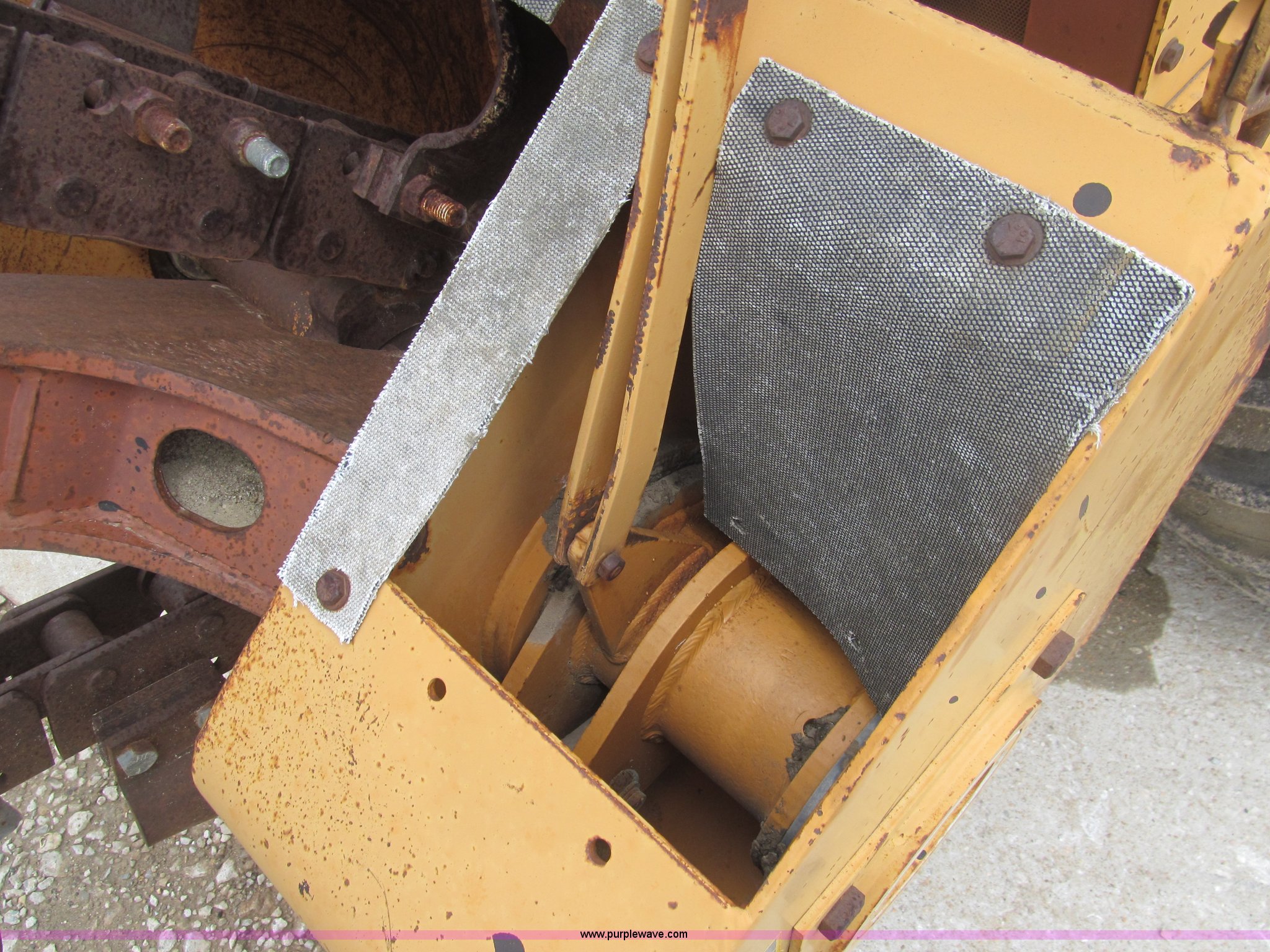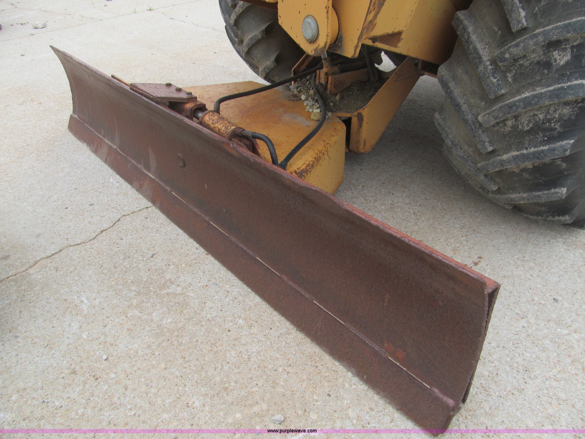 Purple Wave is selling a used Trencher or Rock Saw in Kansas. This item is a 1990 Case DH4B trencher with the following: 3,091 hours on meter, Four cylinder diesel engine, 47 HP, Hydrostatic transmission, D100XR backhoe, 6' maximum digging depth, 23"W bucket, 6'W back fill blade, Six way tilt, Outriggers, 72" trencher boom, Model H439001, Chain gearbox issue, 31-15.50-15 tires, 6,257 lbs. base operating weight, Input shaft on planetary gear box needs replaced on trencher and drive motor shaft on trencher, Serial JAF0049218