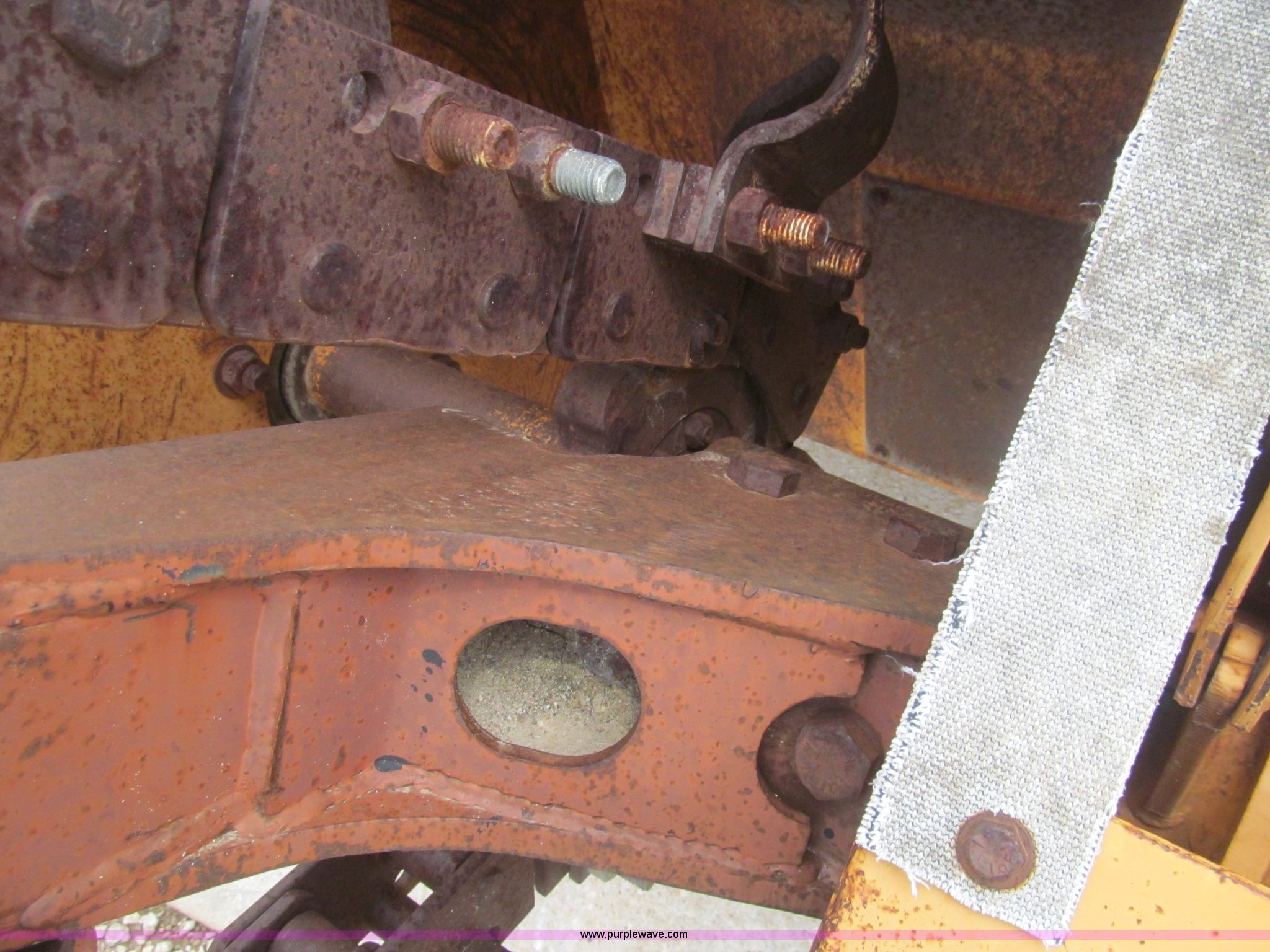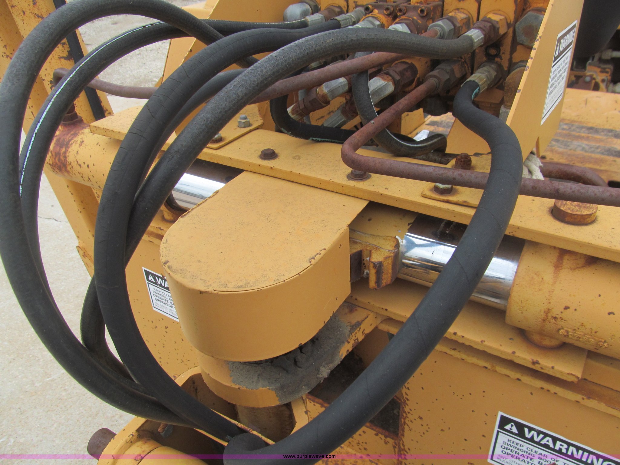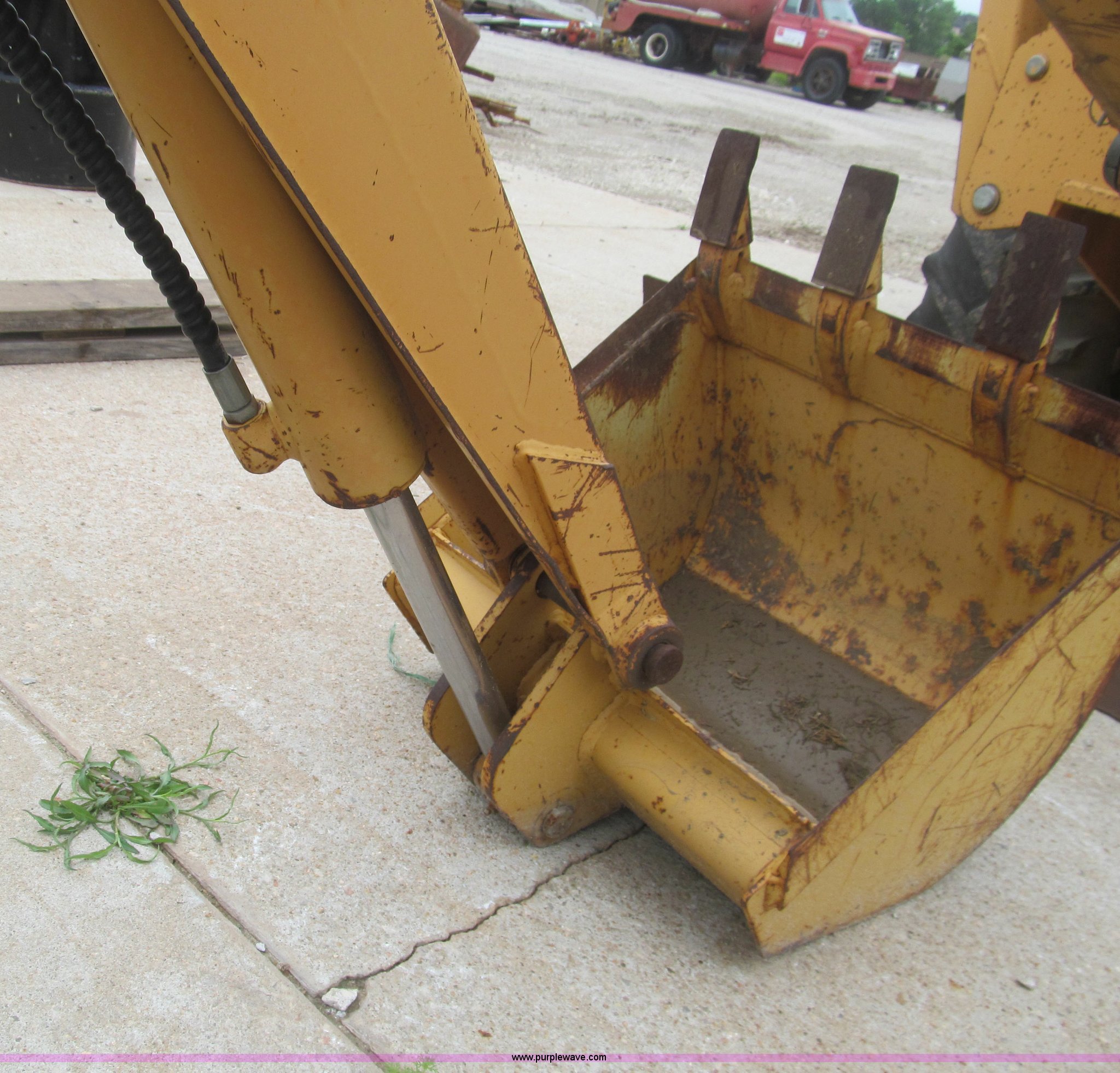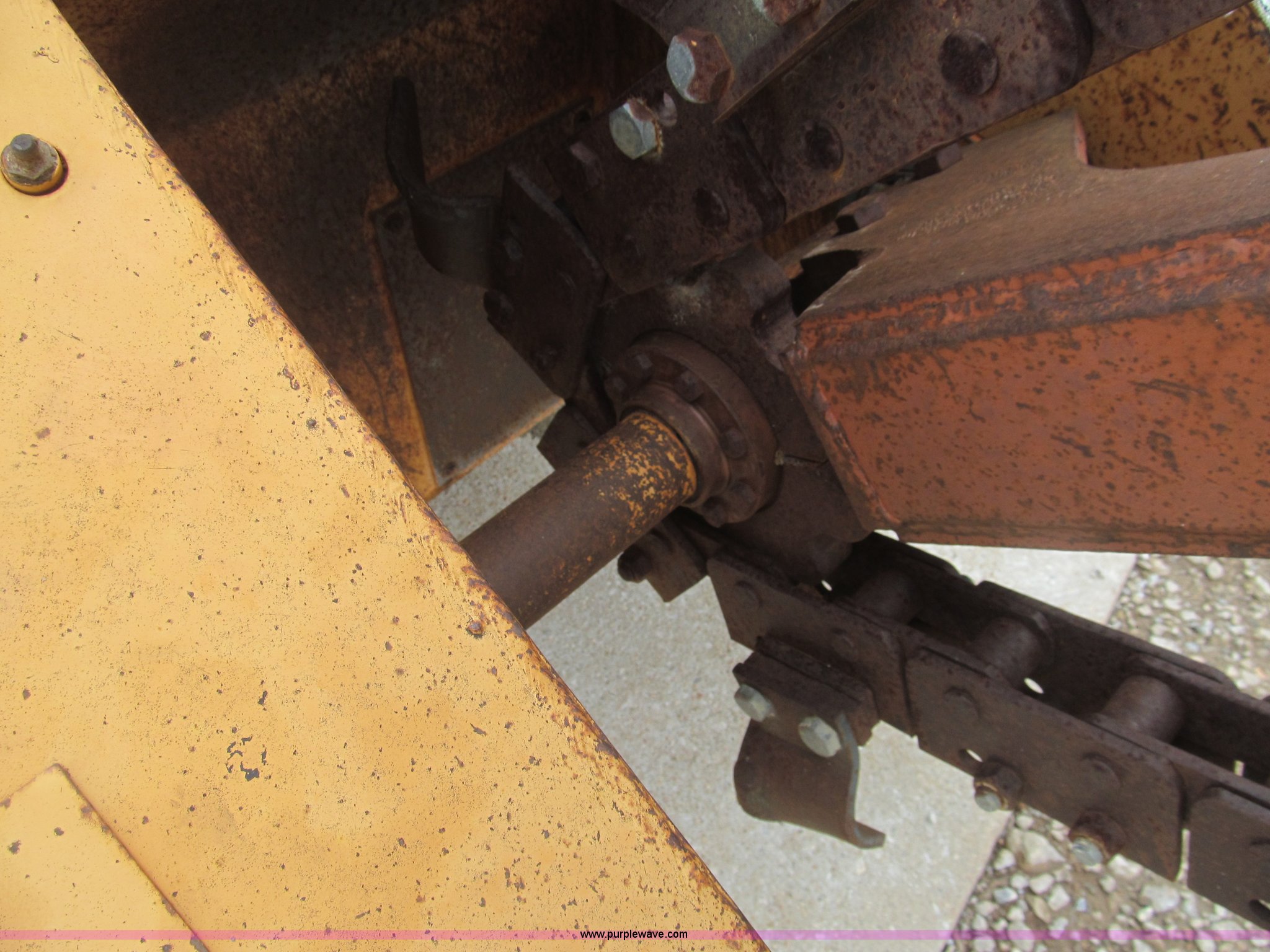 Purple Wave is selling a used Trencher or Rock Saw in Kansas. This item is a 1990 Case DH4B trencher with the following: 3,091 hours on meter, Four cylinder diesel engine, 47 HP, Hydrostatic transmission, D100XR backhoe, 6' maximum digging depth, 23"W bucket, 6'W back fill blade, Six way tilt, Outriggers, 72" trencher boom, Model H439001, Chain gearbox issue, 31-15.50-15 tires, 6,257 lbs. base operating weight, Input shaft on planetary gear box needs replaced on trencher and drive motor shaft on trencher, Serial JAF0049218