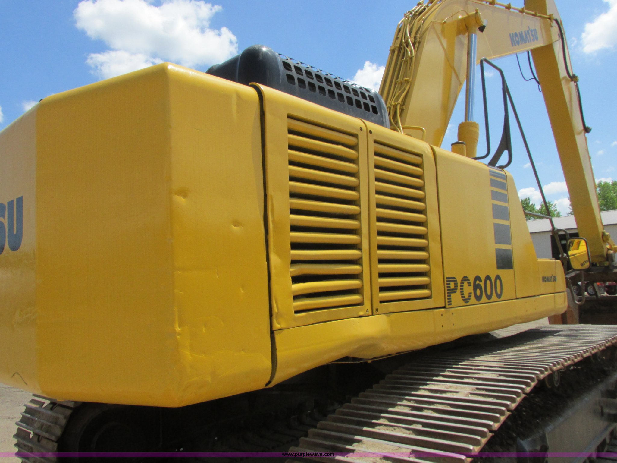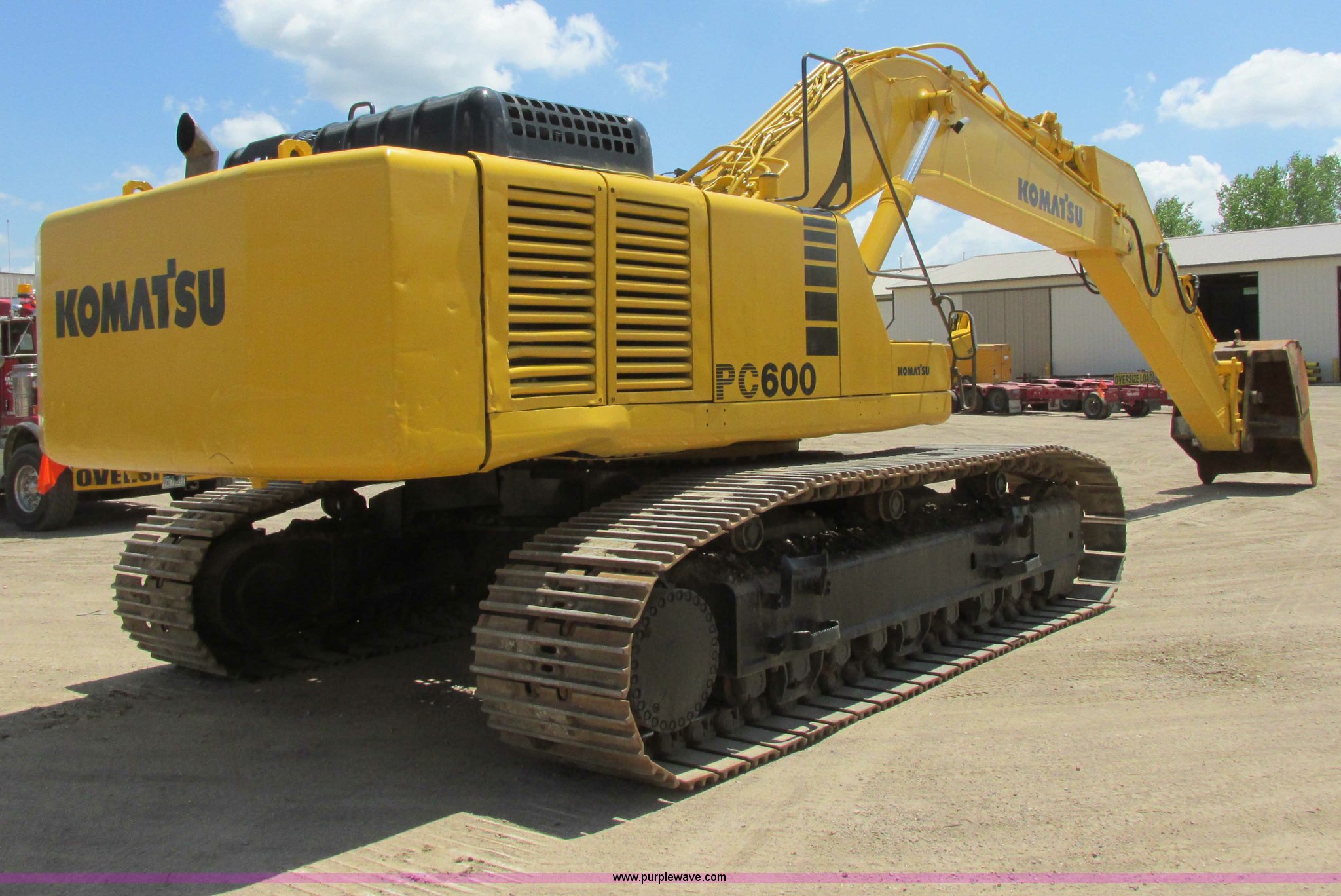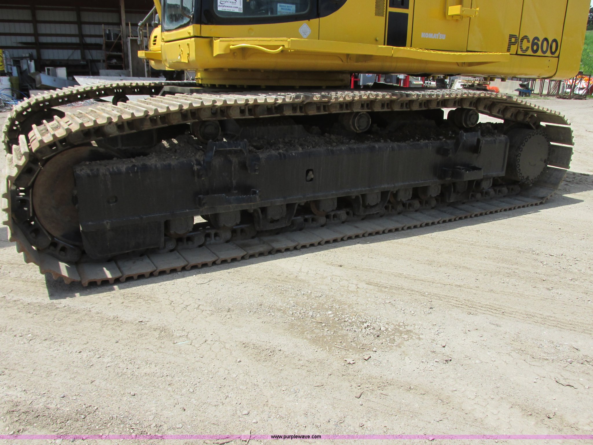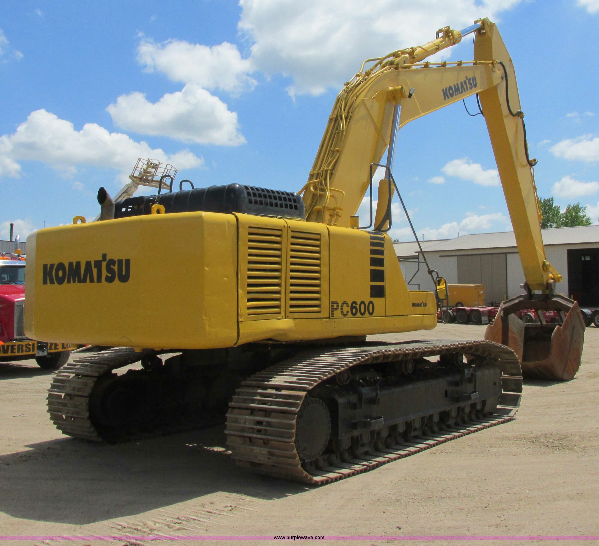Purple Wave is selling a used Hydraulic Excavator in Minnesota. This item is a 2002 Komatsu PC600LC-6 excavator with the following: 16,391 hours on meter, Komatsu SA6D140E-3 six cylinder turbo diesel engine, 385 HP, Hydrostatic transmission, EROPS, AC and heat, AM/FM, Windshield wipers, Approx. 25'L boom, Approx. 14'8"L stick, Standard boom, 66"W sand bucket, Weld-on cutting edge, Six cubic yard capacity, Front work lights, Nine bottom rollers, 35.5"W steel triple grouser track pads, 127,383 lbs. base operating weight, Repainted unit, Engine rebuilt at 14,000 hours, Pump drive rebuilt at 13,000 hours, Tracks rebuilt at 13,500 hours, Serial 11074