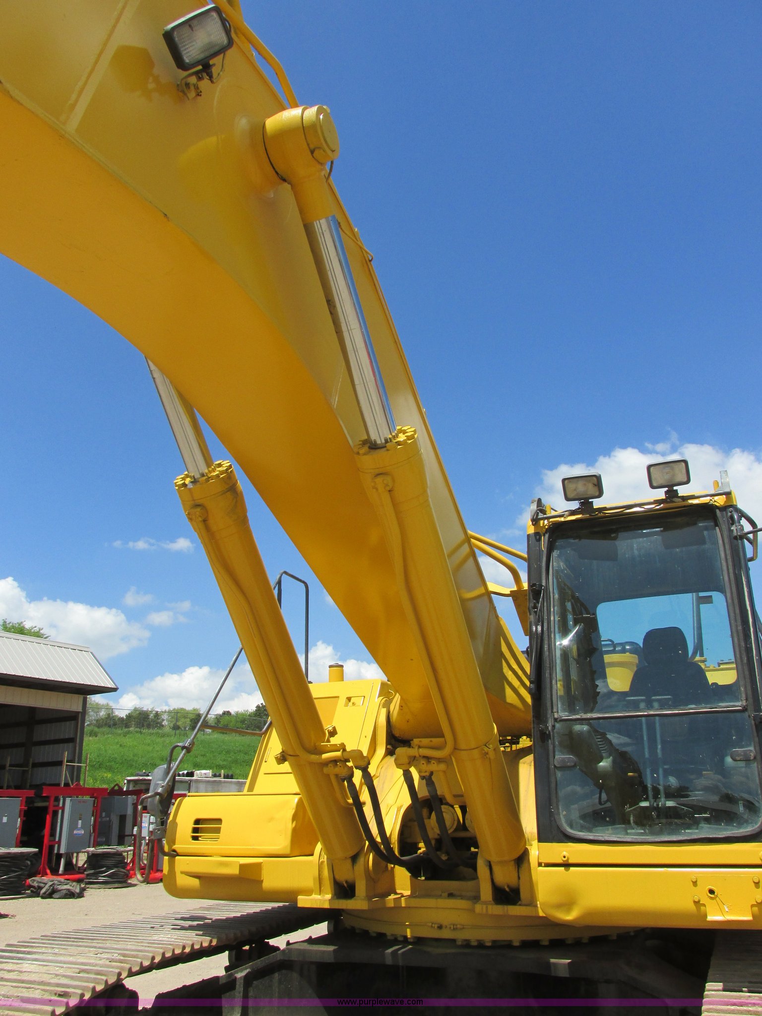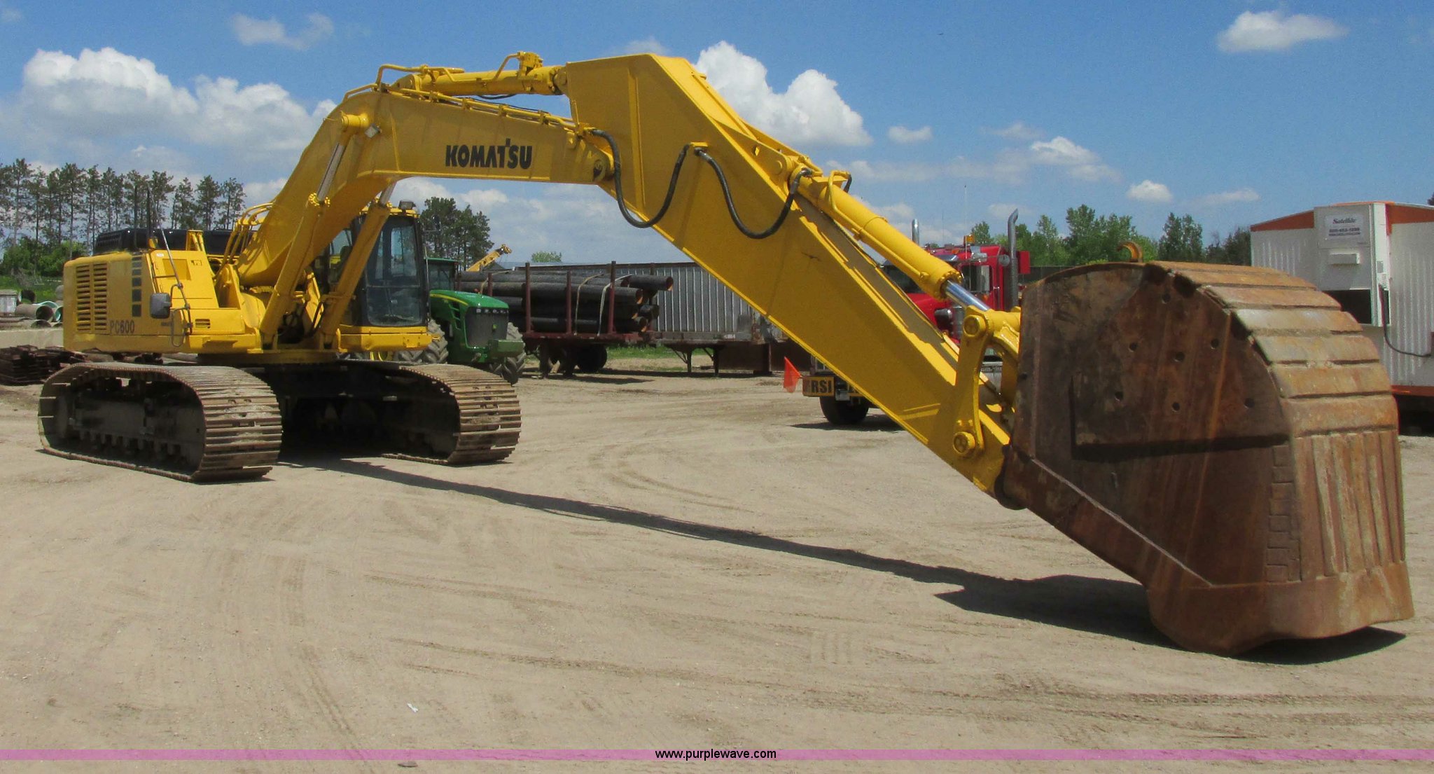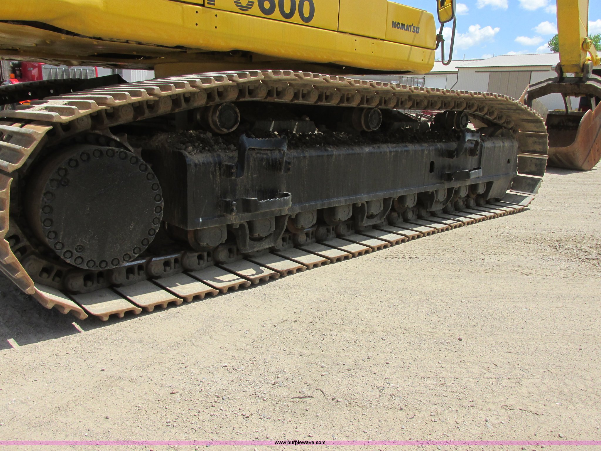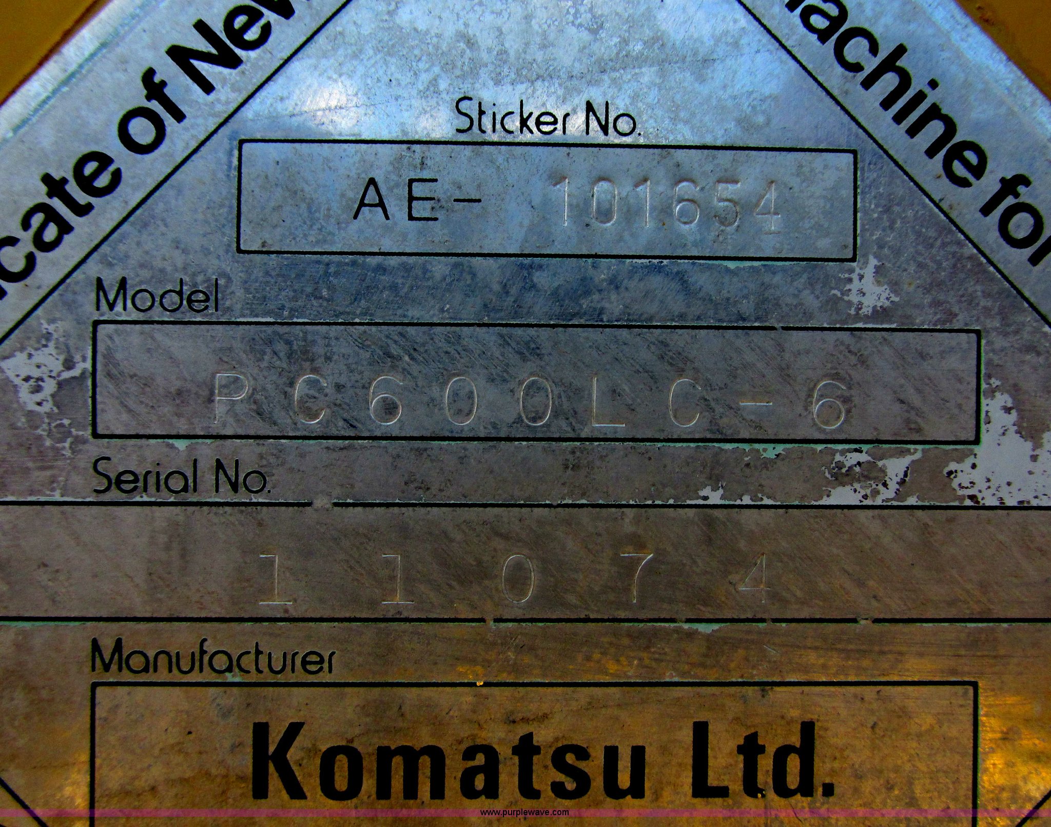 Purple Wave is selling a used Hydraulic Excavator in Minnesota. This item is a 2002 Komatsu PC600LC-6 excavator with the following: 16,391 hours on meter, Komatsu SA6D140E-3 six cylinder turbo diesel engine, 385 HP, Hydrostatic transmission, EROPS, AC and heat, AM/FM, Windshield wipers, Approx. 25'L boom, Approx. 14'8"L stick, Standard boom, 66"W sand bucket, Weld-on cutting edge, Six cubic yard capacity, Front work lights, Nine bottom rollers, 35.5"W steel triple grouser track pads, 127,383 lbs. base operating weight, Repainted unit, Engine rebuilt at 14,000 hours, Pump drive rebuilt at 13,000 hours, Tracks rebuilt at 13,500 hours, Serial 11074