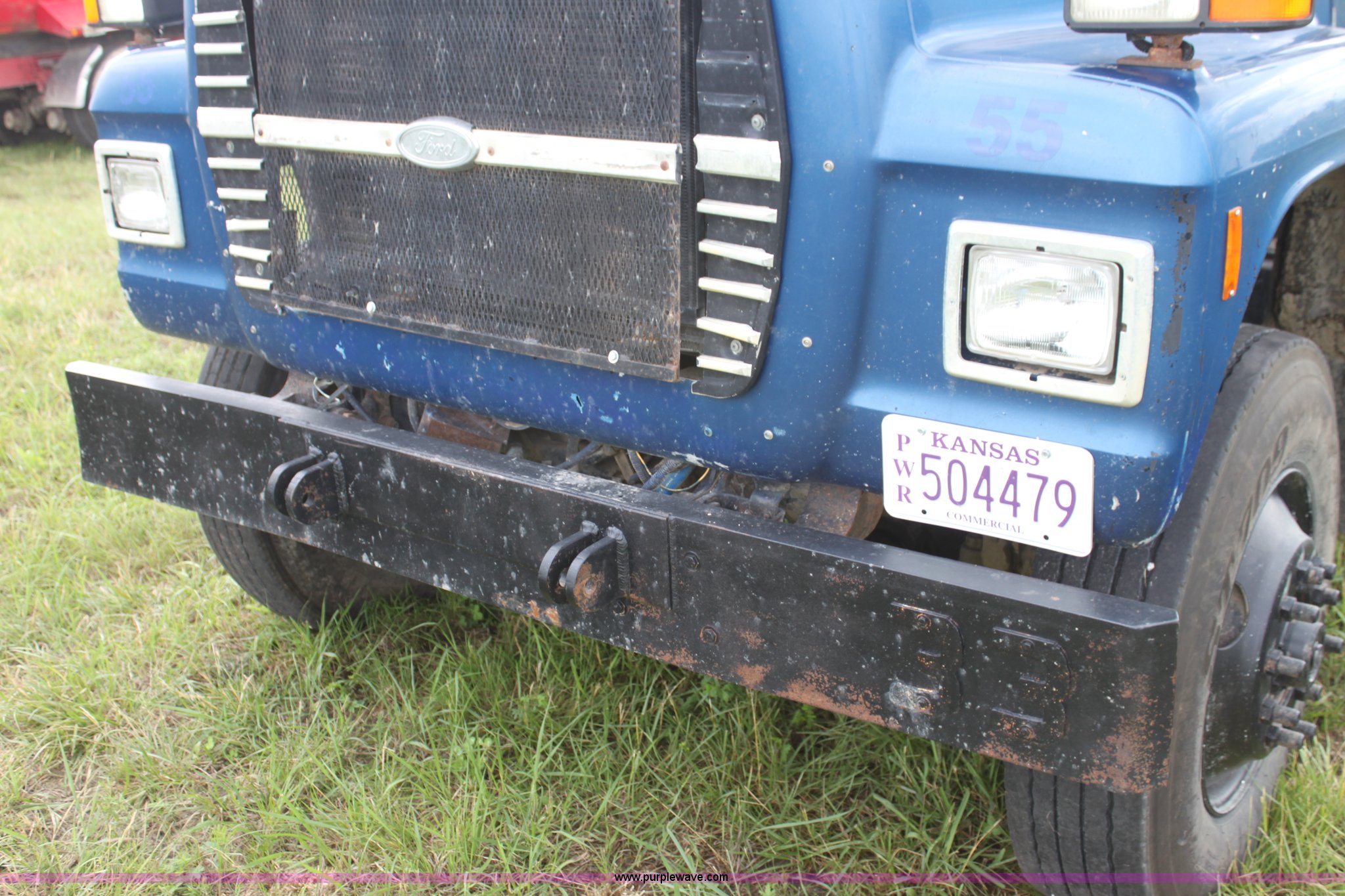 Purple Wave is selling a used Construction Dump Truck in Kansas. This item is a 1994 Ford LT8000 dump truck with the following: 484,220 miles on odometer, 902 hours on meter, Cummins ISC 8.3L L6 diesel engine, Five speed automatic transmission, Twin screw, AC and heat, AM/FM, Air suspension seat, PTO, Air operated end gate, Roll-over tarp, Dual 50 gallon fuel tanks, Spring suspension, Air brakes, 11R22.5 tires
