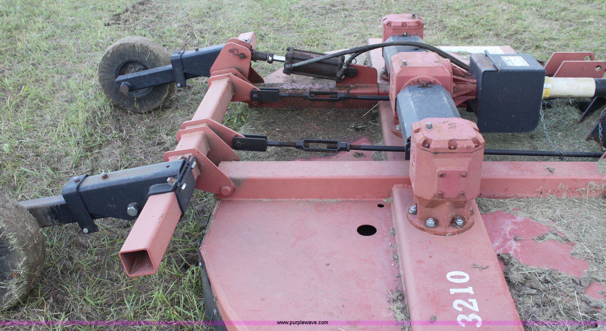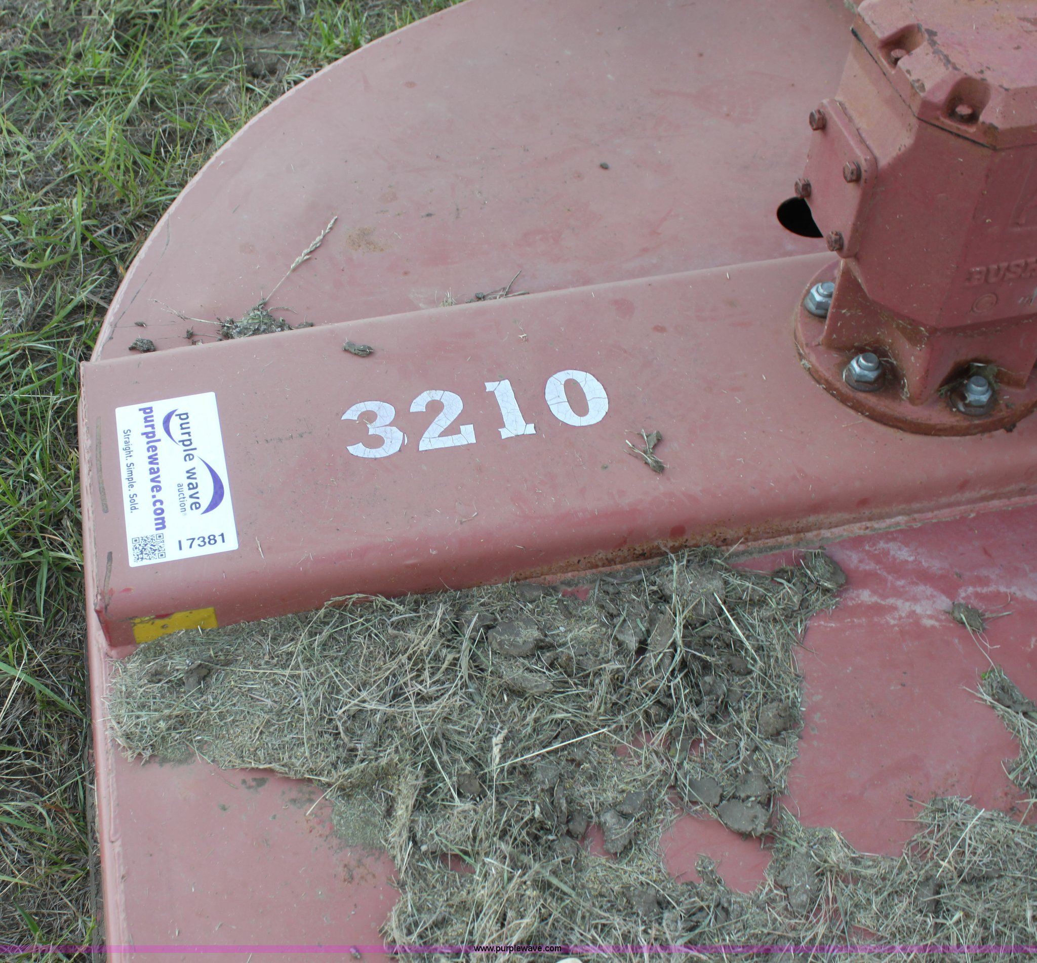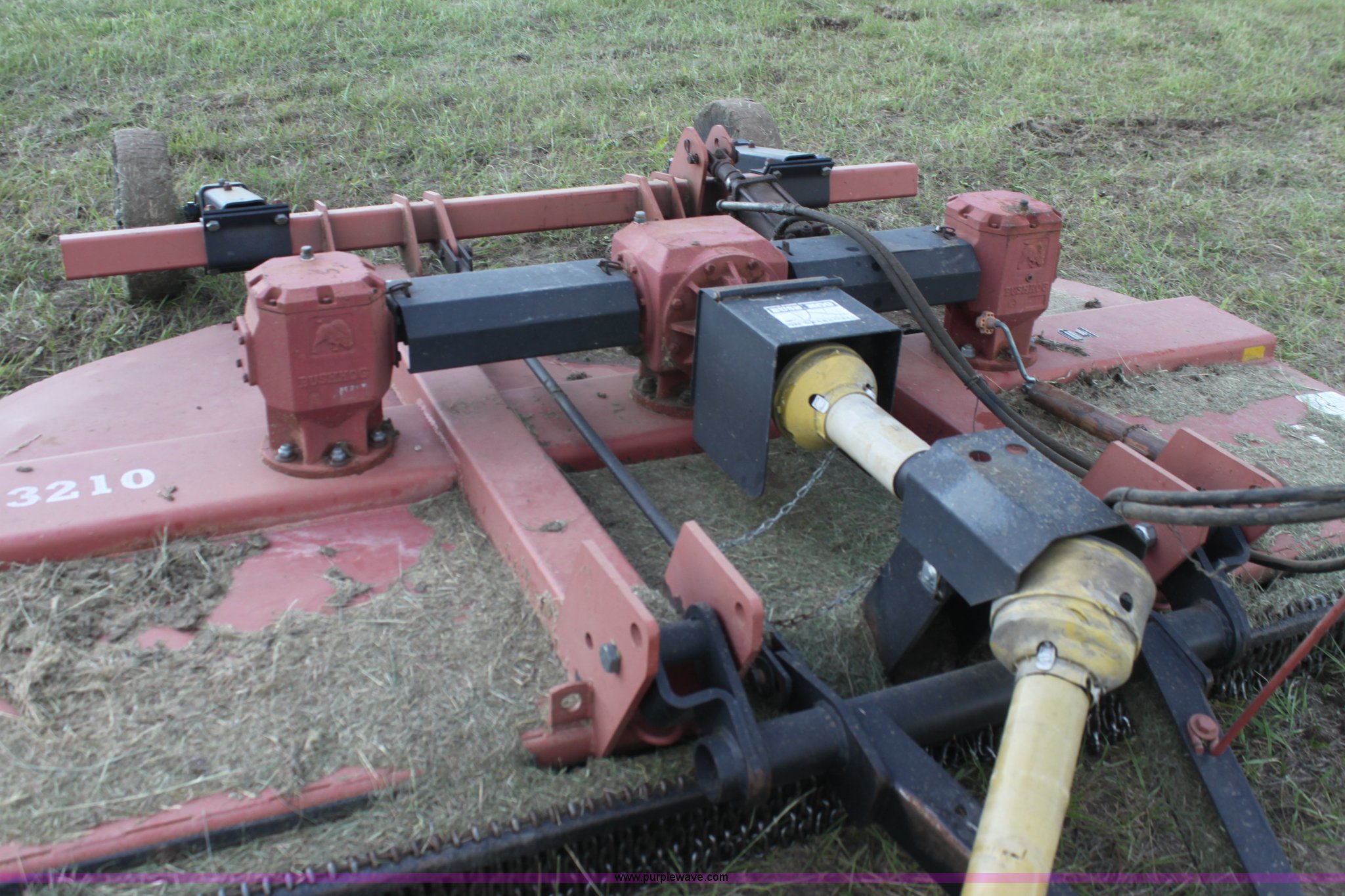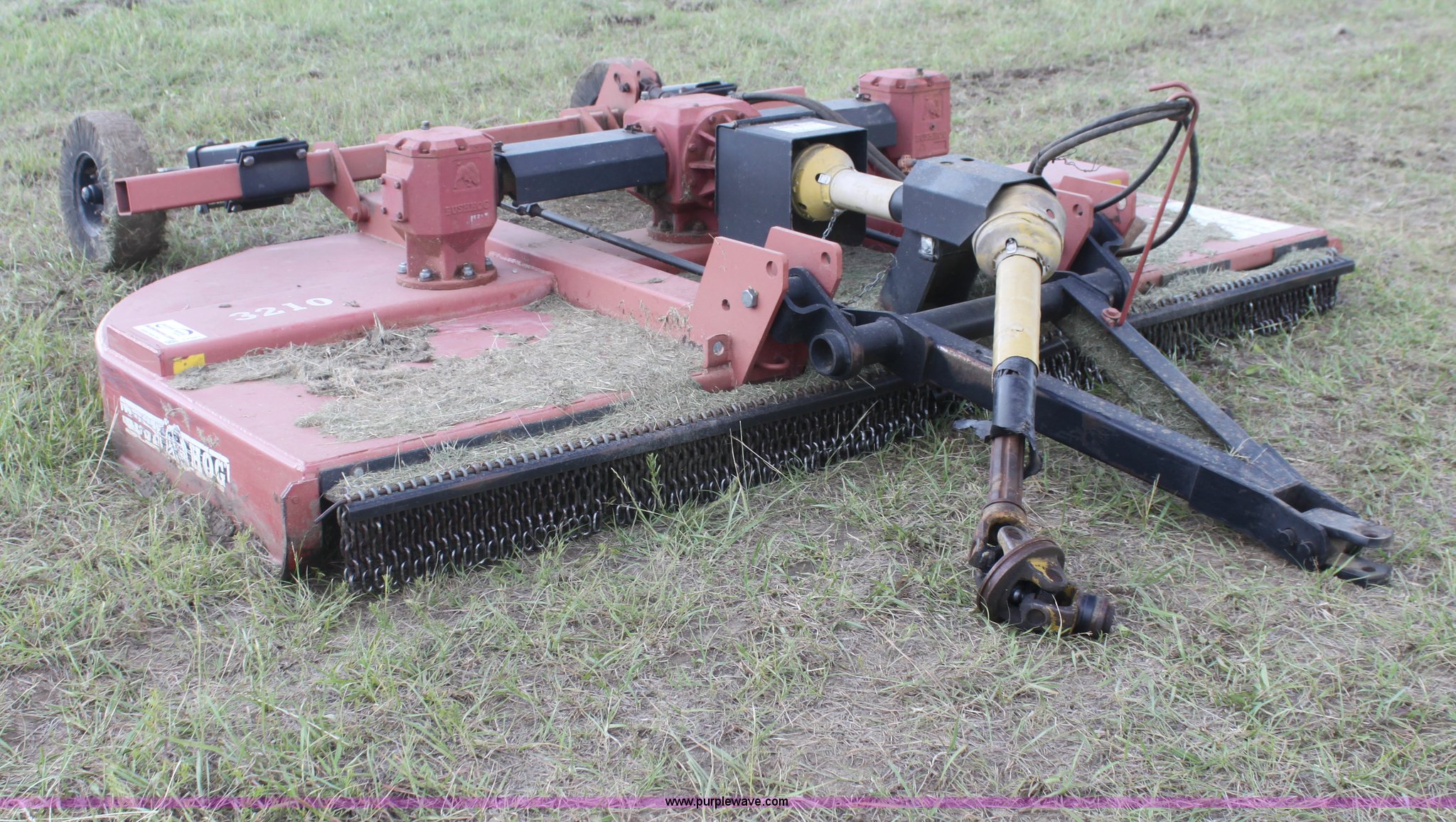 Purple Wave is selling a used Mower, Cutter, Shredder in Kansas. This item is a Bush Hog 3210 rotary mower with the following: 10.5' cutting width, 540 PTO, Hydraulic lift, Solid tail wheel, Hydraulic cylinder not included, Serial 1212242