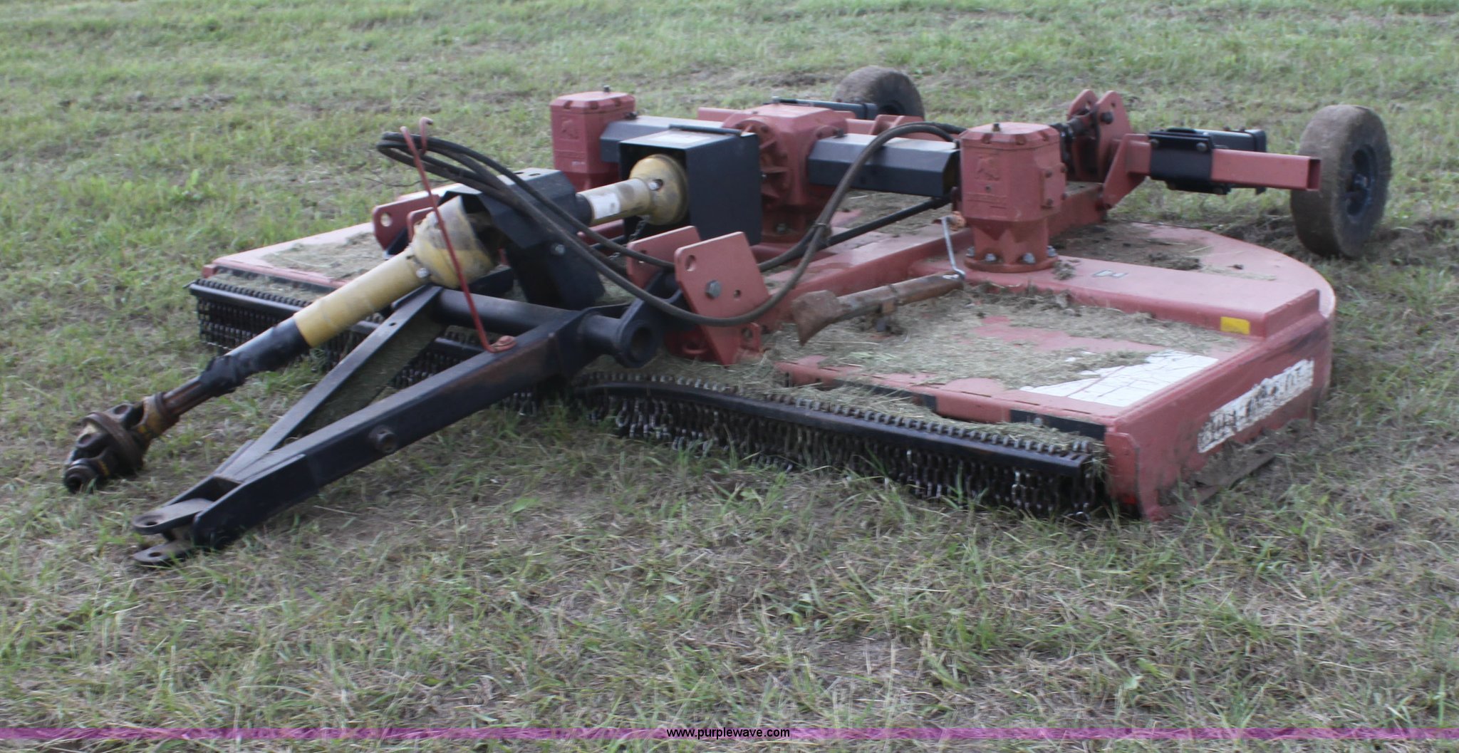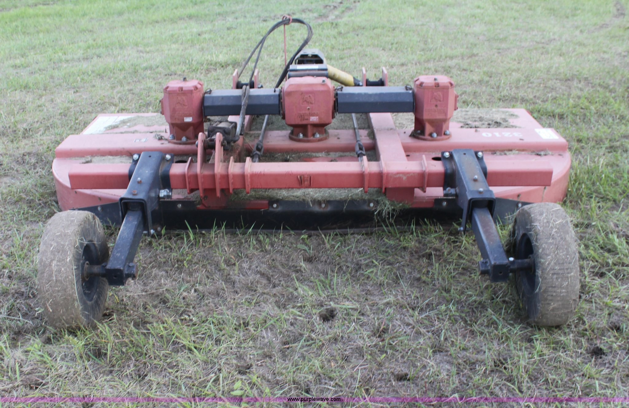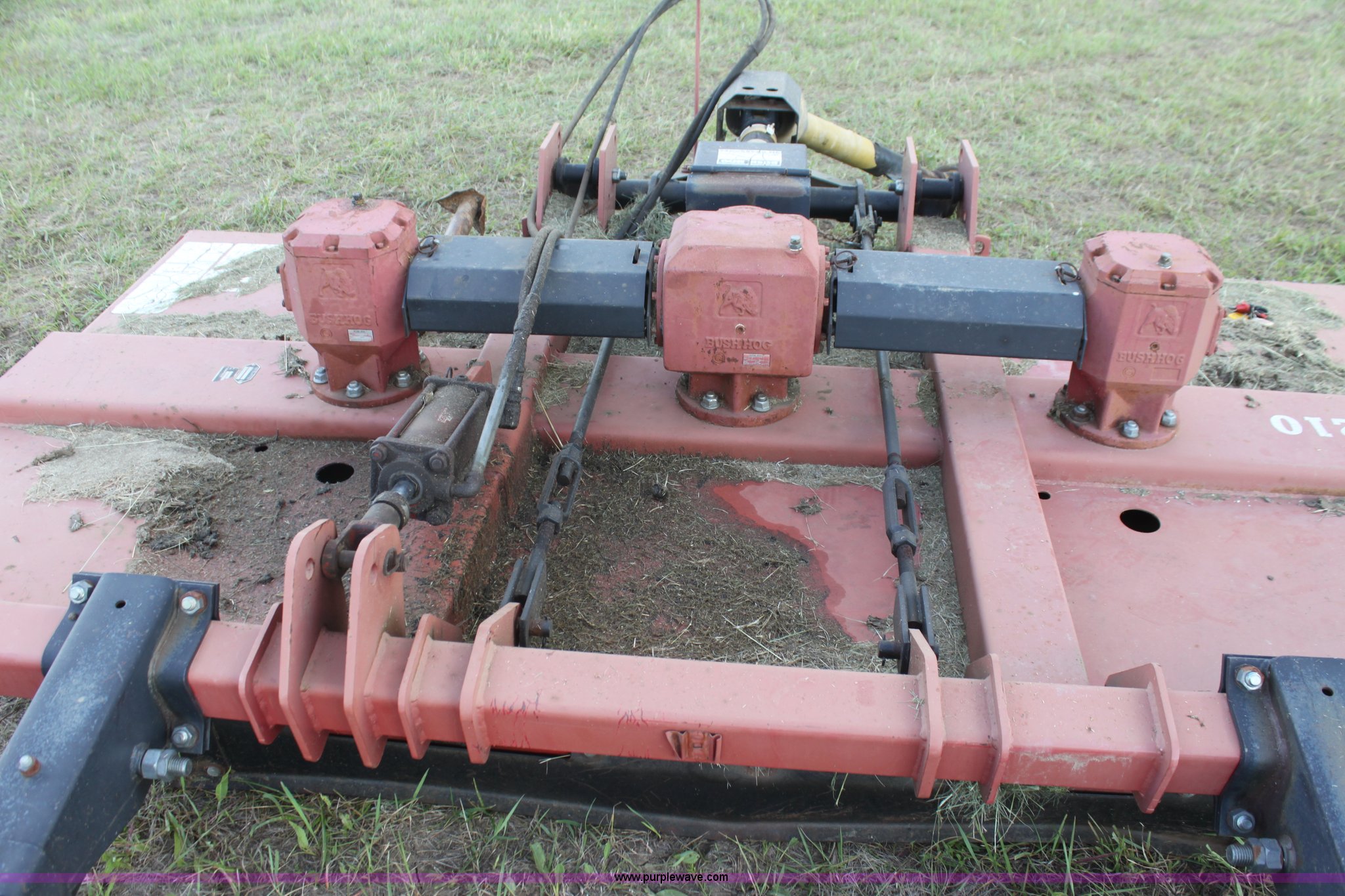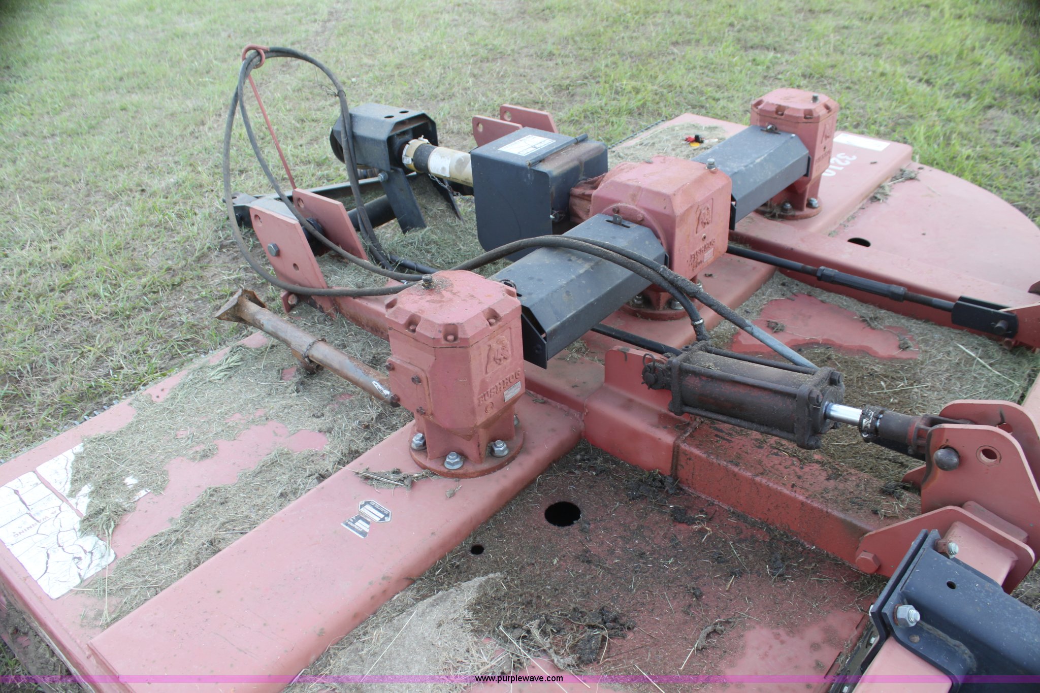 Purple Wave is selling a used Mower, Cutter, Shredder in Kansas. This item is a Bush Hog 3210 rotary mower with the following: 10.5' cutting width, 540 PTO, Hydraulic lift, Solid tail wheel, Hydraulic cylinder not included, Serial 1212242