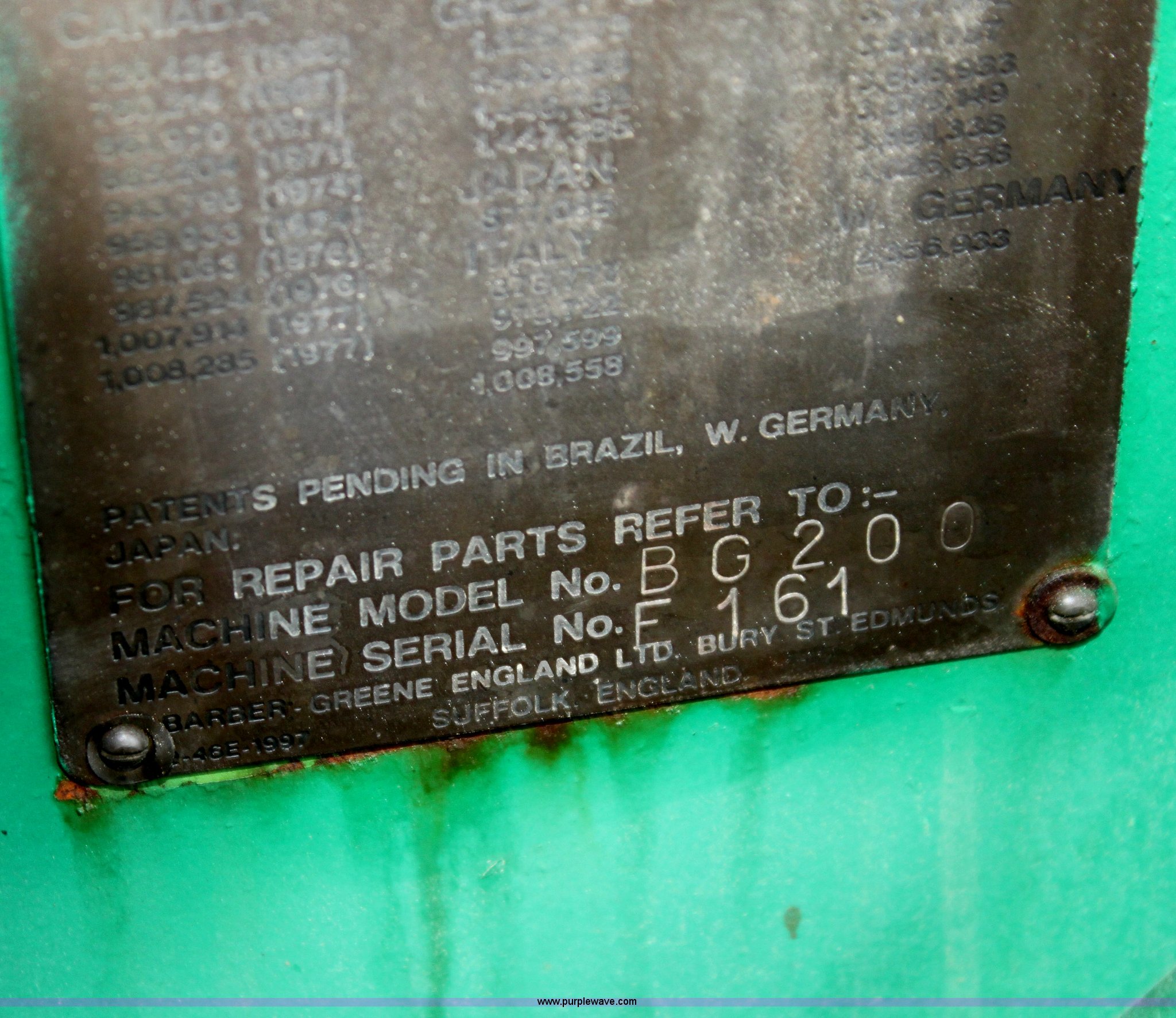 Purple Wave is selling a used Paver or Screed in Kansas. This item is a Barber Greene BG200 paver with the following: 3,419 hours on meter, Three cylinder diesel engine, Hydrostatic transmission, 11.5'W standard pave width, 12-24 tires, 14,884 lbs. base operating weight, Serial F161, Unit# 139