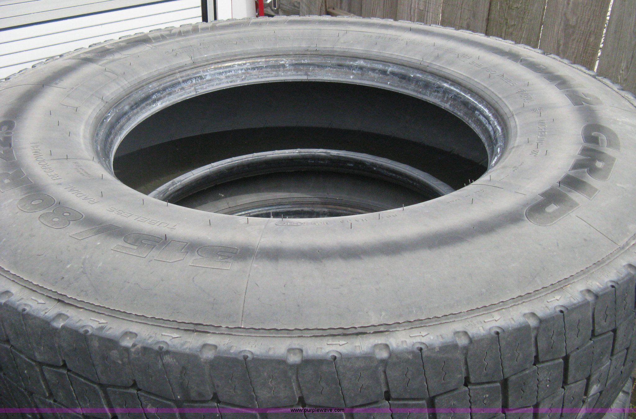Purple Wave is selling a used Fleet Tires in Kansas. This item is a (8) Michelin XDN2 grip heavy truck tires with the following: 315/80R22.5, M&S, Used