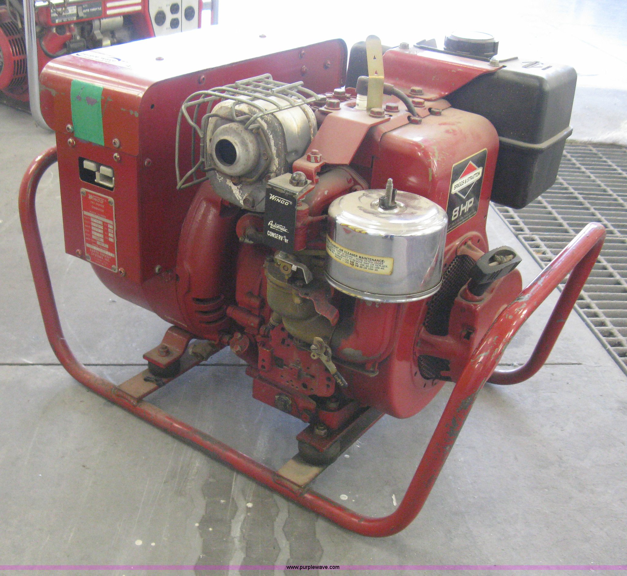 Winco FF4000 generator. Briggs & Stratton 8 HP gas engine, 4,000 watts, 120/240V, Single phase, Unknown operating condition, Serial 95999-S86. Sedgwick County Fire District. 1021 Stillwell St. Wichita, KS 67213