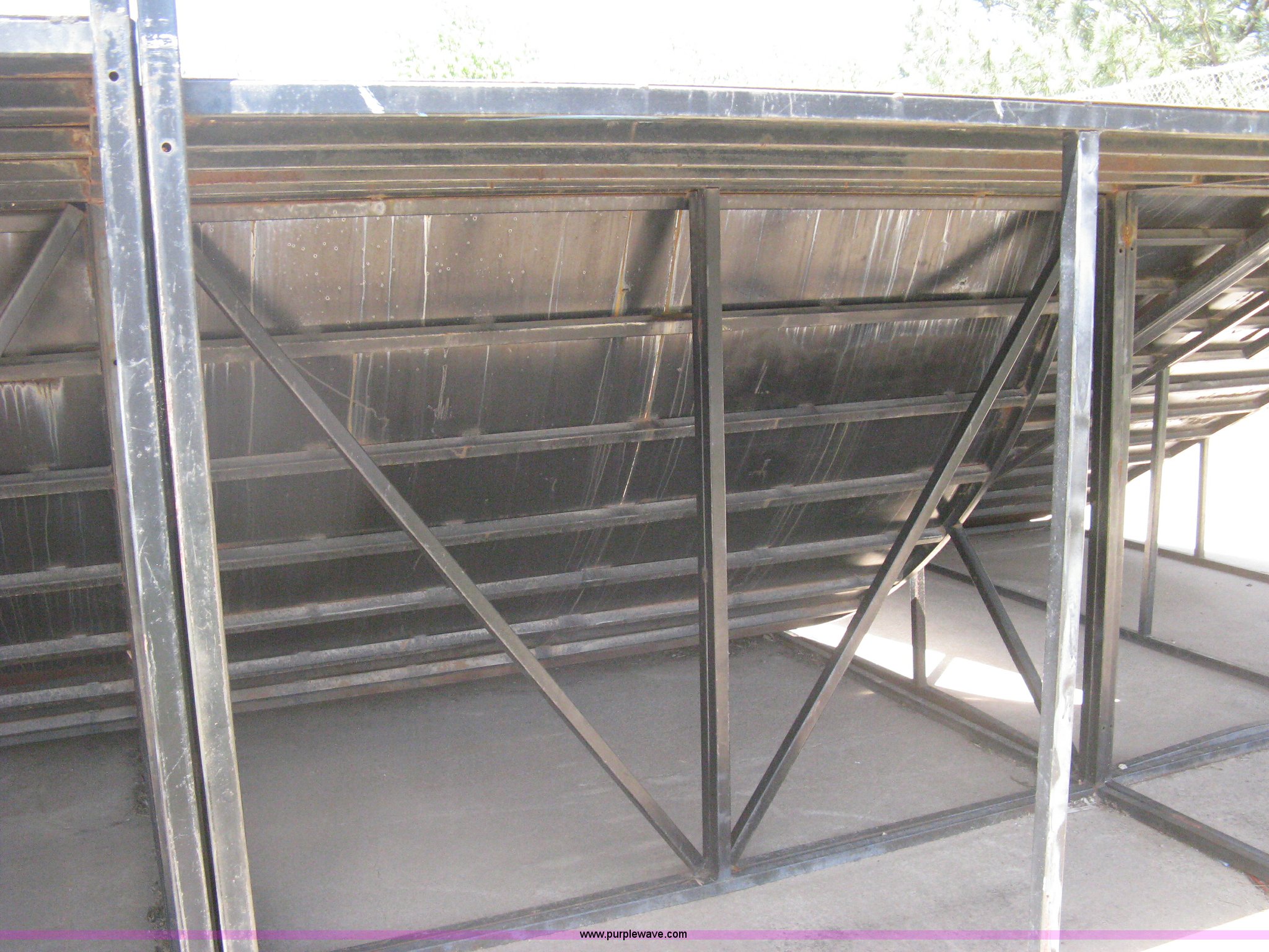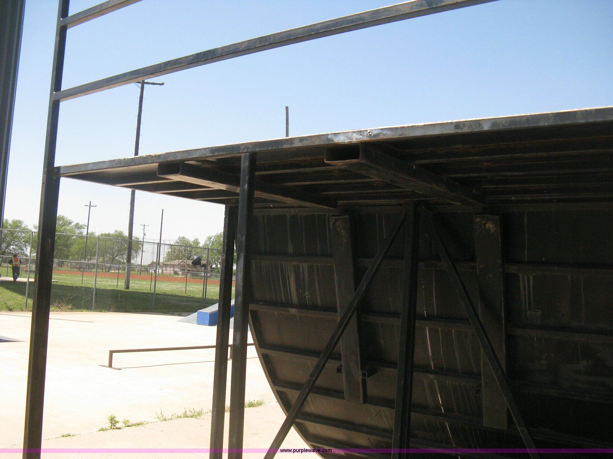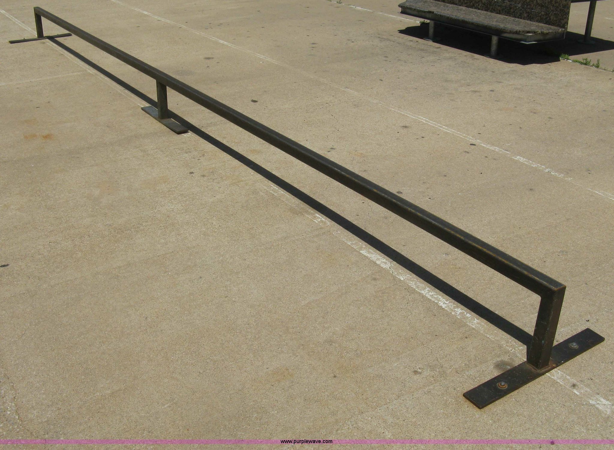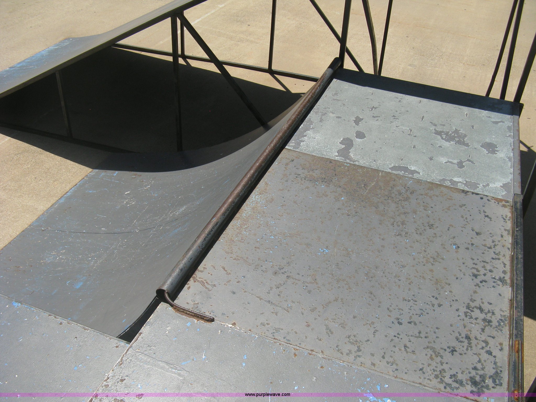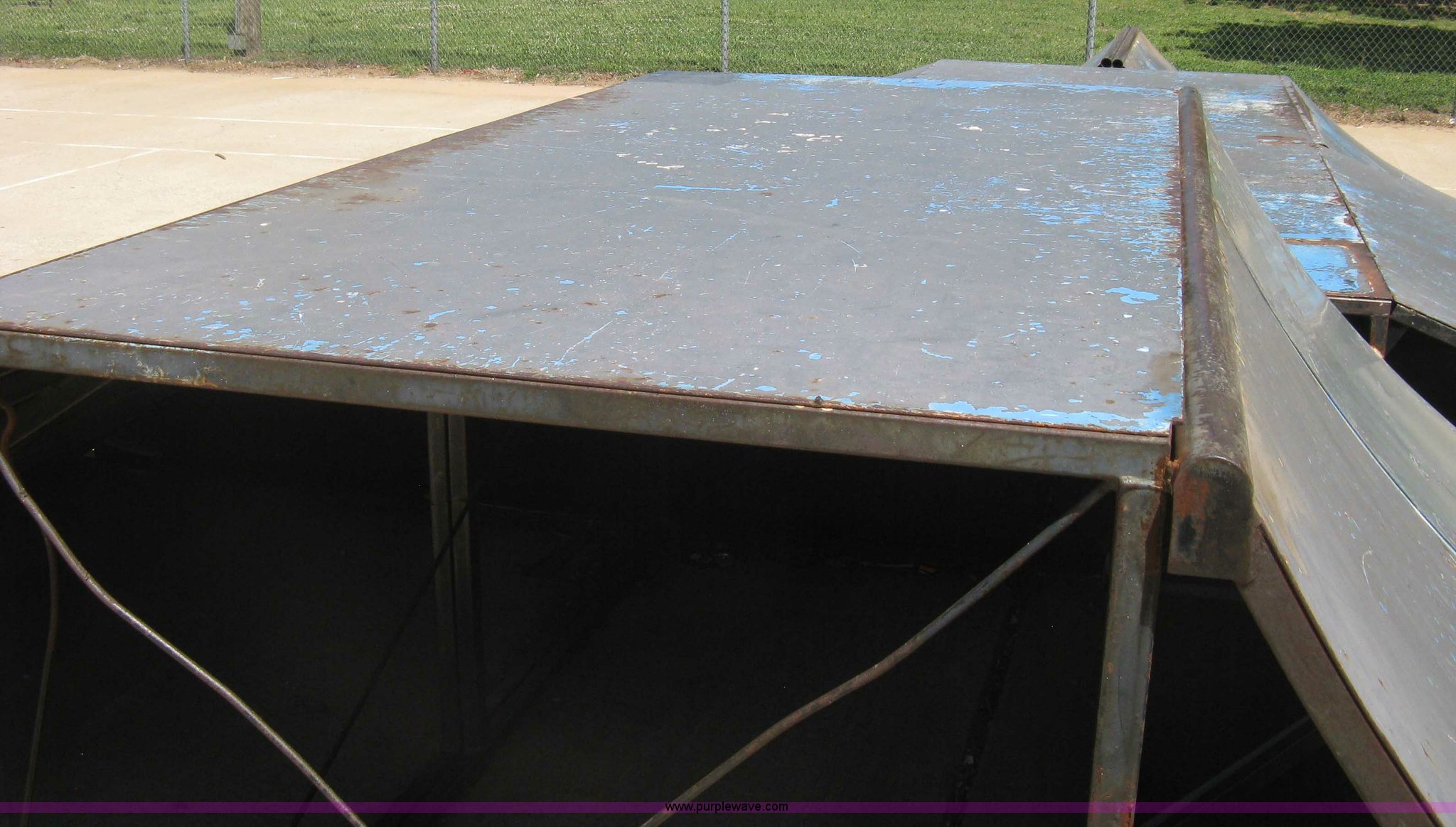 Purple Wave is selling a used Sporting Goods in Kansas. This item is a Shop built skate park ramp and skate features with the following: 8'W x 5'H quarter pipe ramp with 4' platform and safety rail, Ramp/launch feature, Approx. 21' x 21', Staircase, Steel rail, Grind box, 8'W x 42"H launch ramp with 4' platform and safety rail, 20.2'L flat rail, 20'L round bank style rail, ARC 6'L grind bench, Three section ramp and quarter pipe feature with safety rail, Independently constructed ramps, Welded/coupled together,, Three section ramp and quarter pipe spine feature, Independently constructed ramps, Weld/coupled together,, Four section ramp and quarter pipe feature with safety rail, Welded/coupled together, 8'W, Varying heights from 32" to 7', Square tubing steel construction, Steel plate ramp surface