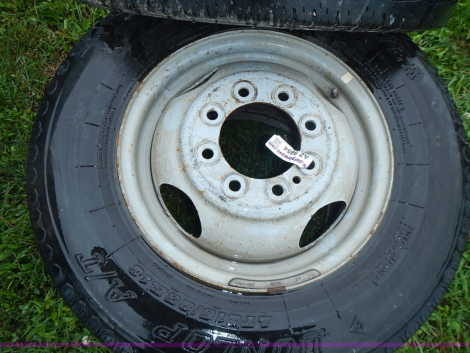 (4) 215/85R16 tires. Eight bolt wheel, Used. City of Abilene/Public Works. 419 N Broadway. Abilene, KS 67410
