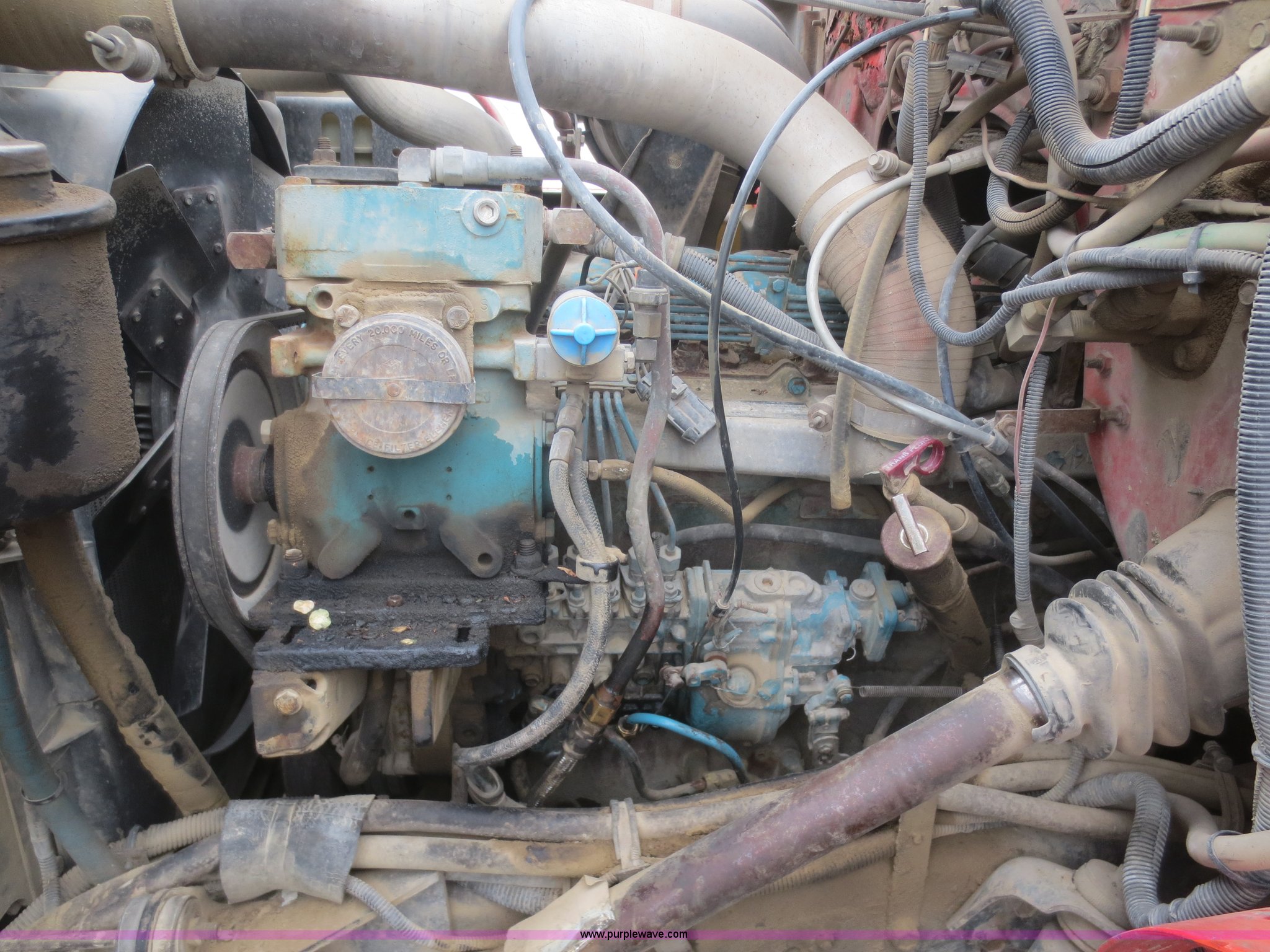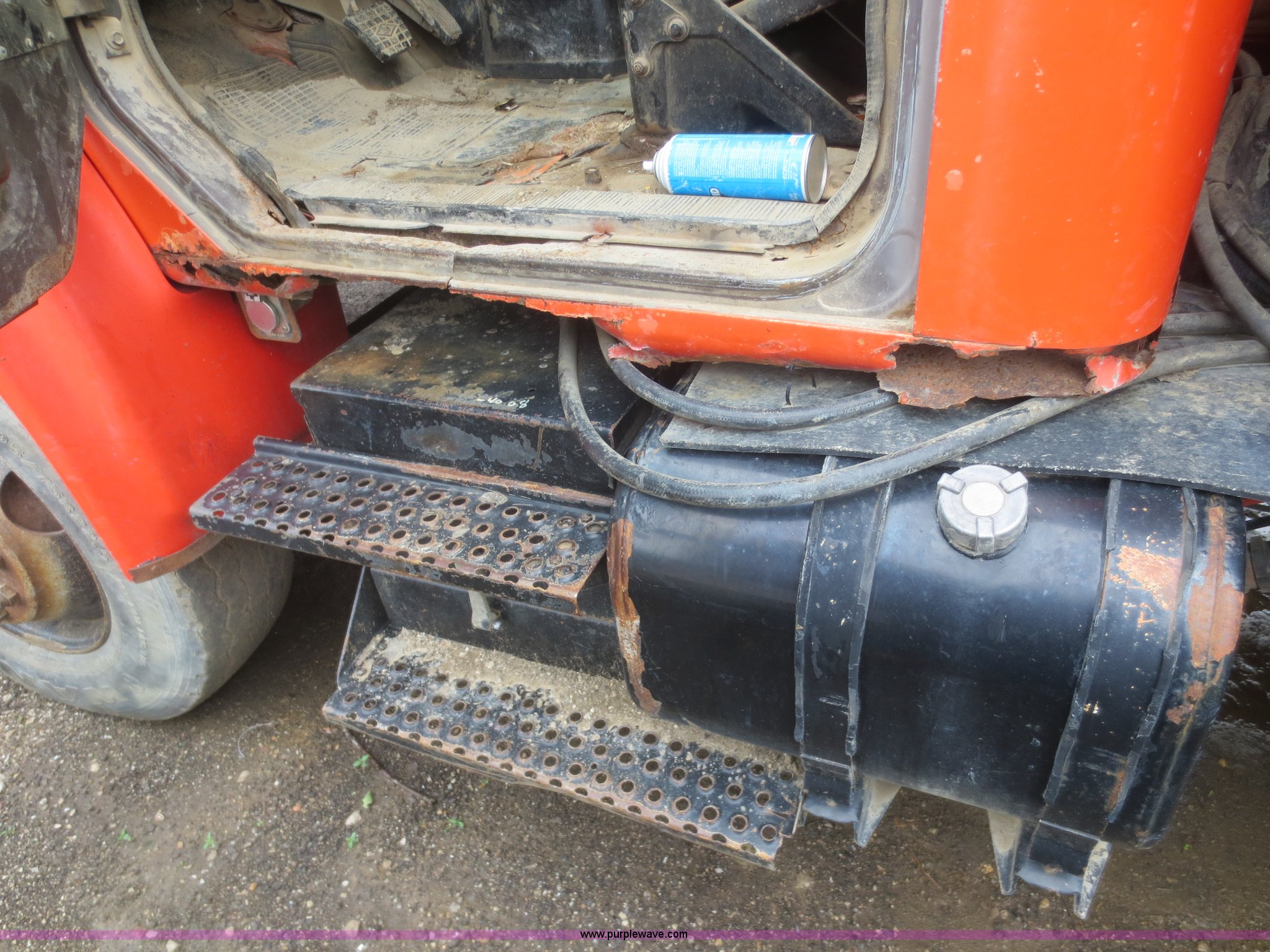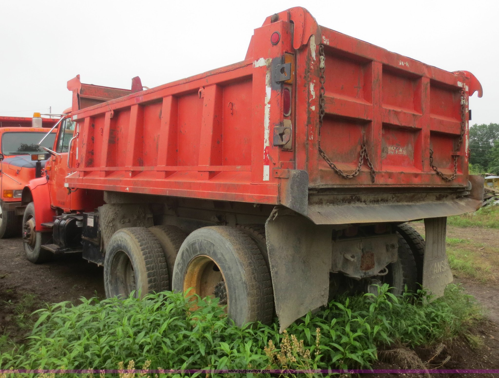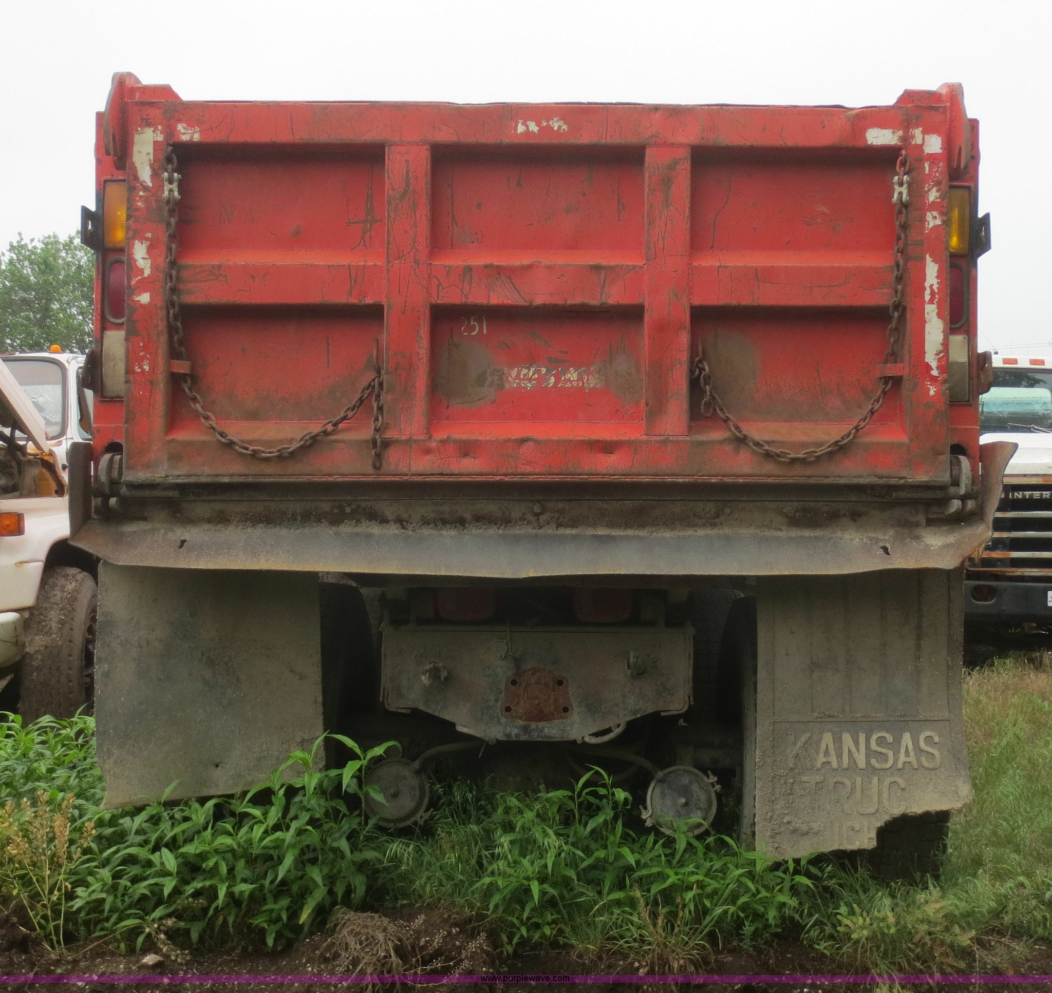Purple Wave is selling a used Construction Dump Truck in Kansas. This item is a 1991 International 4900 dump truck with the following: 207,226 miles on odometer, International DT466 7.6L L6 diesel engine, Five speed automatic transmission, Twin screw, Heat, AM/FM/cassette, Air suspension seat, PTO, Peabody Galion 13'L dump bed, Air operated end gate, Single ram three stage hoist, Spring suspension, Air brakes, Brake controller, 171" wheelbase, 295/75R22.5 tires, GVWR 46,000 lbs, FAWR 12,000 lbs, IAWR 17,000 lbs, RAWR 17,000 lbs, Rear suspension bushings need replaced, Cross link broken, End gate air cylinder missing
