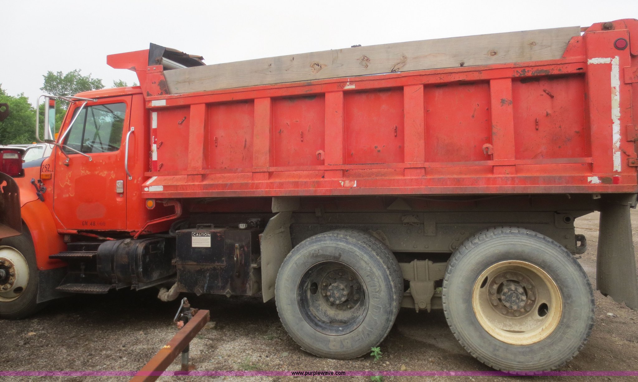 Purple Wave is selling a used Construction Dump Truck in Kansas. This item is a 1991 International 4900 dump truck with the following: 34,985 miles on odometer, Actual Mileage Unknown, International DT466 7.6L L6 diesel engine, Five speed automatic transmission, Twin screw, Heat, AM/FM, Heated mirrors, Air suspension seat, PTO, Single ram three stage hoist, Single fuel tank, Spring suspension, Air brakes, Brake controller, 173" wheelbase, 295/75R22.5 tires, GVWR 46,000 lbs, FAWR 12,000 lbs, IAWR 17,000 lbs, RAWR 17,000 lbs, Suspension bushings need replaced, Cross tube missing, Leaf spring cracked