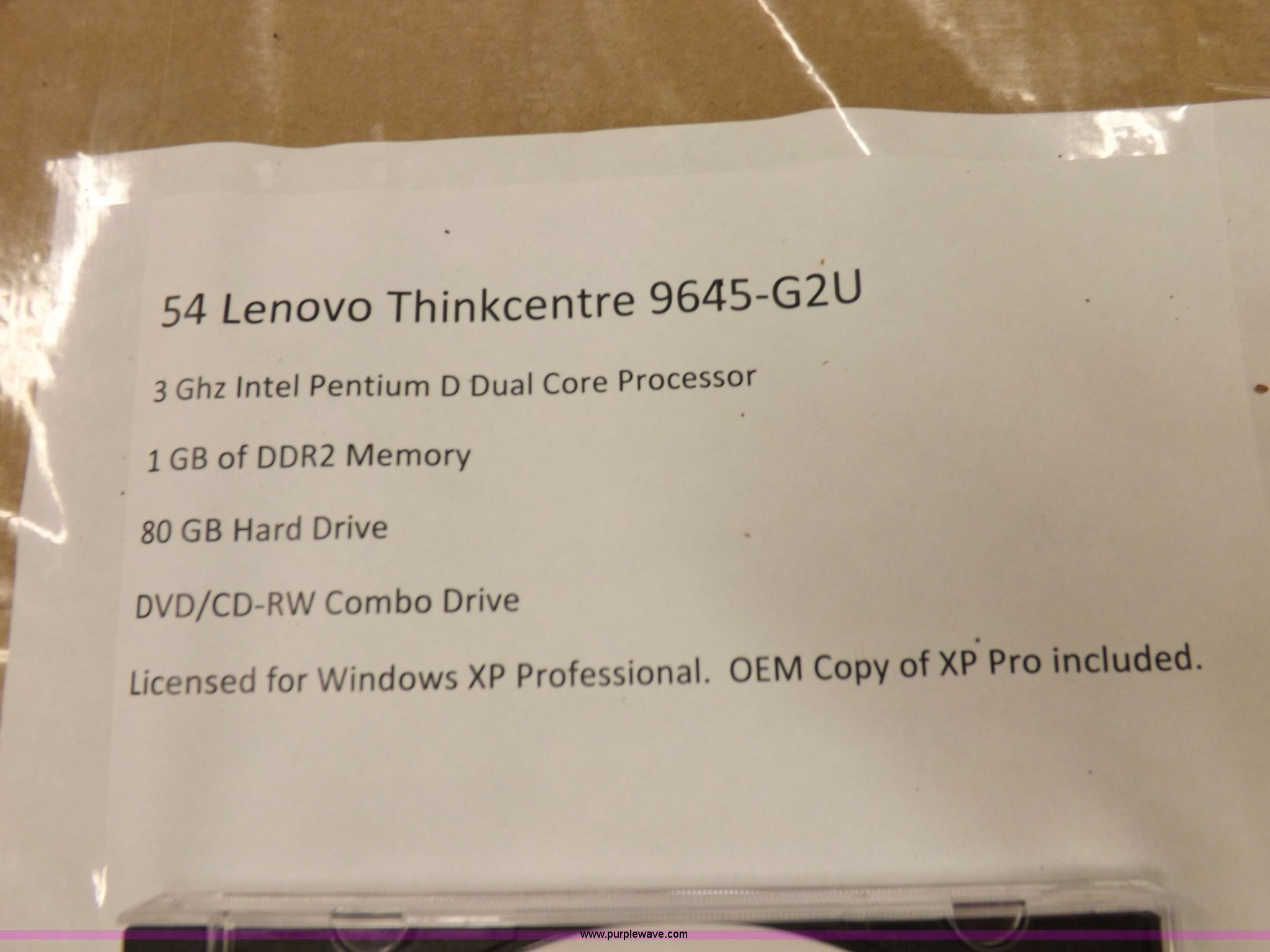 Purple Wave is selling a used Computers in Kansas. This item is a (54) Lenovo ThinkCentre 9645-G2U desktop computers with the following: No monitors