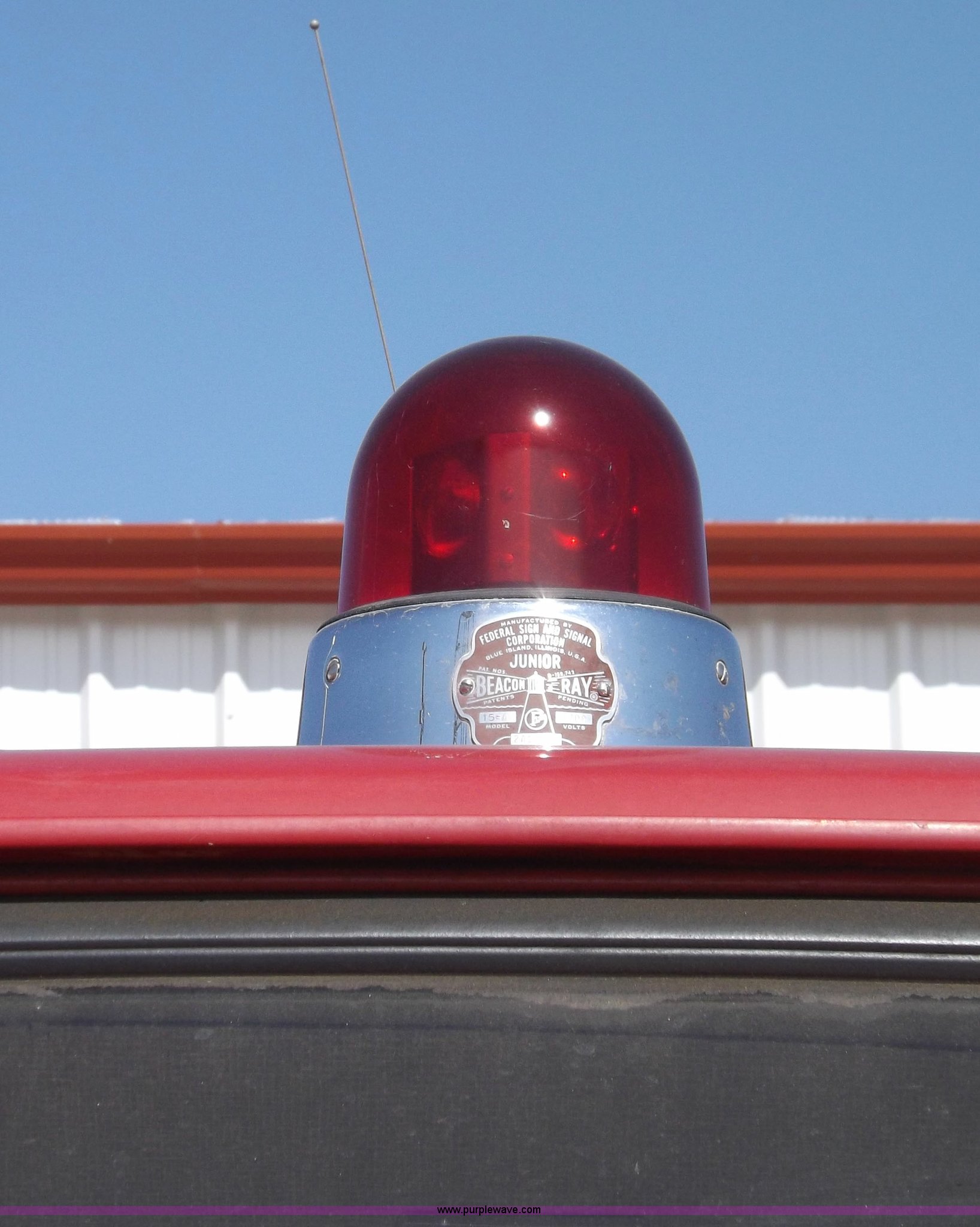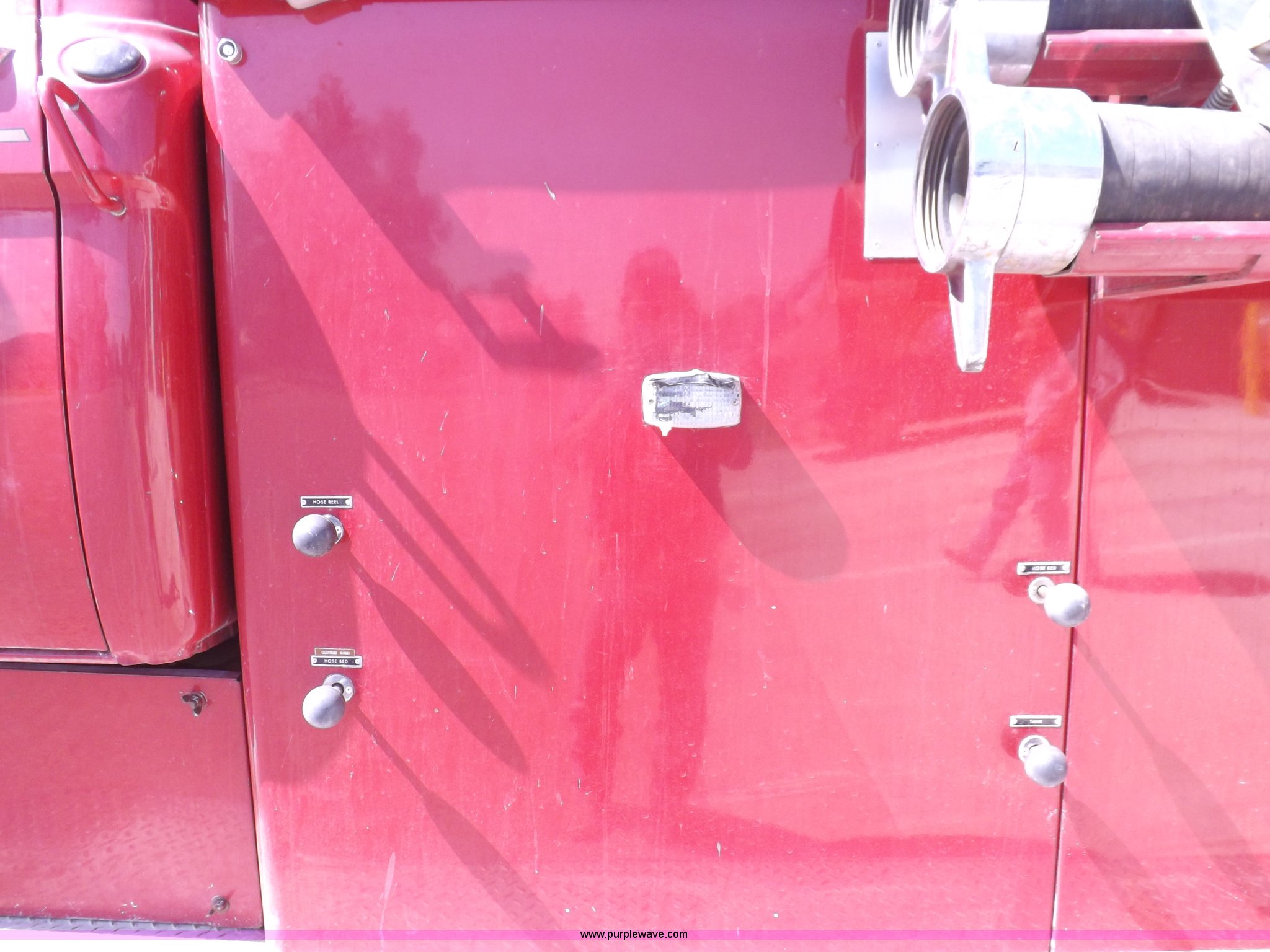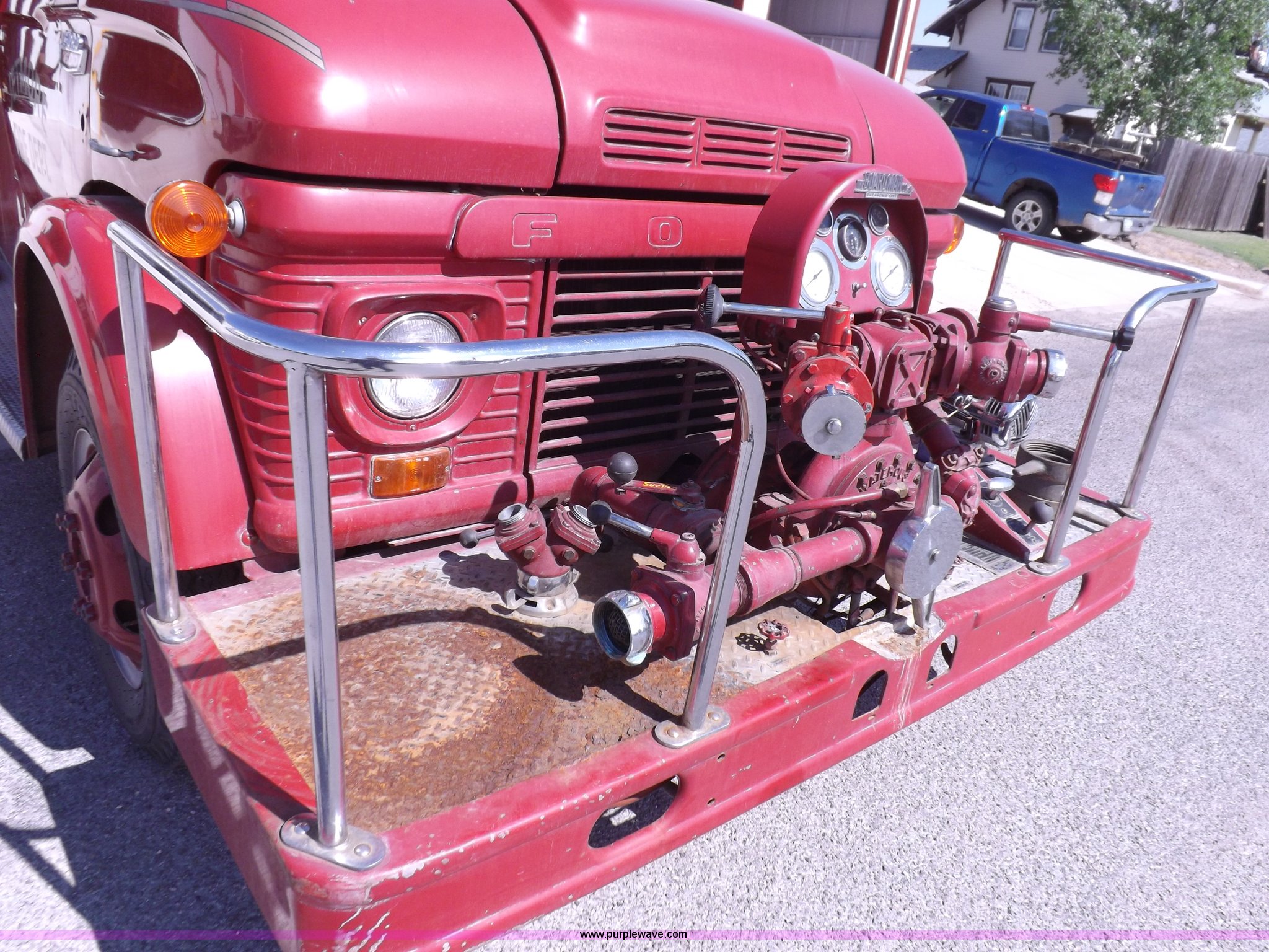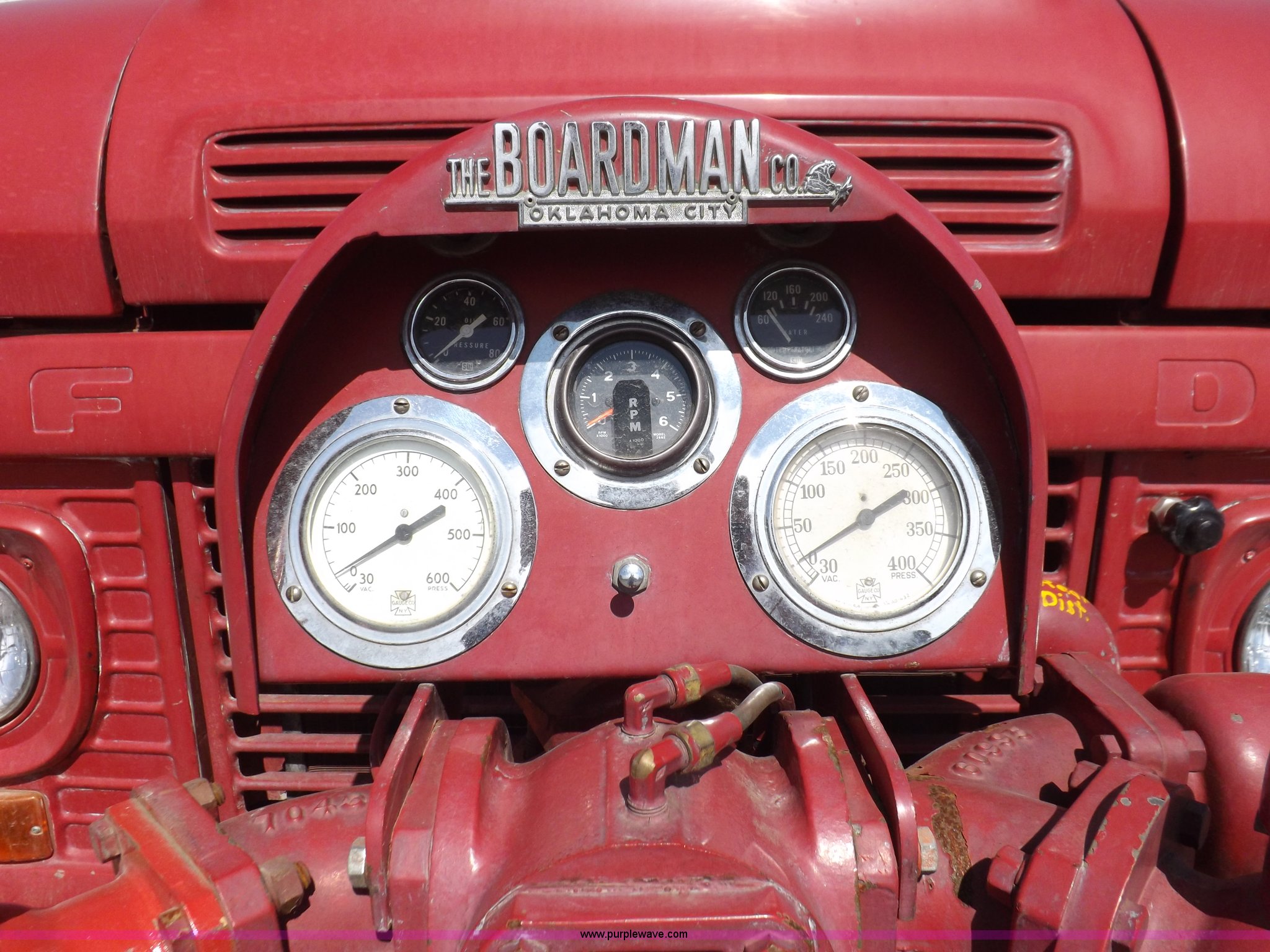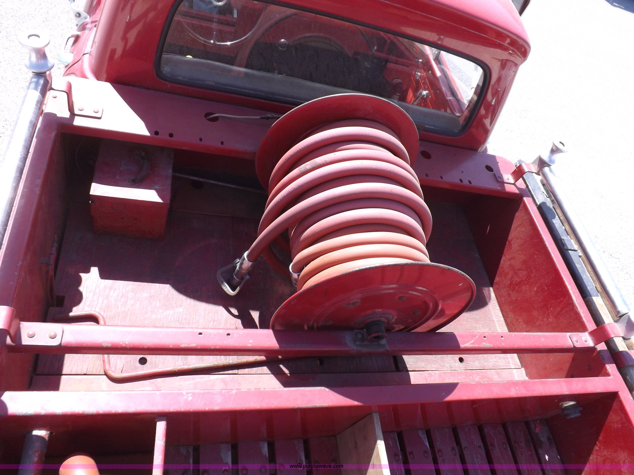 Purple Wave is selling a used Fire Truck or Emergency Vehicle in Kansas. This item is a 1965 Ford 600 fire truck with the following: 2,006 miles on odometer, 330 C.I.D. gas engine, Four speed manual transmission, Boardman Fire Fighting bed, (2) 10'L 4" hard suction hoses, Approx. 100' of 1.5" booster reel hose with rewind, Waterous pump, Model CF-3, Serial 28508, 500 gpm at 150 psi, Front driven PTO, (2) 20' wood extension ladders, Master electrical disconnect, Spring suspension, Hydraulic brakes, 163" wheelbase, 8.25-20 tires, GVWR 20,000 lbs, Cracked driver's side window