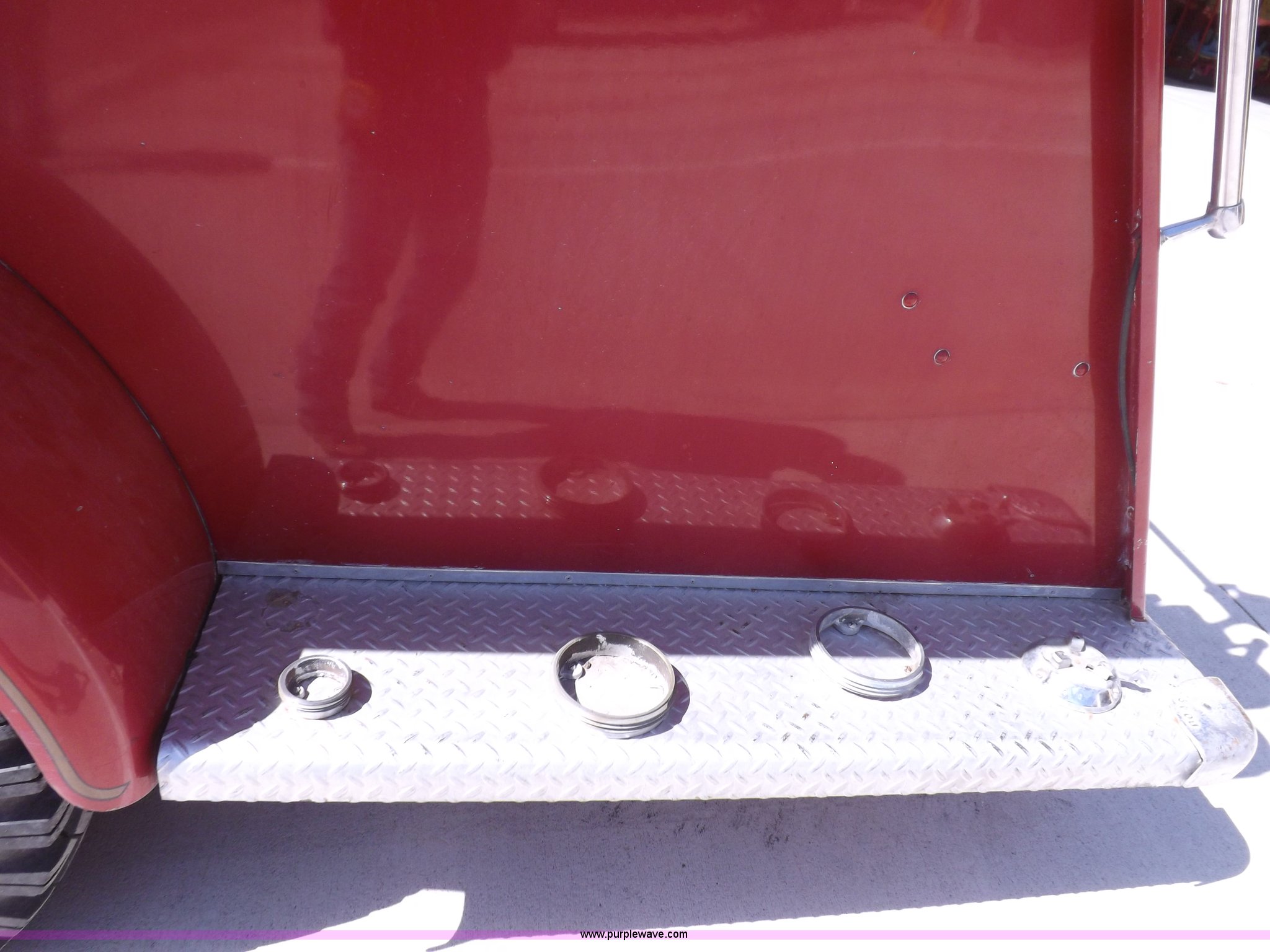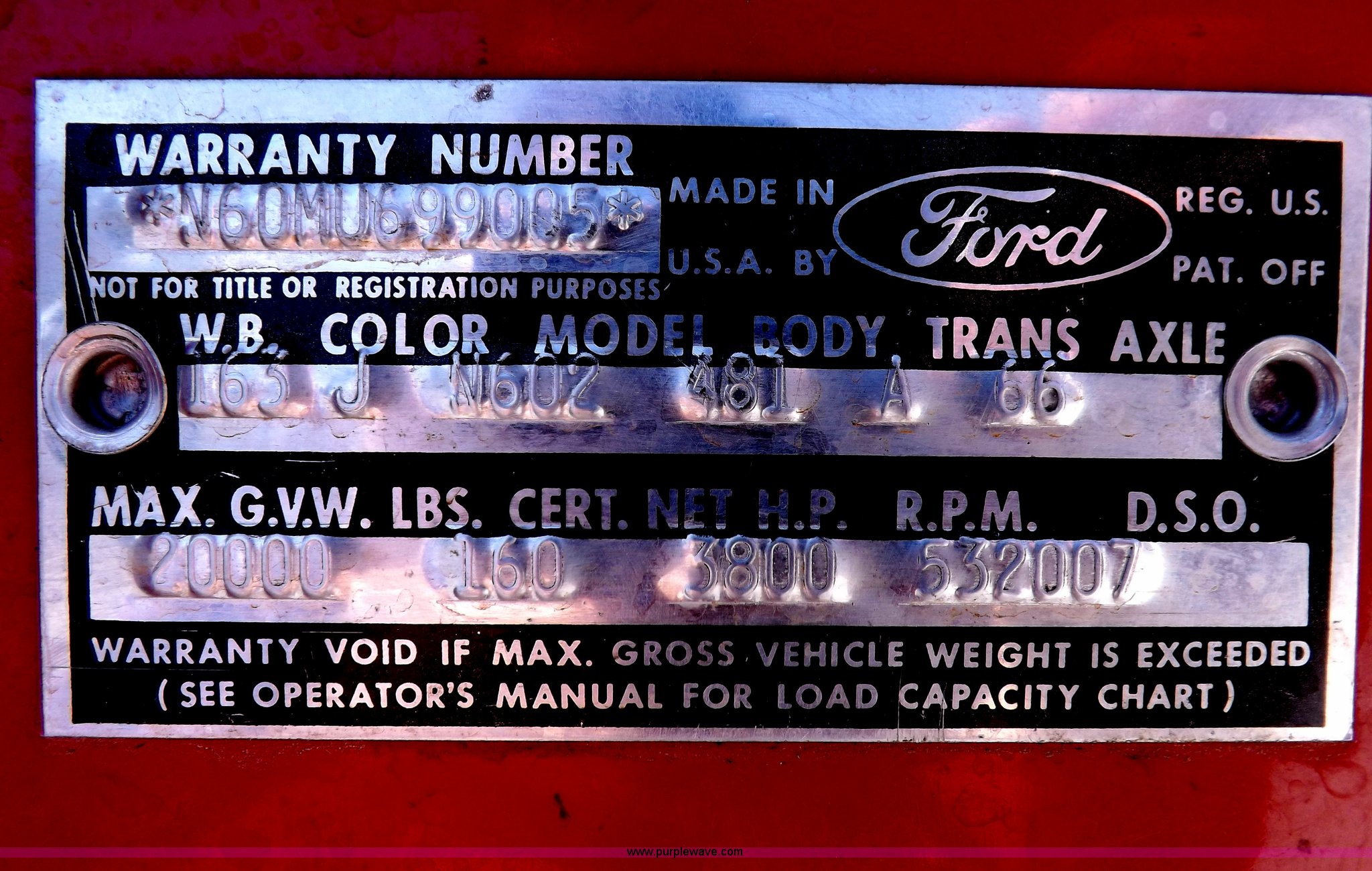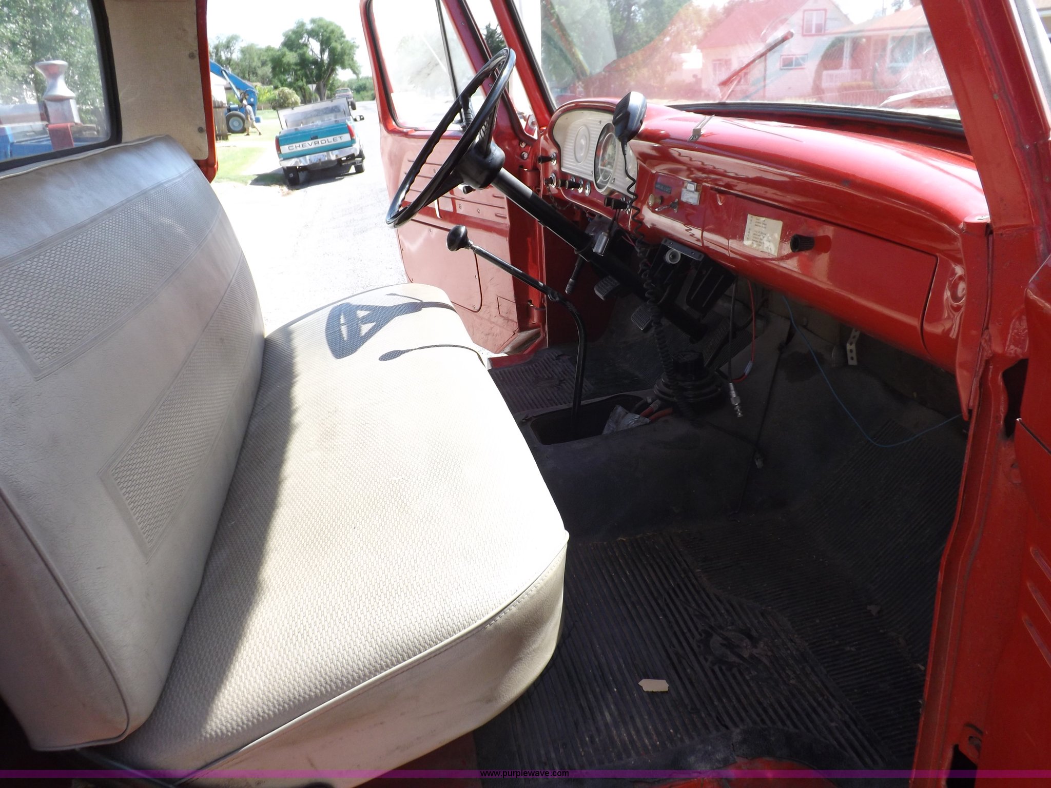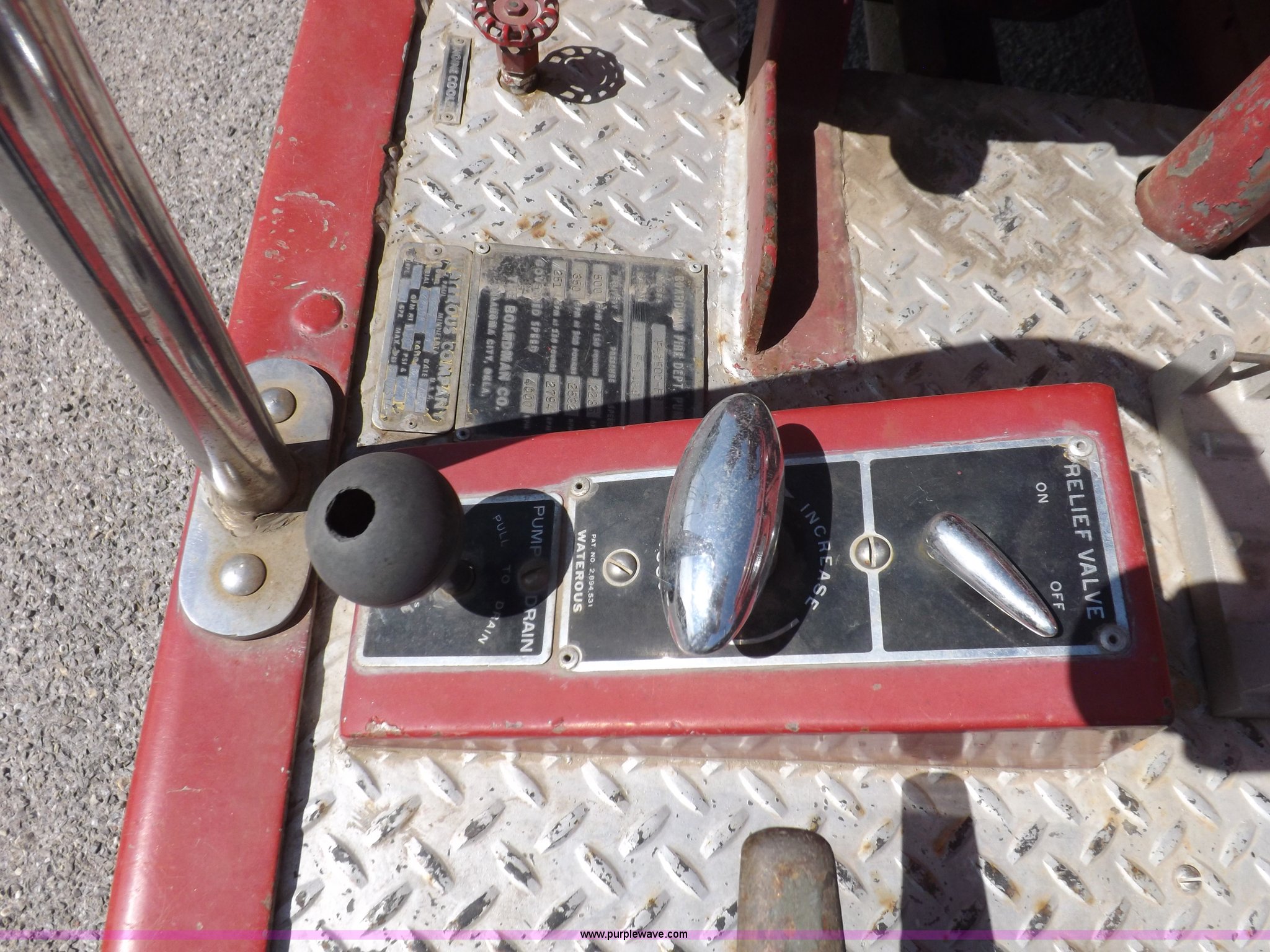 Purple Wave is selling a used Fire Truck or Emergency Vehicle in Kansas. This item is a 1965 Ford 600 fire truck with the following: 2,006 miles on odometer, 330 C.I.D. gas engine, Four speed manual transmission, Boardman Fire Fighting bed, (2) 10'L 4" hard suction hoses, Approx. 100' of 1.5" booster reel hose with rewind, Waterous pump, Model CF-3, Serial 28508, 500 gpm at 150 psi, Front driven PTO, (2) 20' wood extension ladders, Master electrical disconnect, Spring suspension, Hydraulic brakes, 163" wheelbase, 8.25-20 tires, GVWR 20,000 lbs, Cracked driver's side window