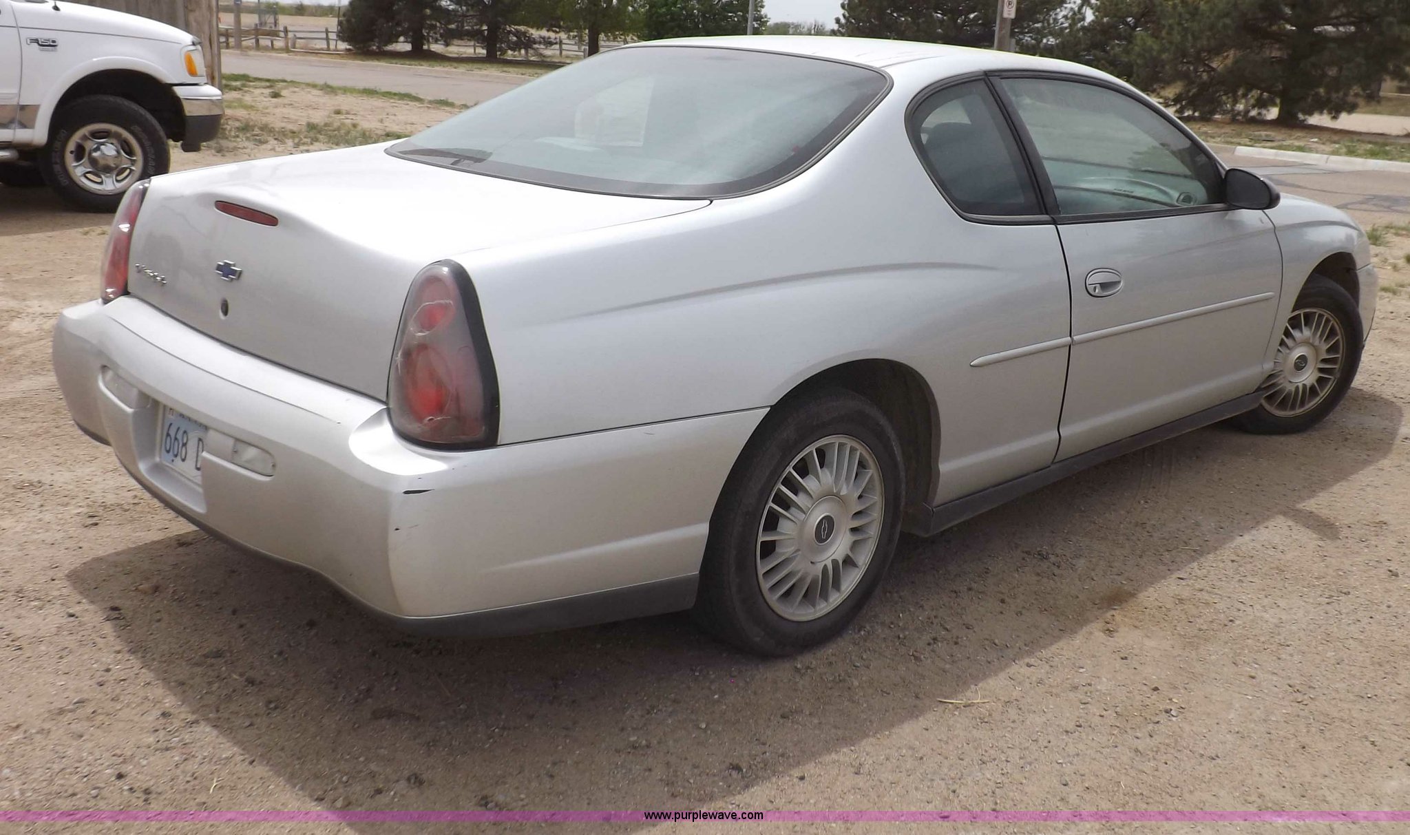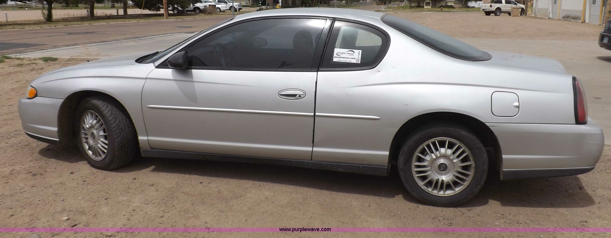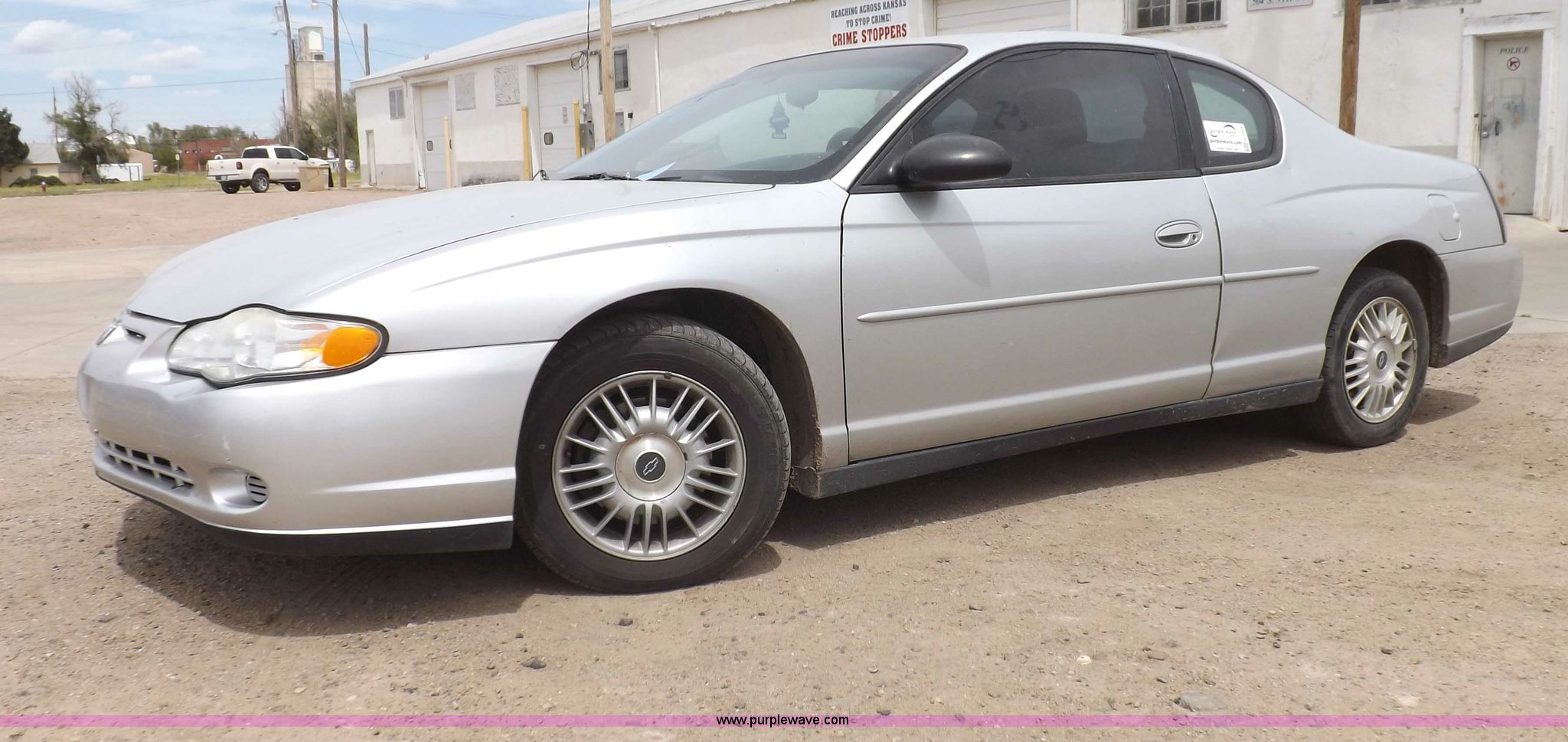 Purple Wave is selling a used Passenger Vehicle in Kansas. This item is a 2002 Chevrolet Monte Carlo LS with the following: 147,142 actual miles, 3.4L V6 OHV 12V gas engine, Automatic transmission, AC and heat, Tilt, Cruise, AM/FM/cassette, Power windows, locks, mirrors, and seats, Cloth interior, 205/60R16 tires, Interior/exterior cosmetic damage, Front bumper cracked, Right rear turn signal loose and cracked, Small dents, Exterior trim loose, Interior trim missing, Seat torn, Driver's door has been replaced