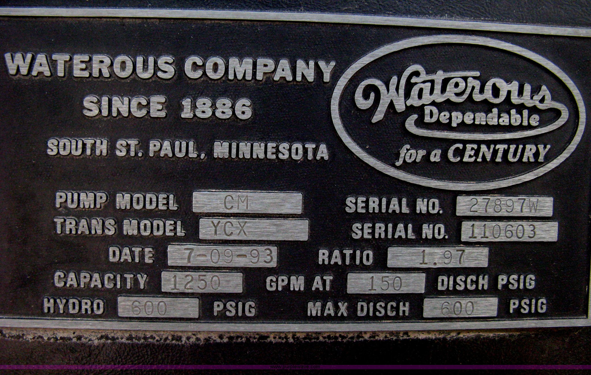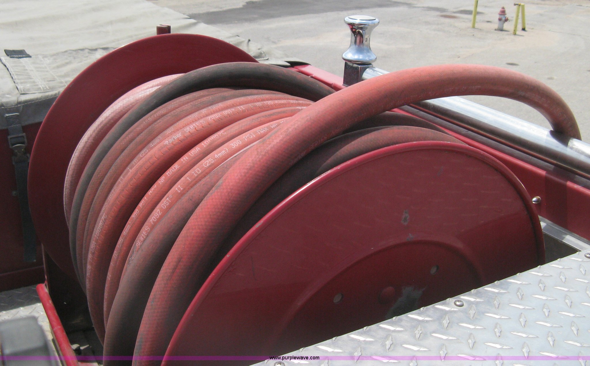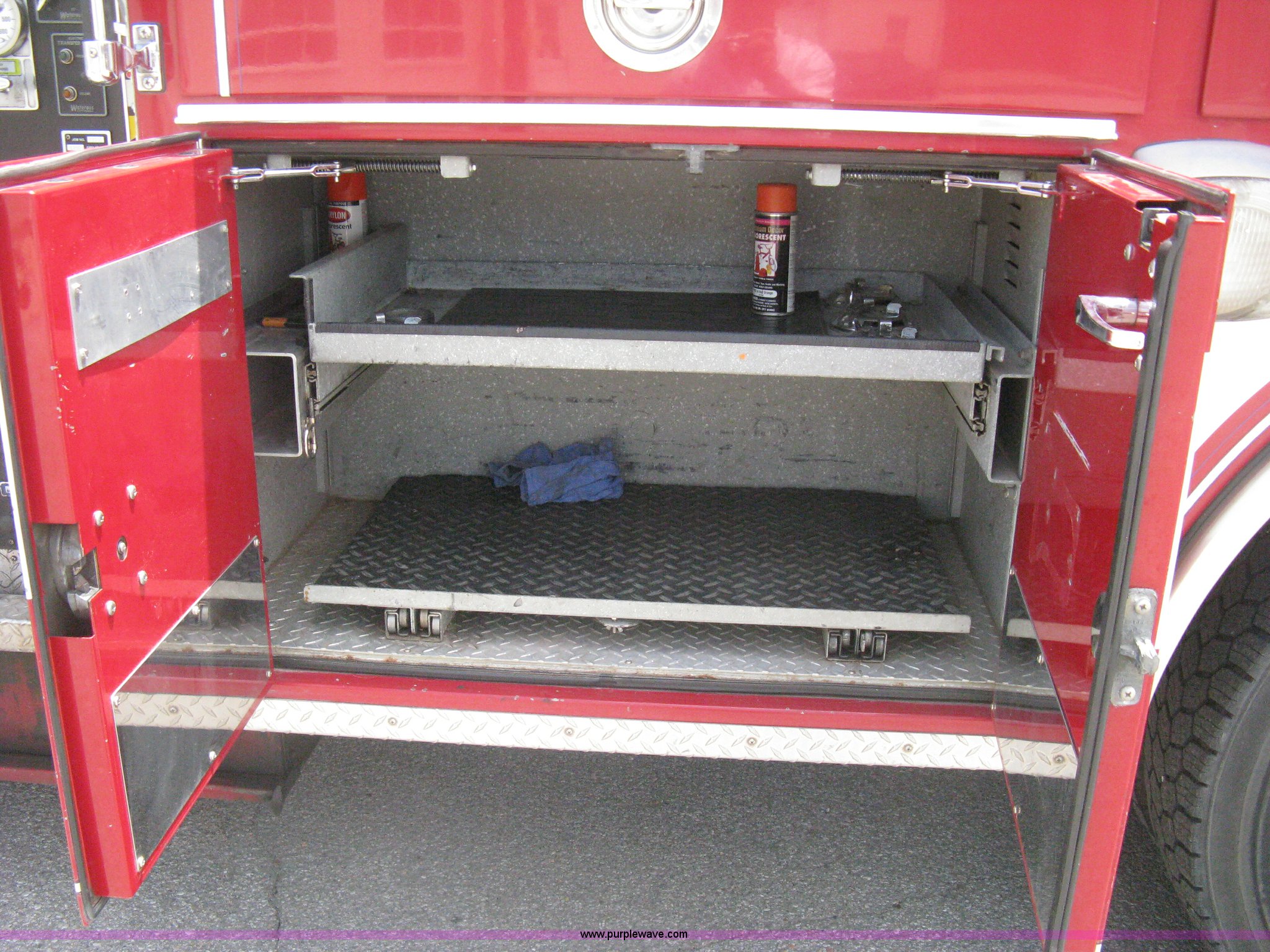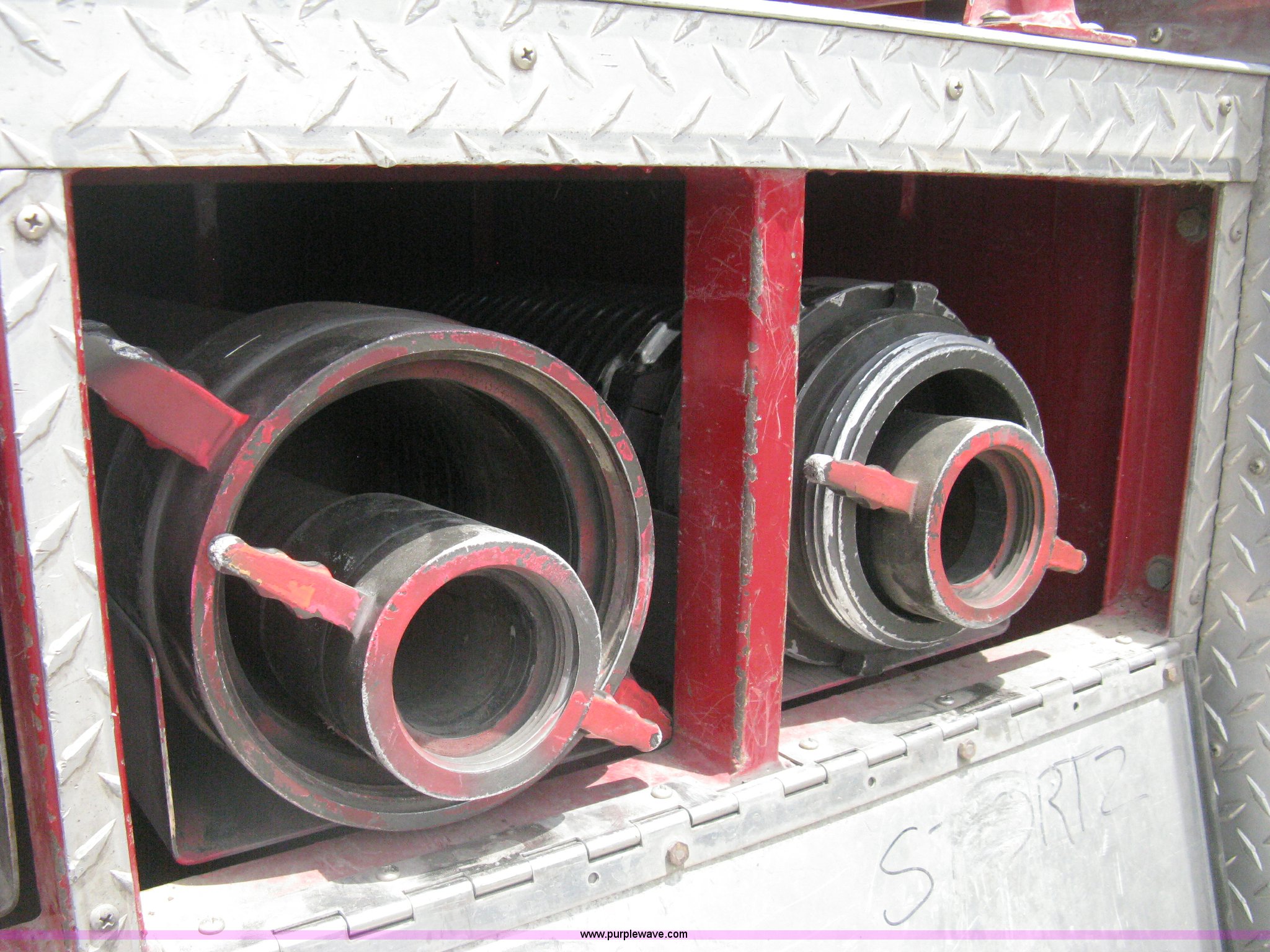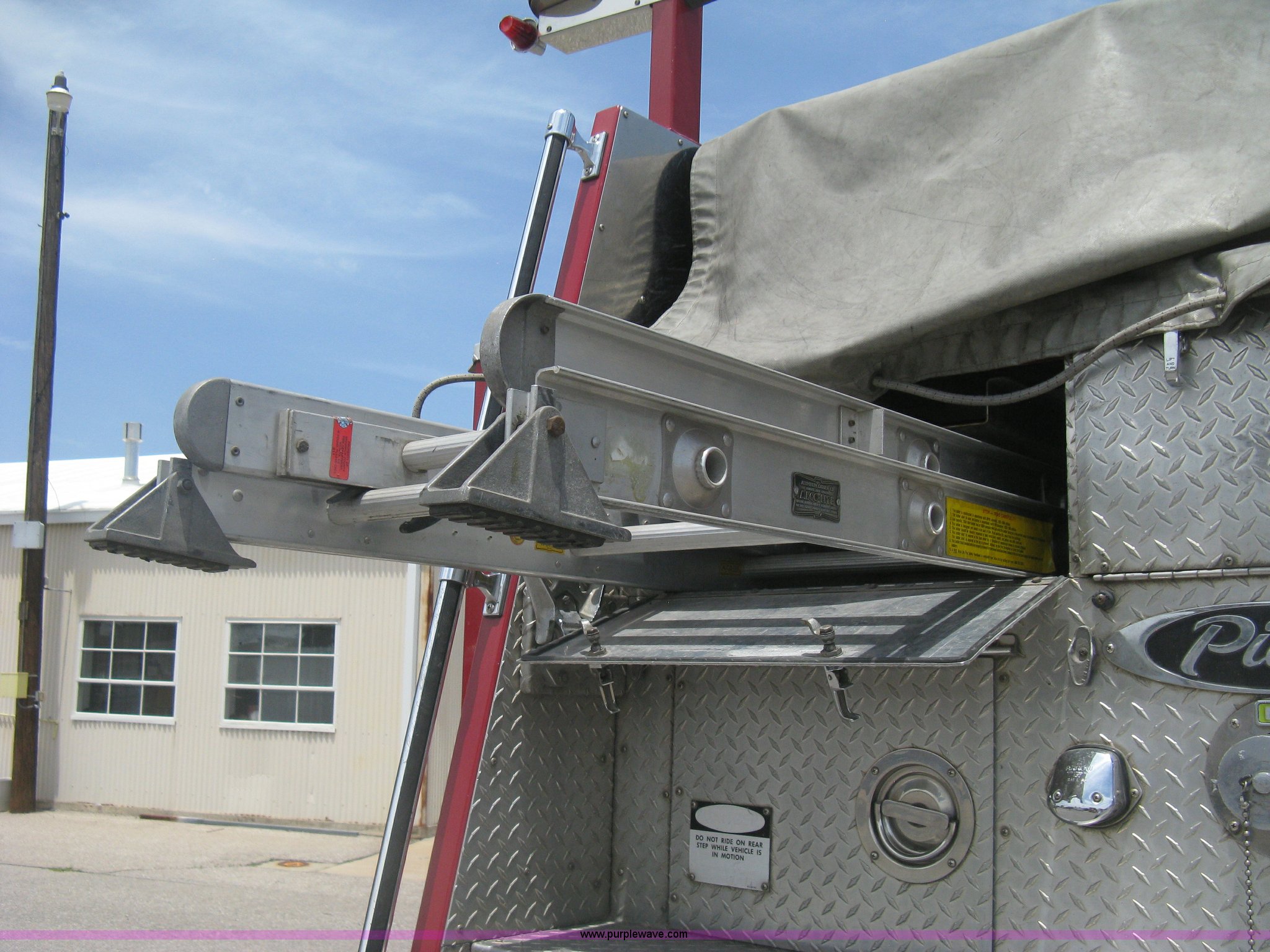 Purple Wave is selling a used Fire Truck or Emergency Vehicle in Kansas. This item is a 1993 Pierce pumper fire truck with the following: 137,820 actual miles, 8,785 engine hours on meter, 745 pump hours on meter, Cummins C8.3 8.3L L6 diesel engine, Automatic transmission, Heat, Telescoping steering wheel, Manual windows, Air suspension driver's seat, Vinyl interior, Circulation fans, Rear AC, Spotlights, Waterous pumping apparatus, Pump model CM, Trans model YCX, 1,250 gpm at 150 psig discharge, 600 psig max discharge, Top mount watering gun, Twin hose reels with hose, Canvas hose compartment cover, Side mount rescue extension ladder, Stow-away extension ladder, (7) side supply cabinets, (6) rear compartments, Honda EM5000S generator, Electronic ignition, Slide-out tray mount, (2) Pike poles, Air brakes, Aluminum front wheels, 315/80R22.5 front tires, 12R22.5 rear tires, GVWR 38,600 lbs, Interior cosmetic damage, Unit# E230