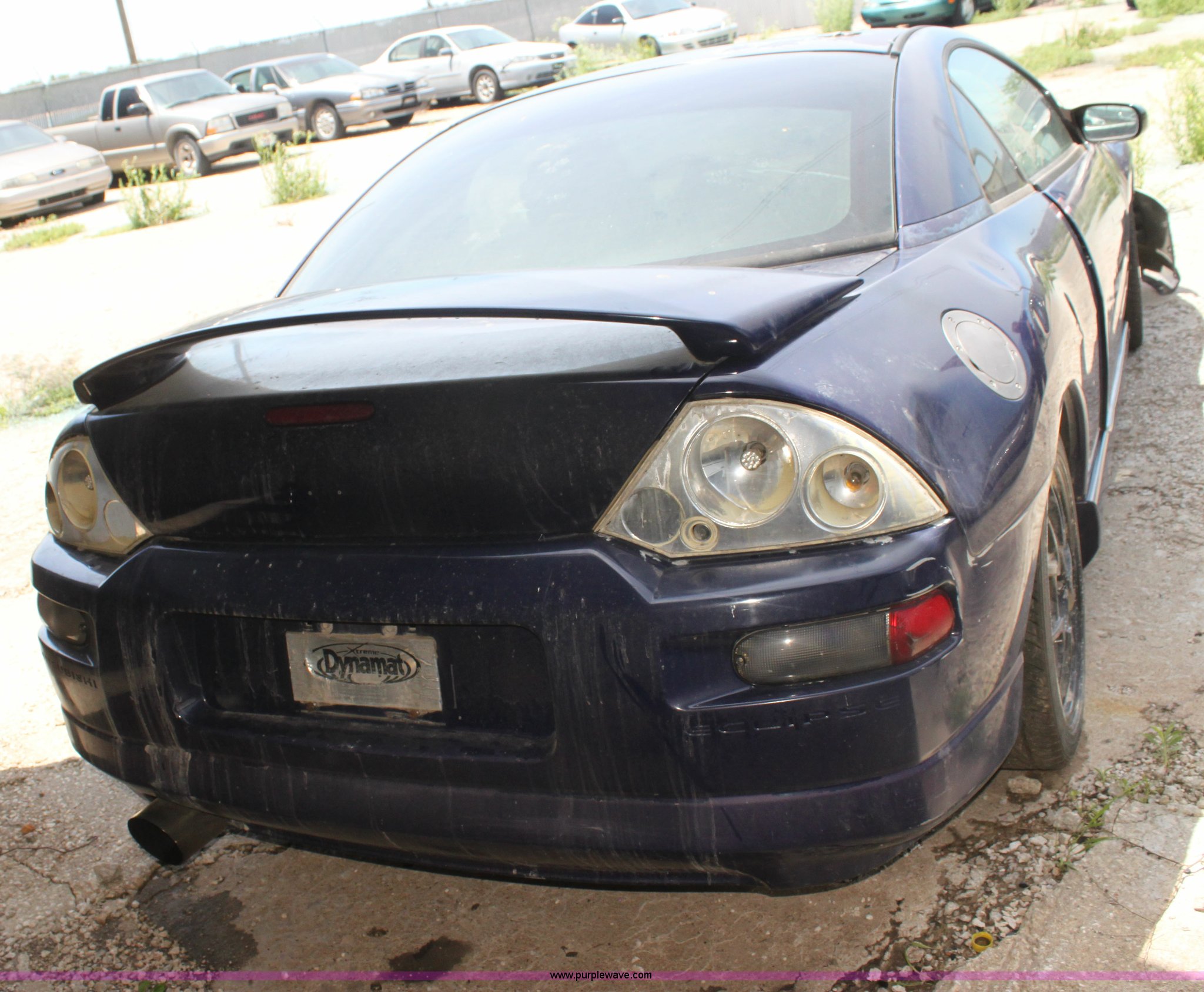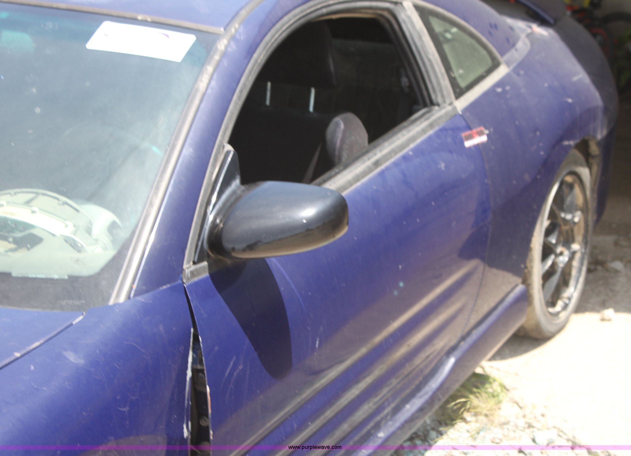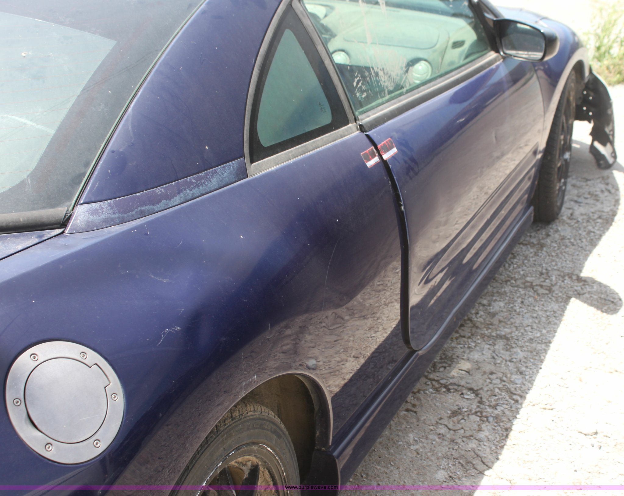 Purple Wave is selling a used Passenger Vehicle in Kansas. This item is a 2000 Mitsubishi Eclipse GT with the following: 145,745 miles on odometer, 3.0L V6 SOHC 24V gas engine, Automatic transmission, AC and heat, Tilt, AM/FM/CD, Power windows and locks, 205/45R17 tires, Interior/exterior cosmetic damage, SRS light on, Engine oil light on, Dead battery, Shaved door handles, Hail damage, Noise under hood may be coming from pulley