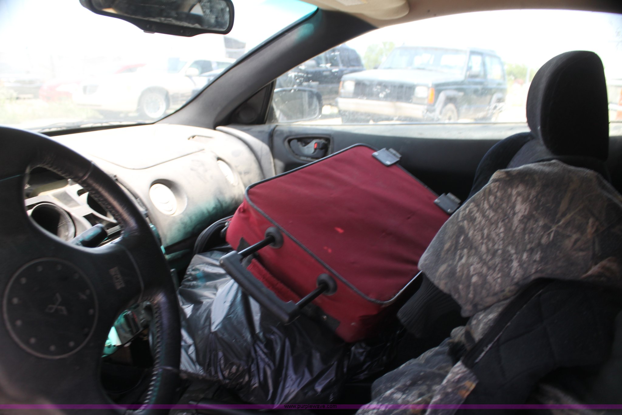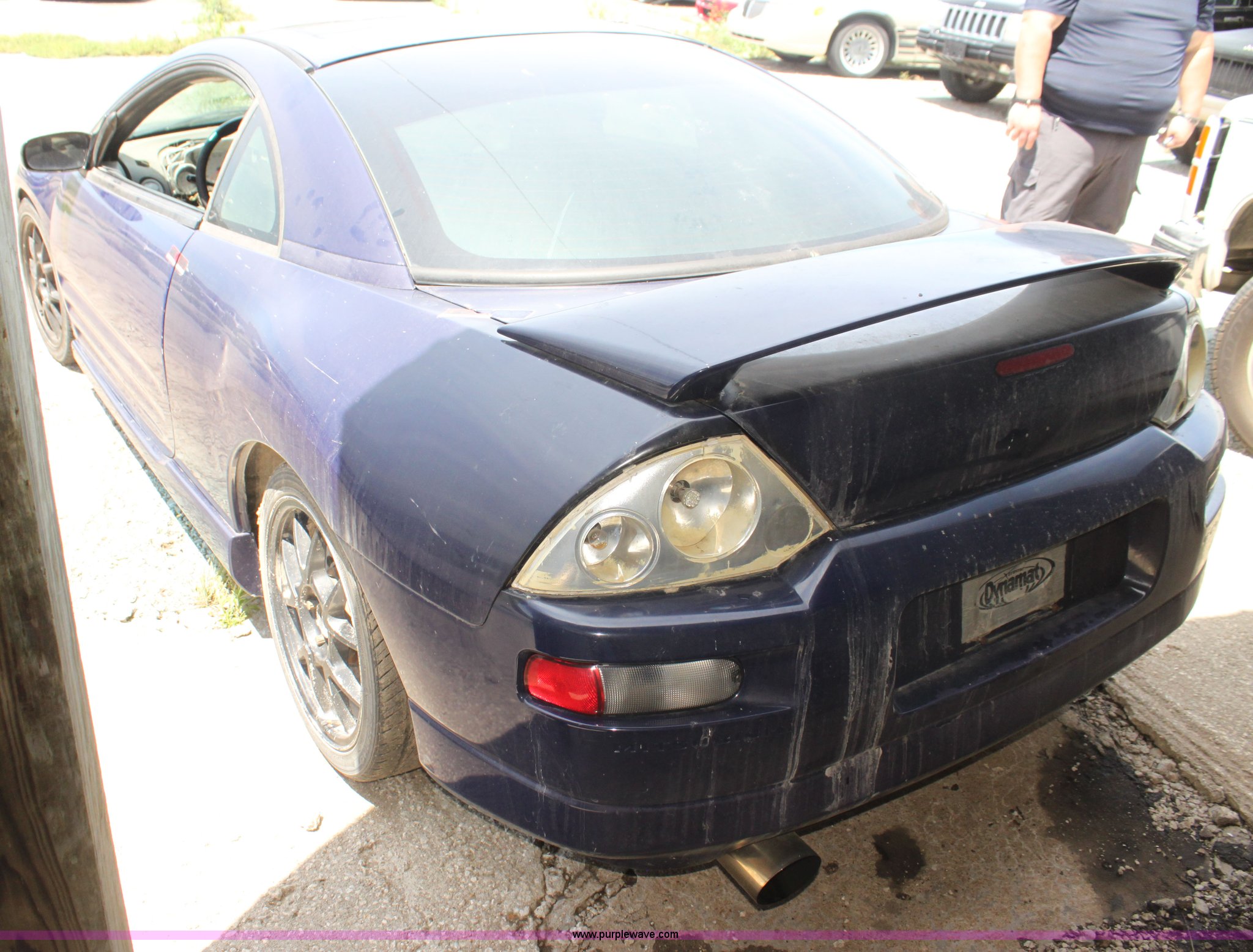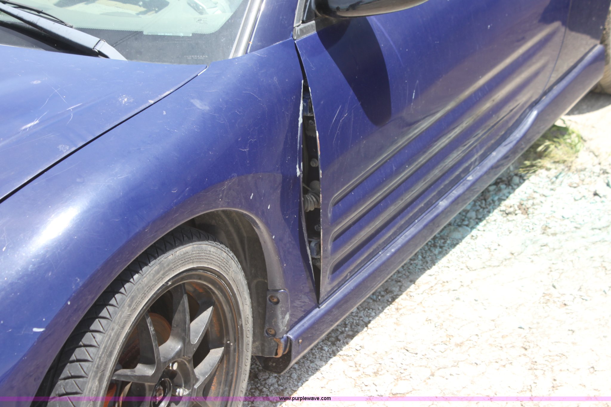 Purple Wave is selling a used Passenger Vehicle in Kansas. This item is a 2000 Mitsubishi Eclipse GT with the following: 145,745 miles on odometer, 3.0L V6 SOHC 24V gas engine, Automatic transmission, AC and heat, Tilt, AM/FM/CD, Power windows and locks, 205/45R17 tires, Interior/exterior cosmetic damage, SRS light on, Engine oil light on, Dead battery, Shaved door handles, Hail damage, Noise under hood may be coming from pulley