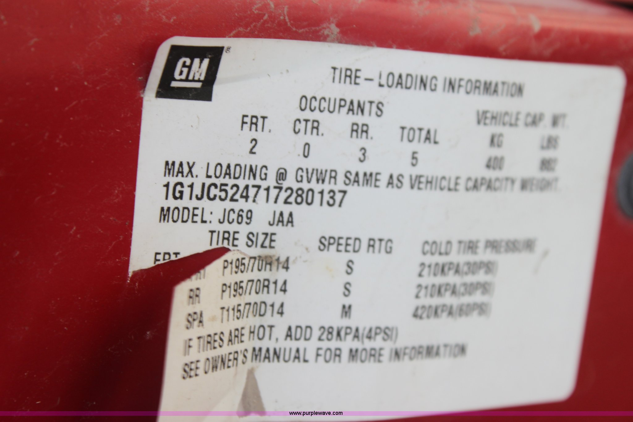 Purple Wave is selling a used Passenger Vehicle in Kansas. This item is a 2001 Chevrolet Cavalier with the following: 177,499 miles on odometer, 2.2L L4 OHV 8V gas engine, Automatic transmission, AC and heat, AM/FM, Manual windows and locks, Cloth interior, 195/70R14 tires, Interior/exterior cosmetic damage, Dead battery, Hail damage, Cracked windshield