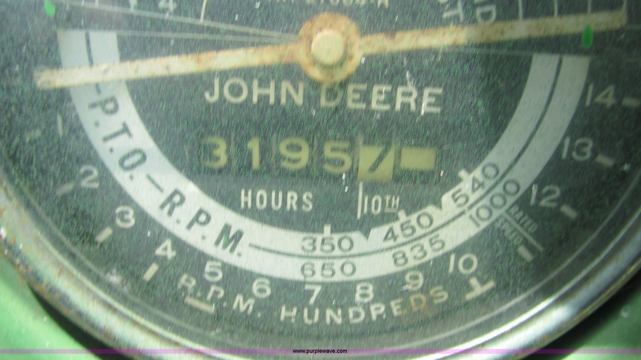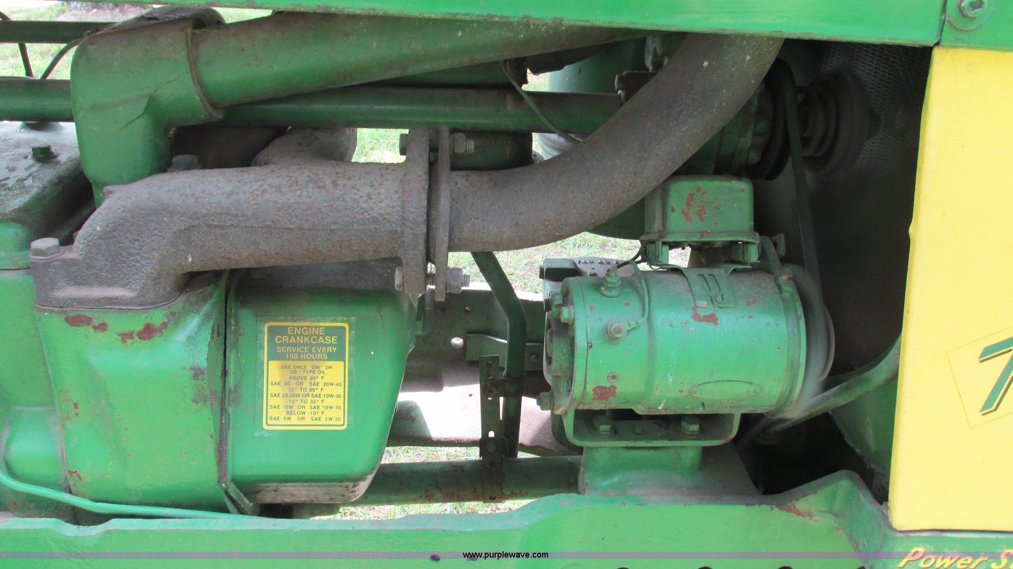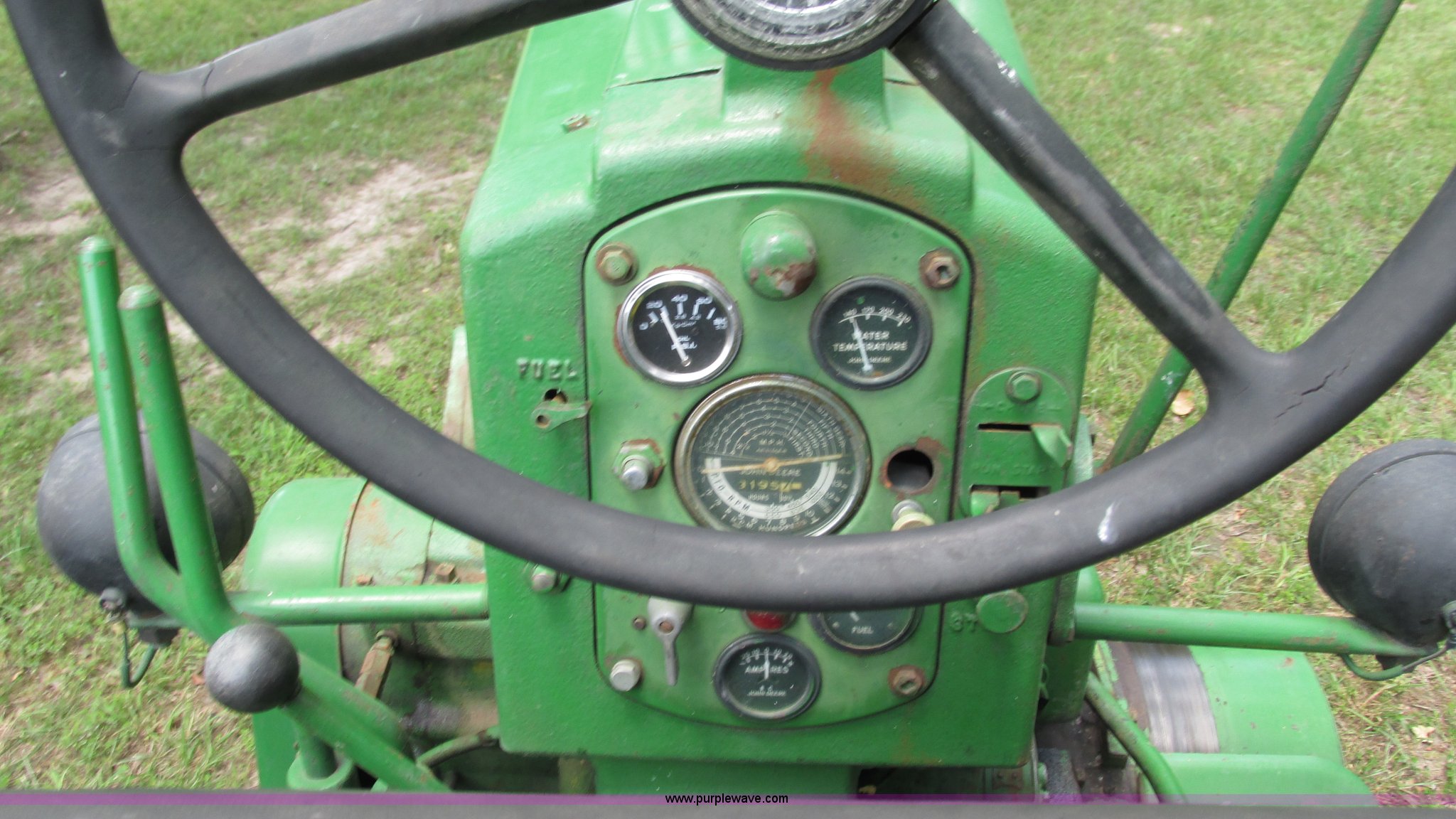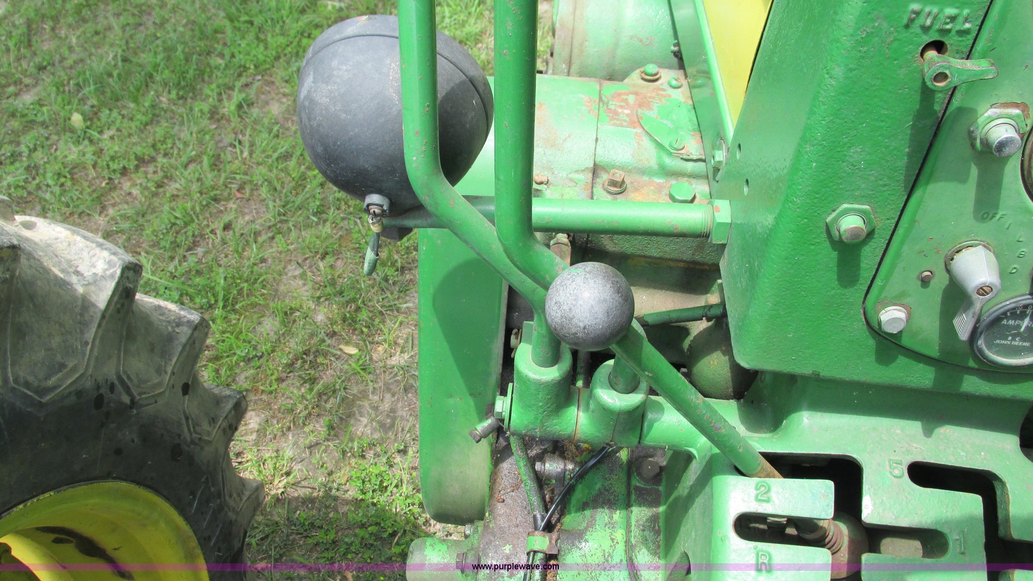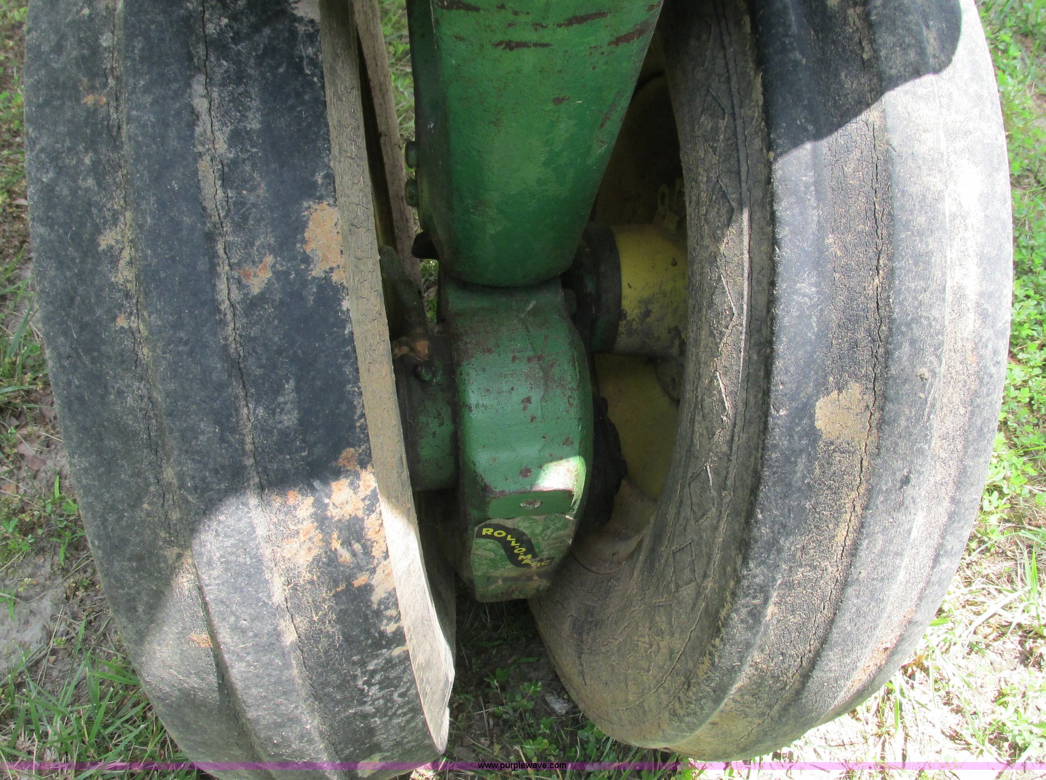 Purple Wave is selling a used Tractor in Missouri. This item is a 1957 John Deere 720 tractor with the following: 3,195 hours on meter, John Deere two cylinder diesel engine, Six speed transmission, Four cylinder gas pony engine, Power steering, Three point, 540 PTO, Live PTO, (2) work lights, Tow bar, 6.0x16 front tires, Cracked, 15.5x38 rear tires, Serial 7226986
