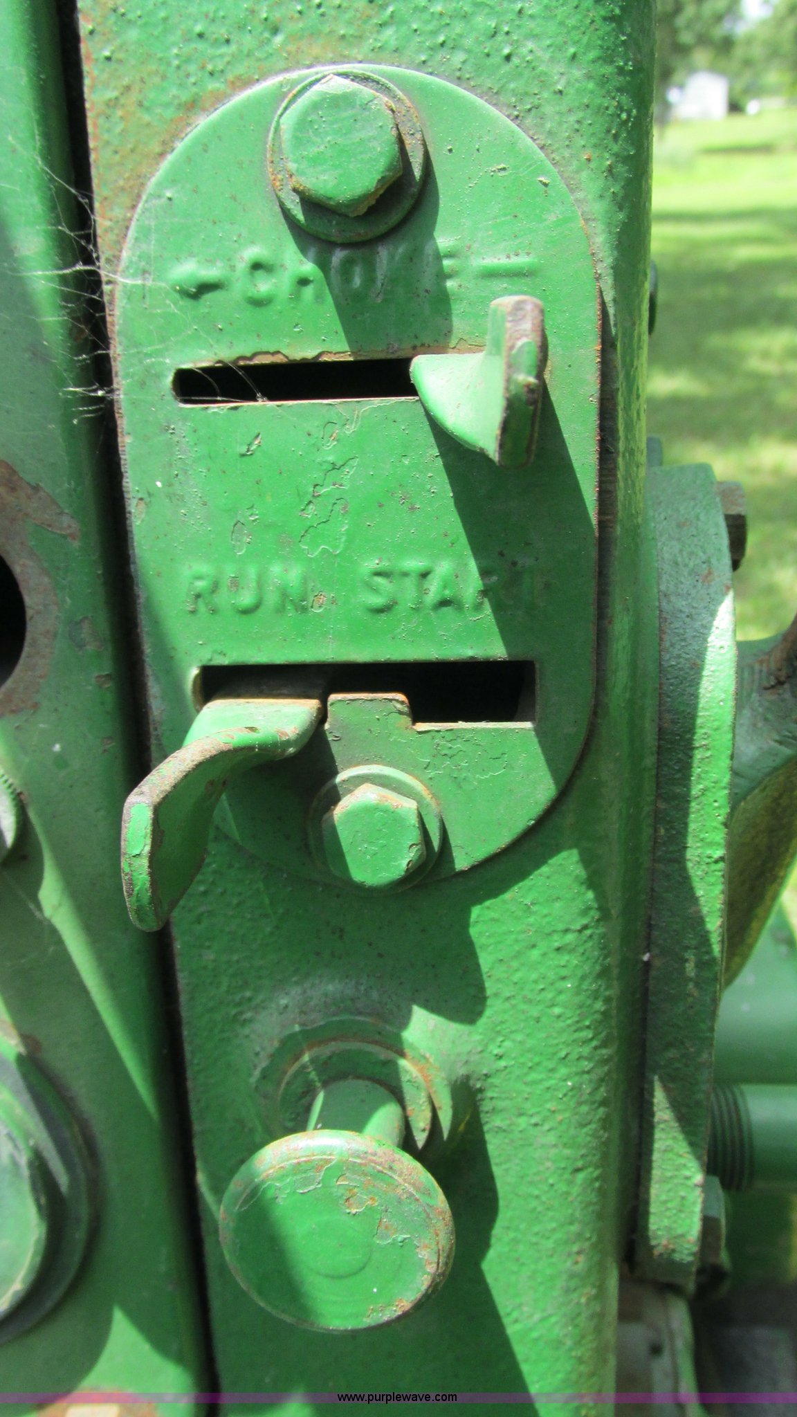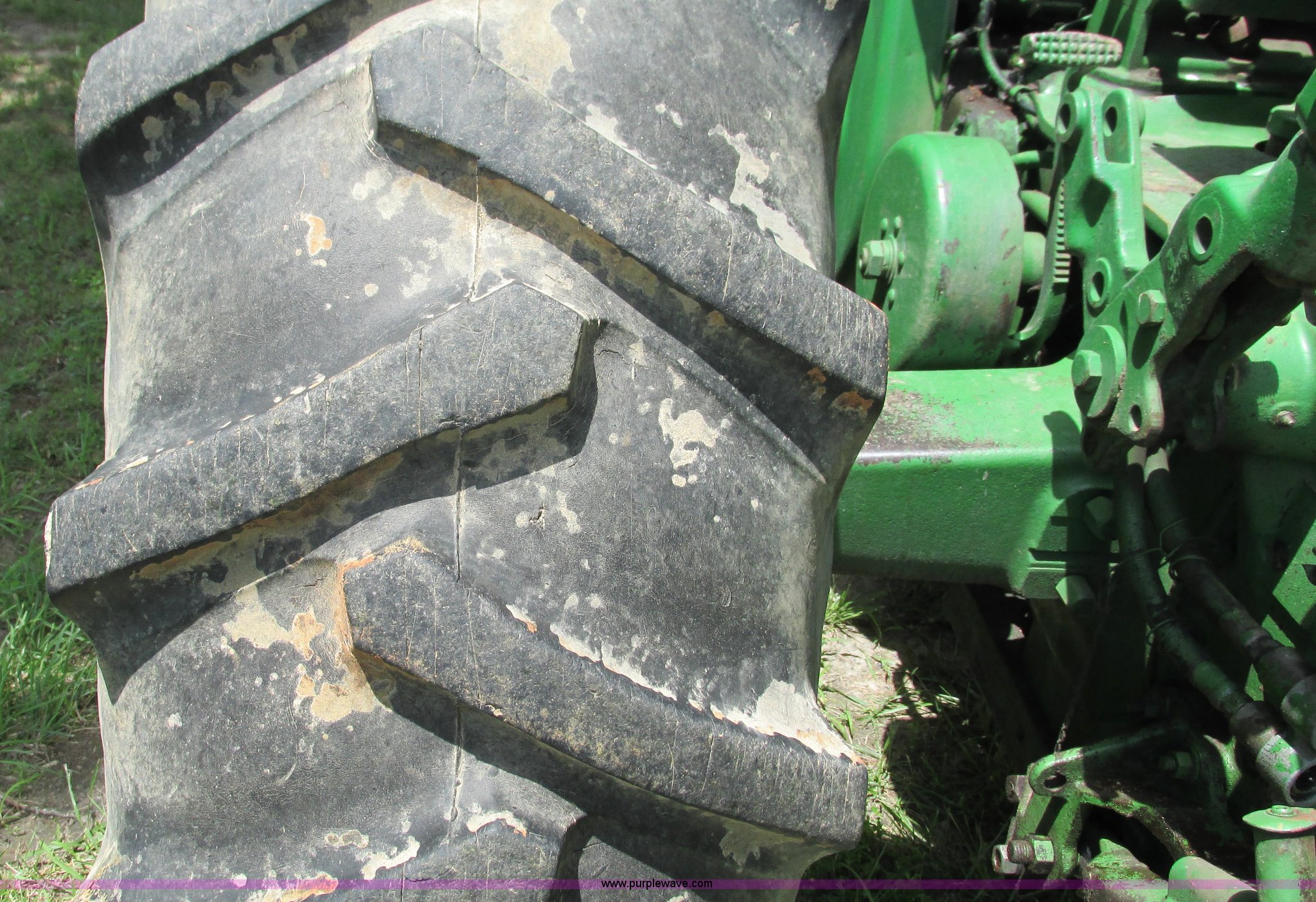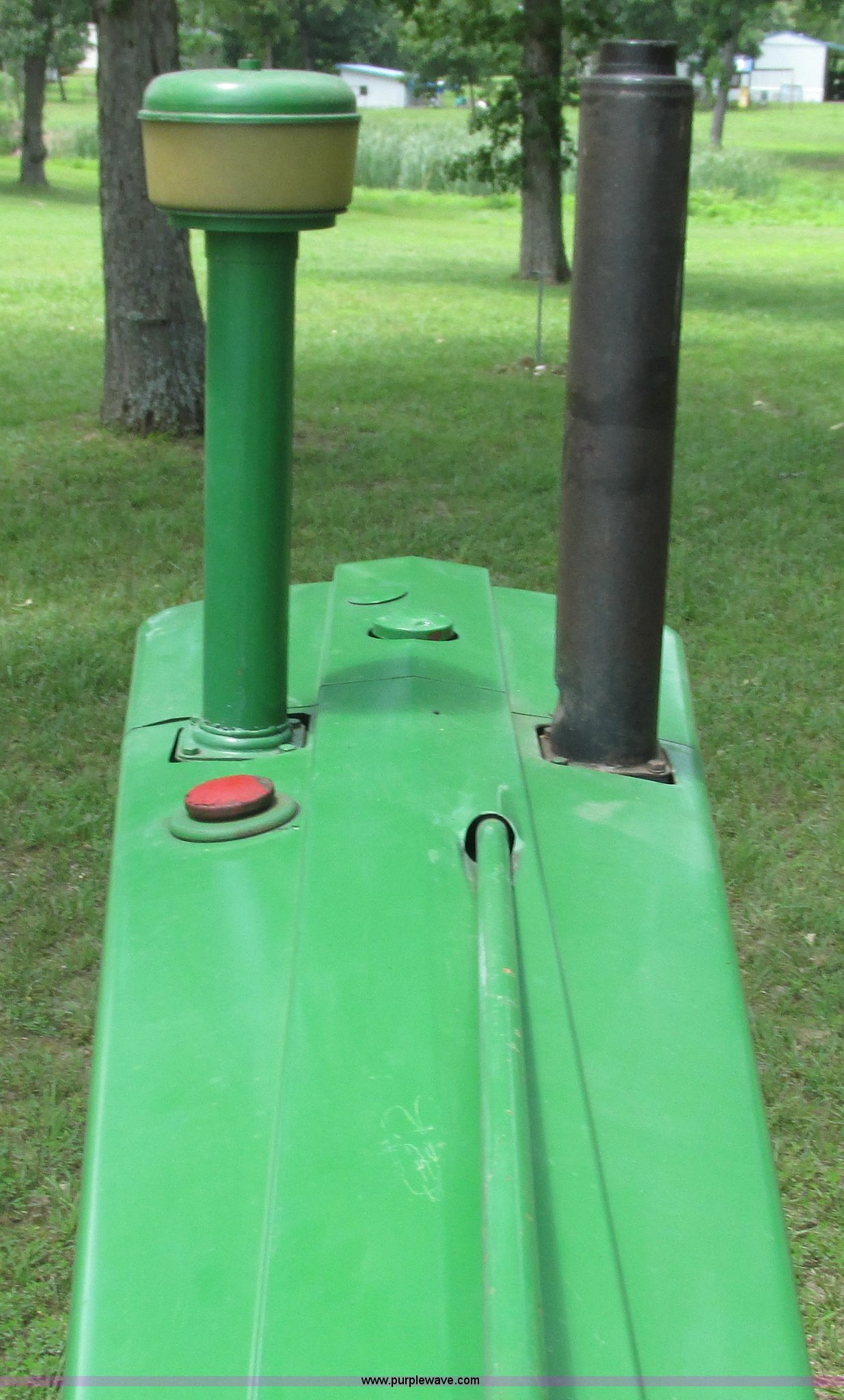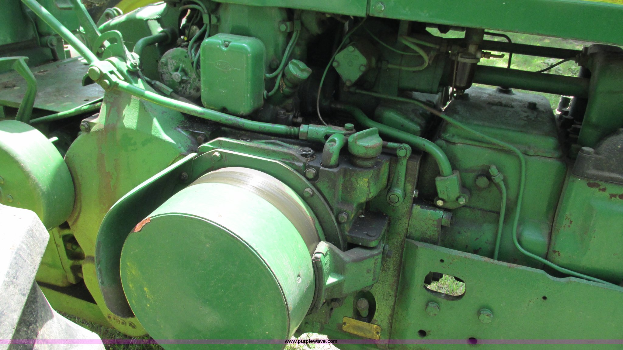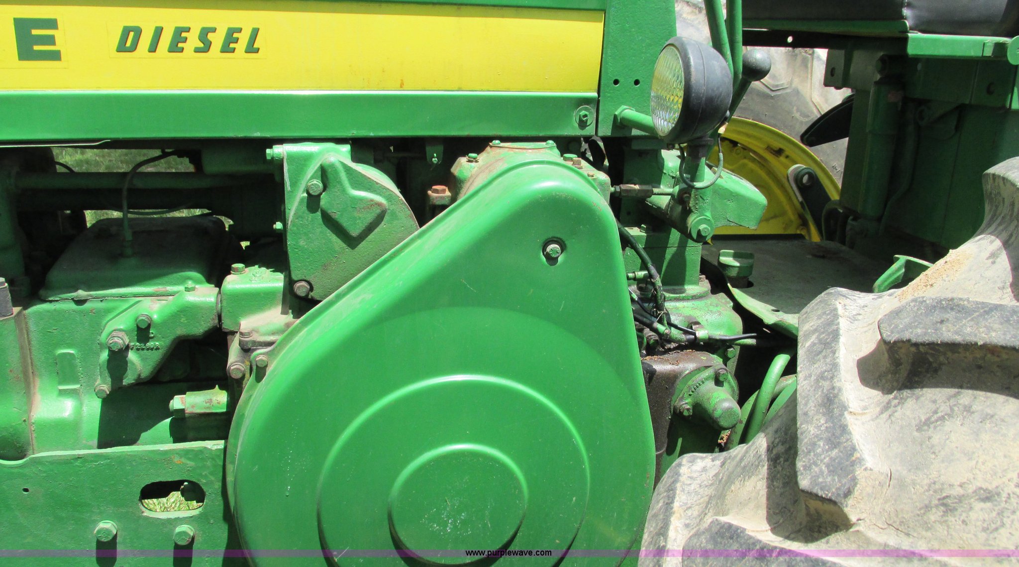 Purple Wave is selling a used Tractor in Missouri. This item is a 1957 John Deere 720 tractor with the following: 3,195 hours on meter, John Deere two cylinder diesel engine, Six speed transmission, Four cylinder gas pony engine, Power steering, Three point, 540 PTO, Live PTO, (2) work lights, Tow bar, 6.0x16 front tires, Cracked, 15.5x38 rear tires, Serial 7226986