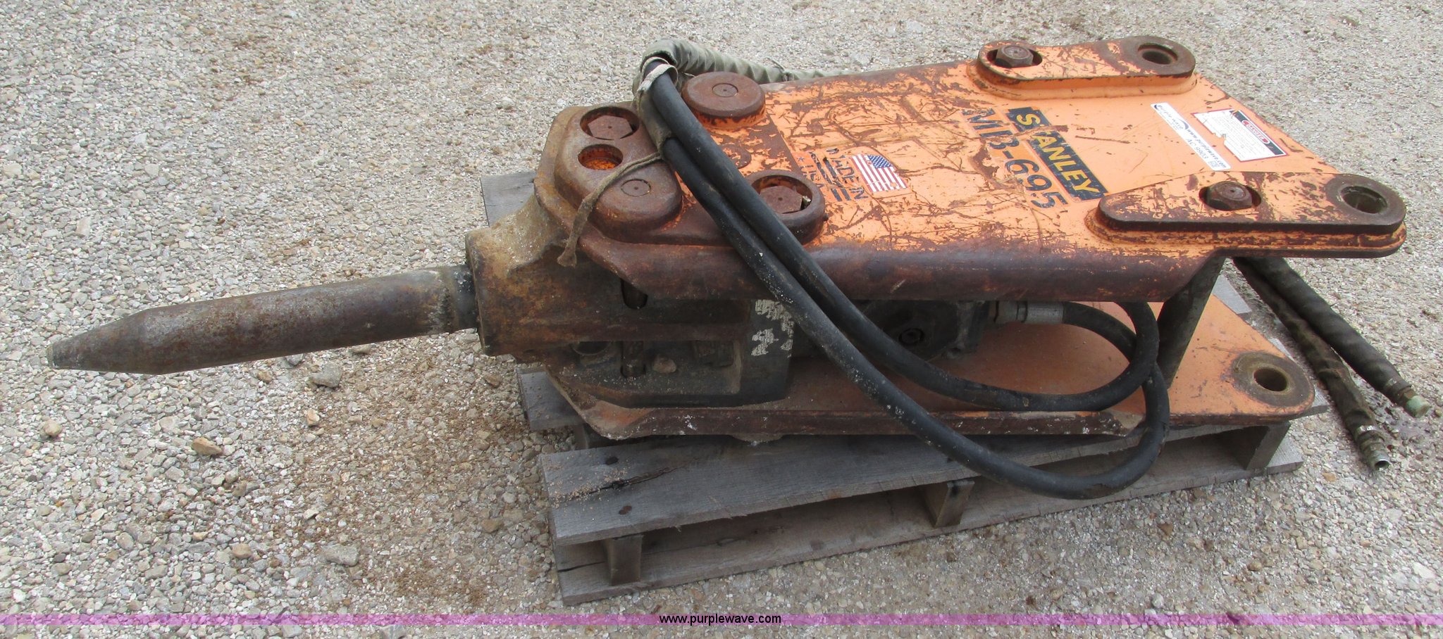 Purple Wave is selling a used Excavator Attach. in Missouri. This item is a Stanley MB695 hammer with the following: 850 psi, Approximately 14" O.C. pin holes, Approximately 2" diameter, No hydraulic quick couplers, Unknown operating condition, Serial 695548