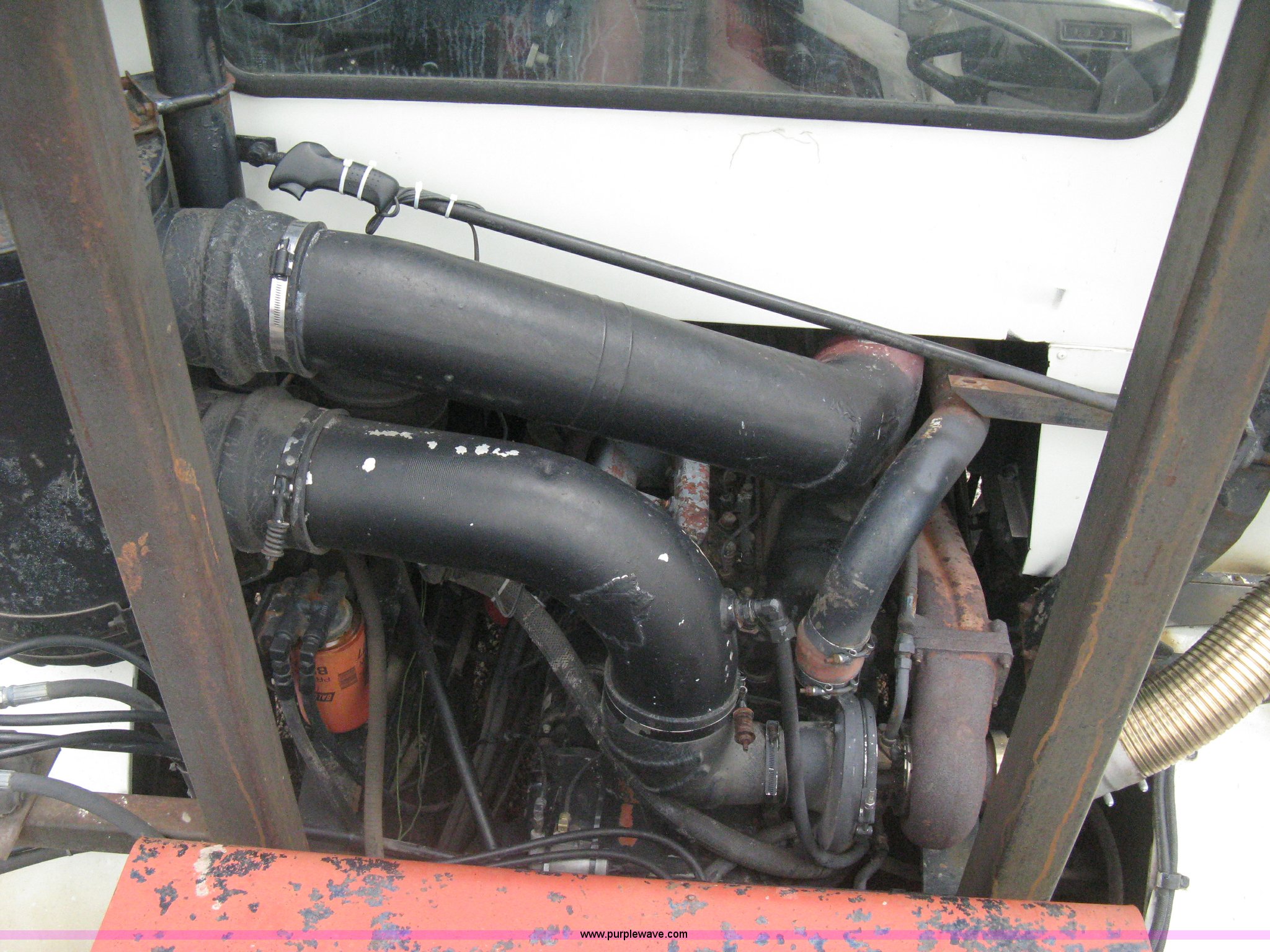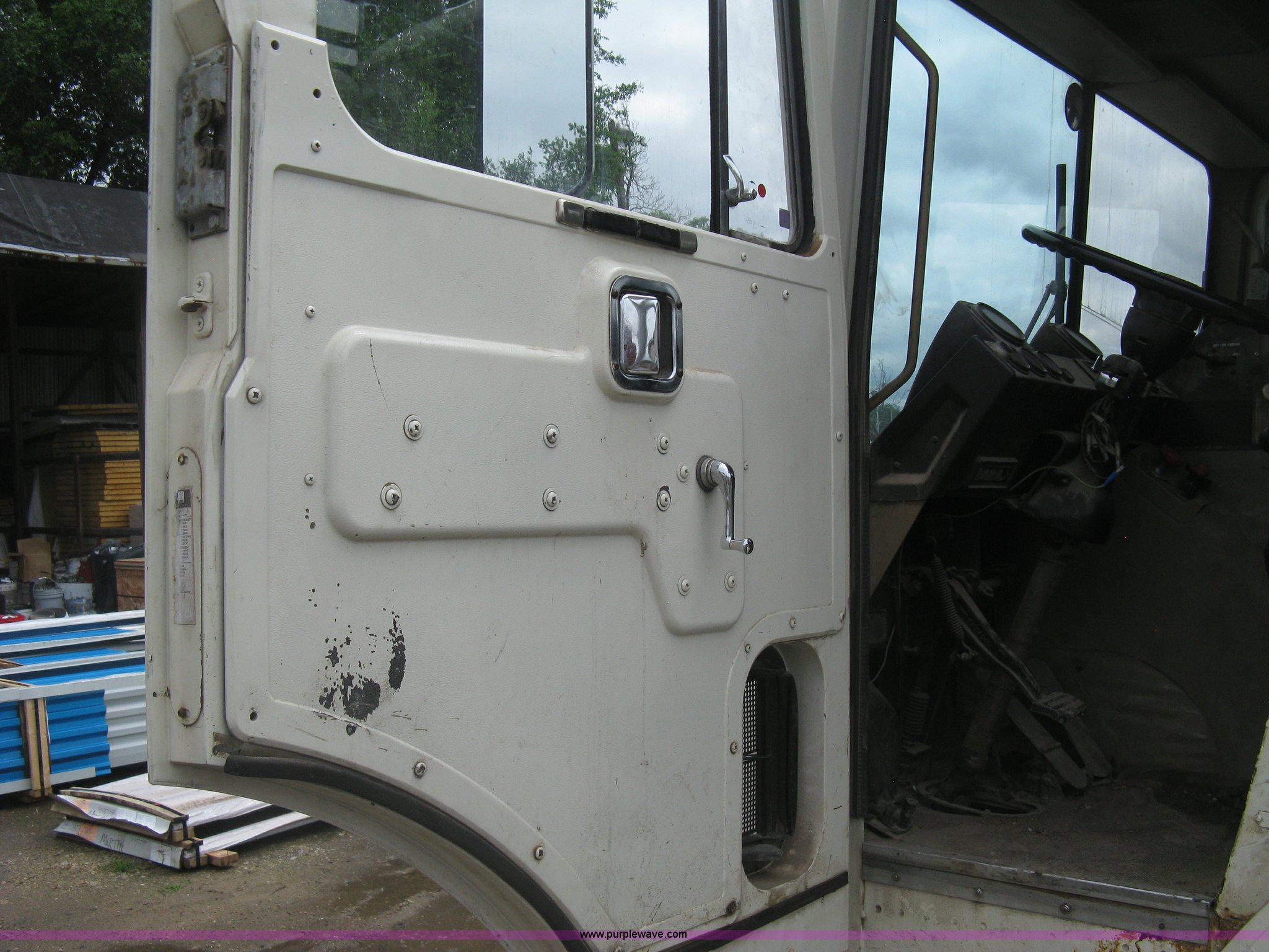 Purple Wave is selling a used Flat Bed Truck in Kansas. This item is a 1984 Mack MR686S roll-off truck with the following: 4,810 miles on odometer, Actual Mileage Unknown, Miles may vary, unit is still in use, Six cylinder diesel engine, Five speed manual transmission, Twin screw, Heat, AM/FM/cassette, Passenger daylight door, Air suspension seat, 23'L roll back bed, Twin cylinder, Auto Cover II CH hydraulic rollover tarp, Ground lever hydraulic control, Remanufactured air compressor, Installed October 2013, Air dryer, Block heater, Full steel fenders, 50 gallon fuel tank, Spring suspension, Air brakes, 190" wheelbase, Recently replaced 11R22.5 front tires, 295/75R22.5 rear tires, Two outer tires recently replaced, DOT inspection June 2013, Driver's door key lock missing, Interior cosmetic damage, Headliner damaged, Rust