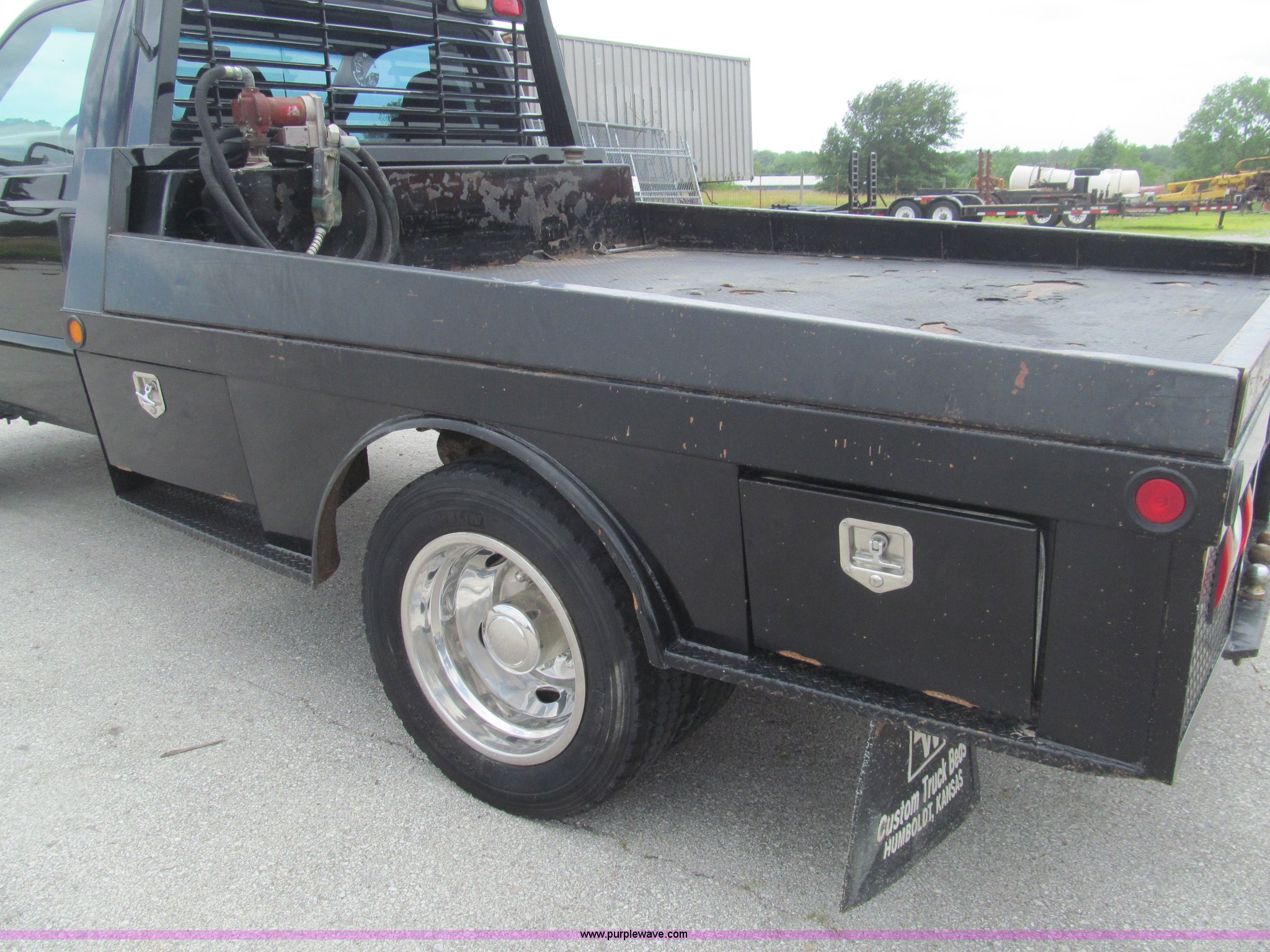 Purple Wave is selling a used Flat Bed Truck in Missouri. This item is a 1999 Ford F550 Super Duty XLT flatbed truck with the following: 213,943 actual miles, 7.3L V8 OHV 16V turbo diesel engine, Automatic transmission, AC and heat, Tilt, Cruise, AM/FM/cassette, Power windows and locks, Cloth interior, Trailer brake controller, B&W flatbed, Headache rack, Lights, (4) toolboxes, 80 gallon fuel tank, Pump and nozzle,, Ball hitch, Trailer wiring, 225/70R19.5 tires