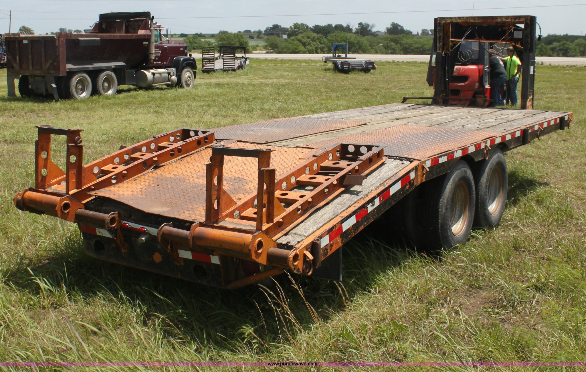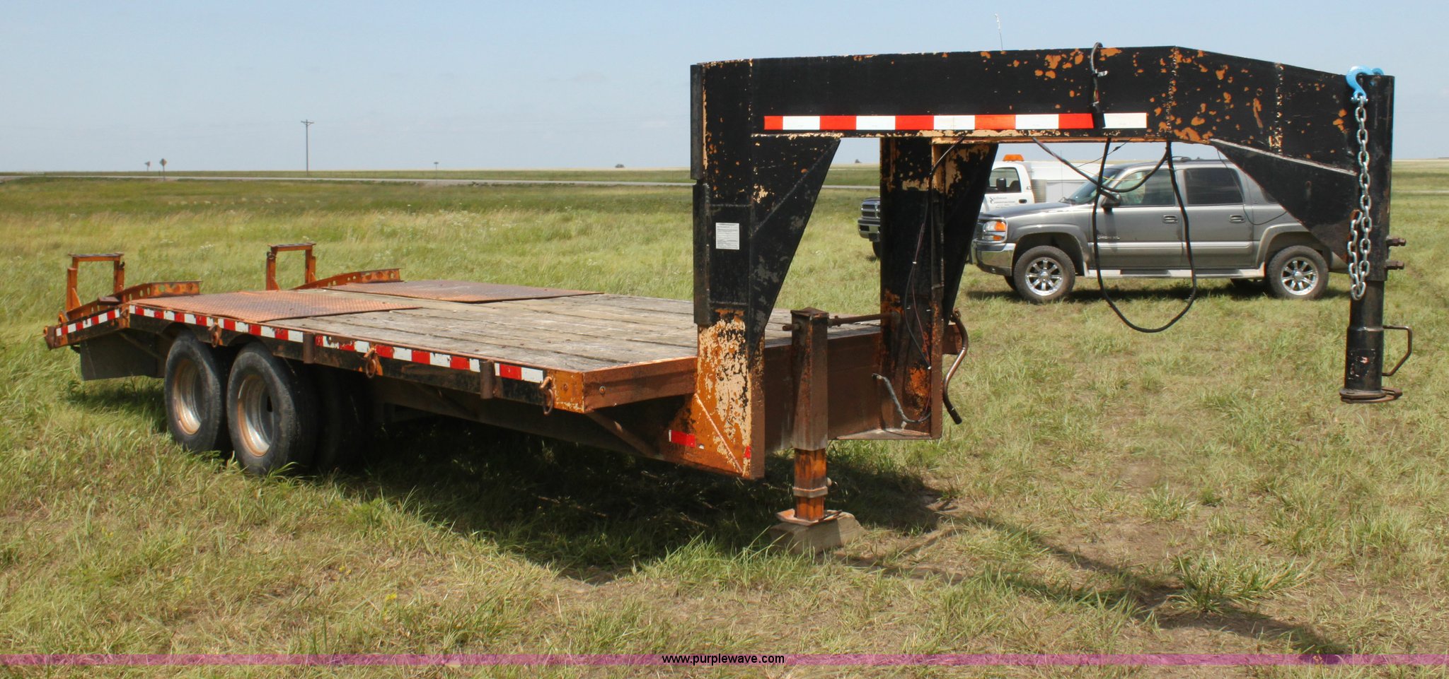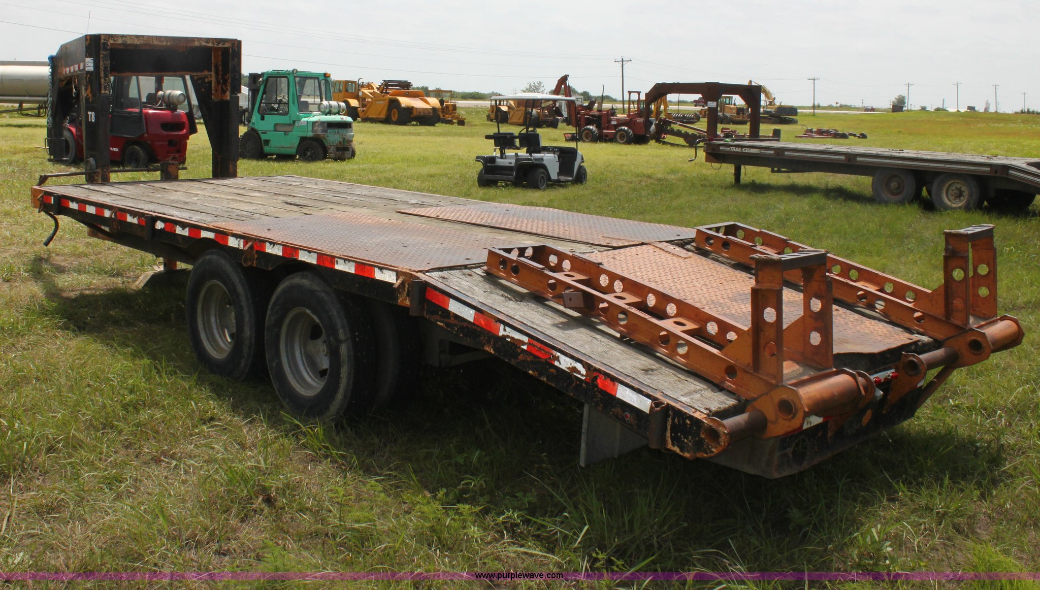 Purple Wave is selling a used Equip. Trailer in Kansas. This item is a 1980 Superior gooseneck trailer with the following: 20.5' overall length, 15'L x 95"W wood deck, 5'L dovetail, Dual folding ramps, 16" tires