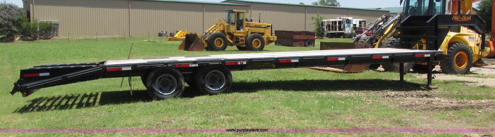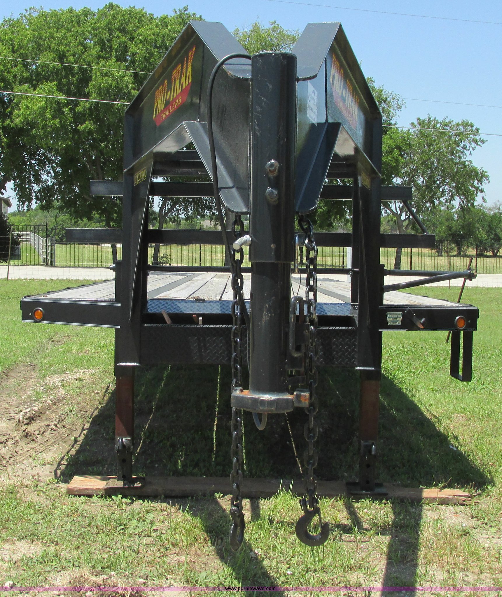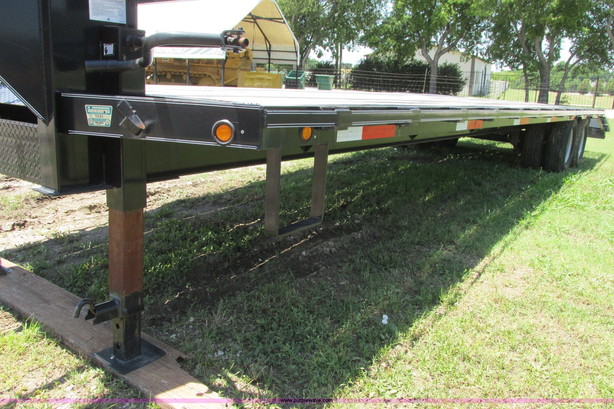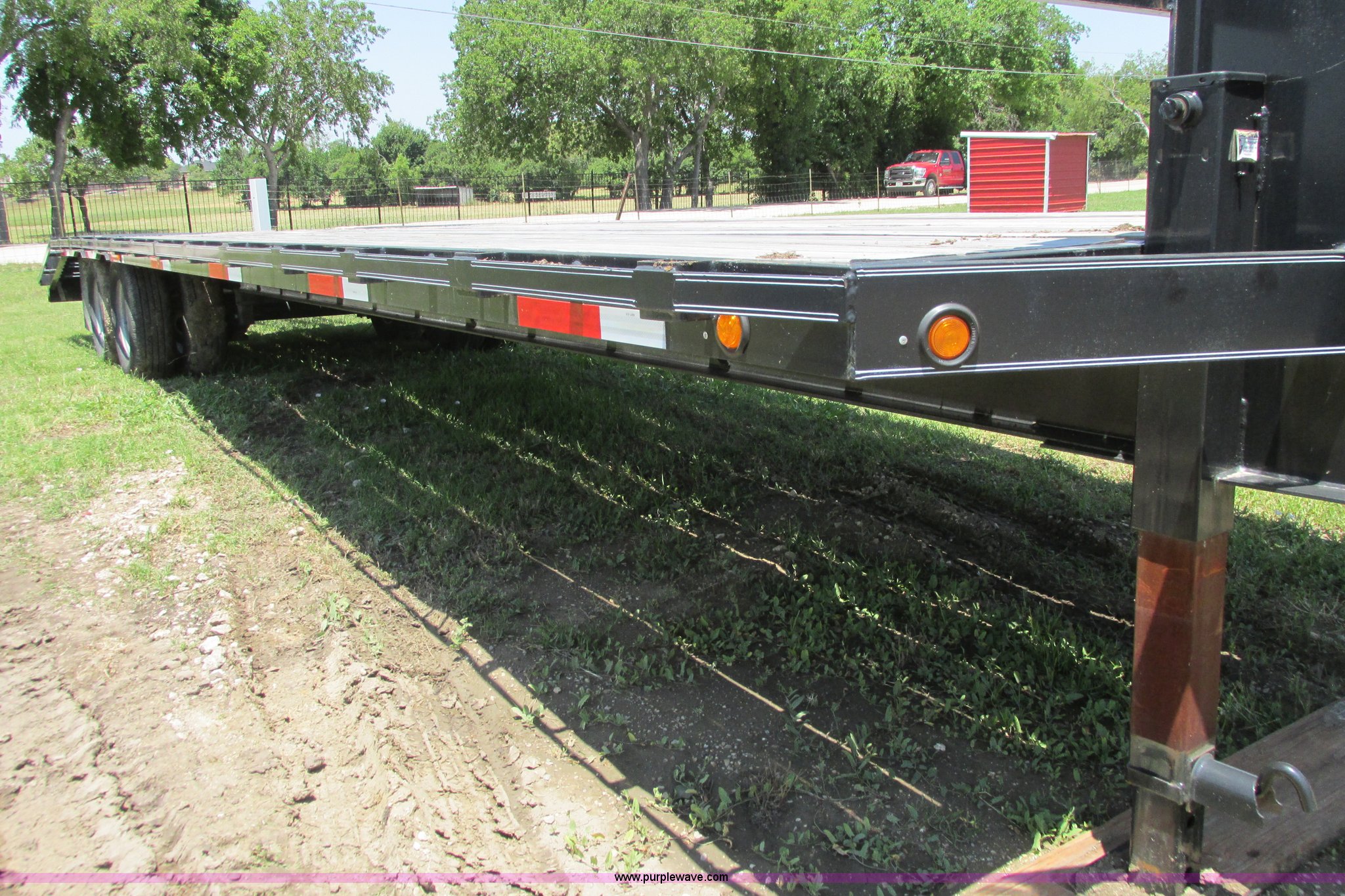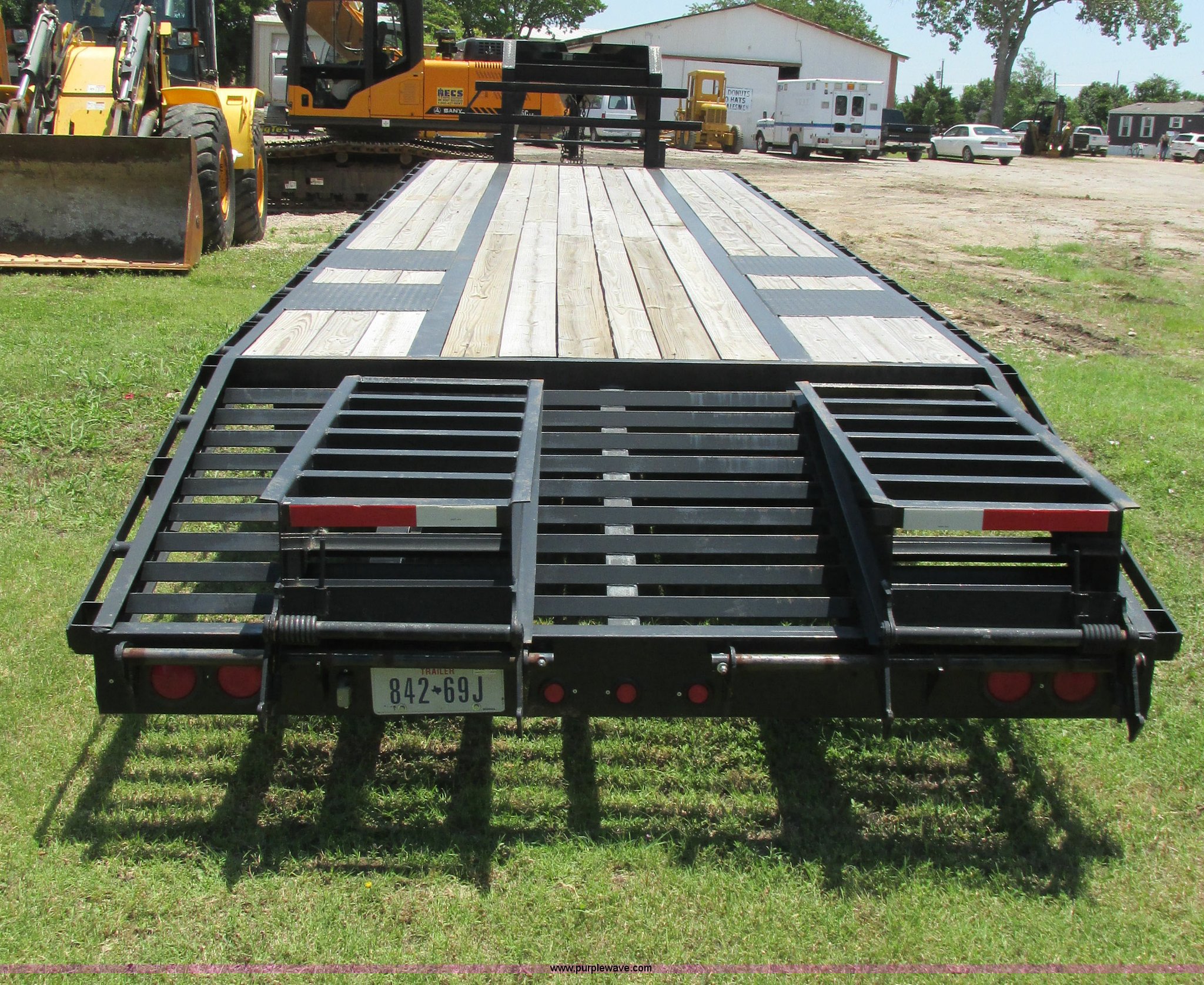 Purple Wave is selling a used Flat or Drop Deck Trailer in Texas. This item is a 2011 Pro-Trak gooseneck trailer with the following: 27'L x 8'W deck, 5'L x 8'W dovetail, 8'L neck, High tensile steel construction with flex control, 5'L x 24"W spring assisted ramps, Stake side pockets with rub rail, Locking storage box, 43"L x 24"W, Two speed dual leg landing gear, Safety brake away system, Spring suspension, Electric brakes, ST235/80R16 tires, GVWR 20,000 lbs, GAWR 10,000 lbs, Items in storage box are not included