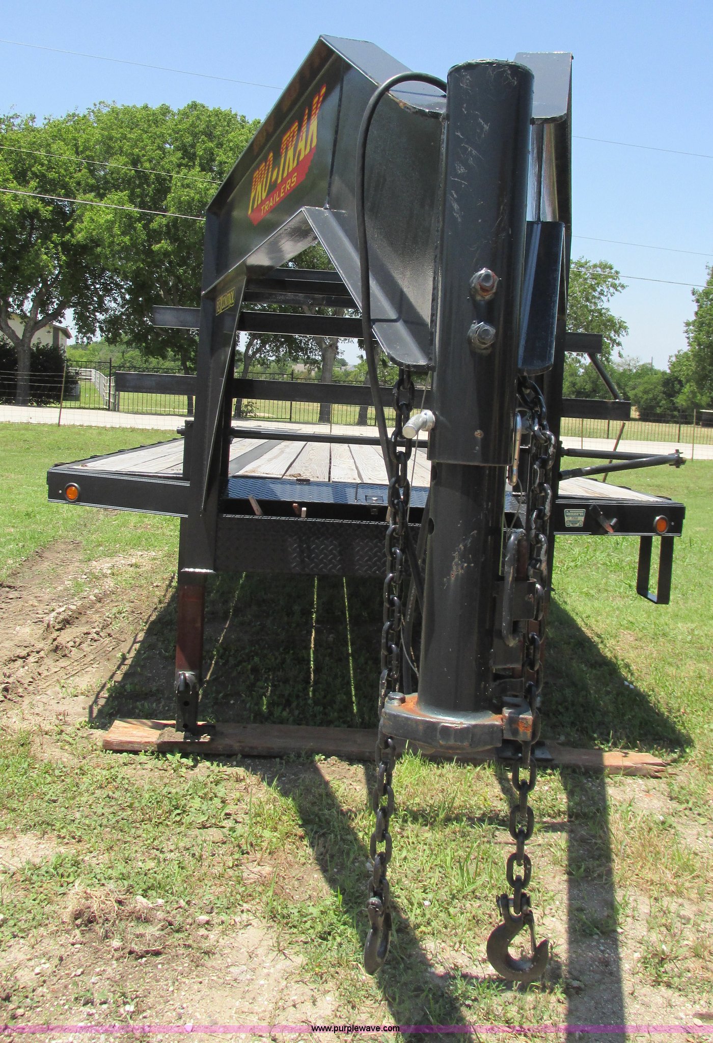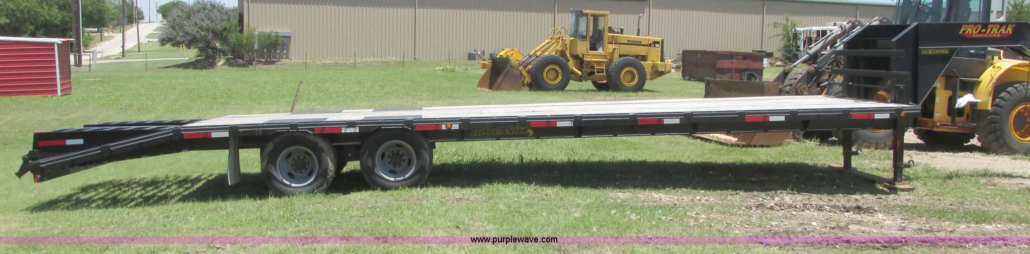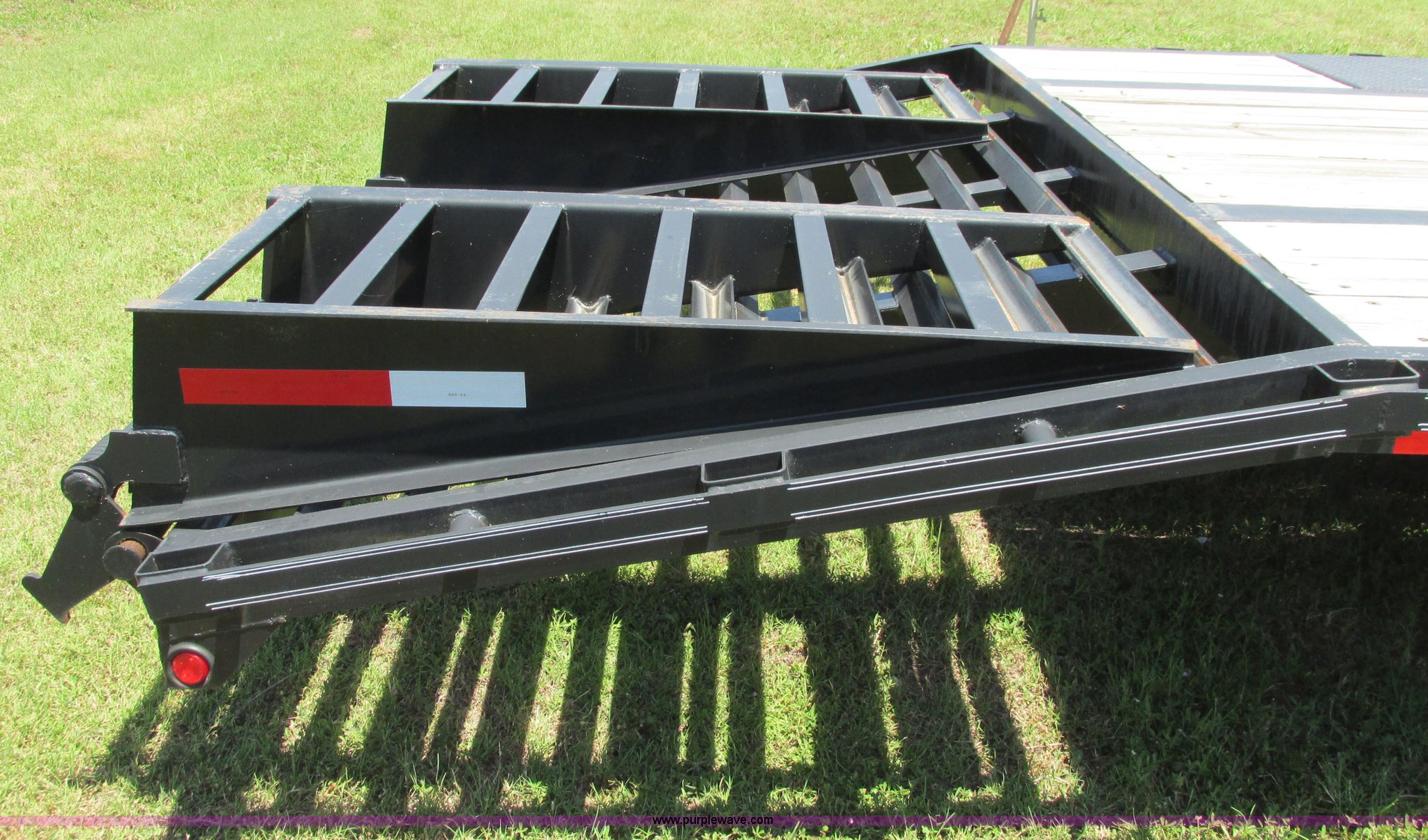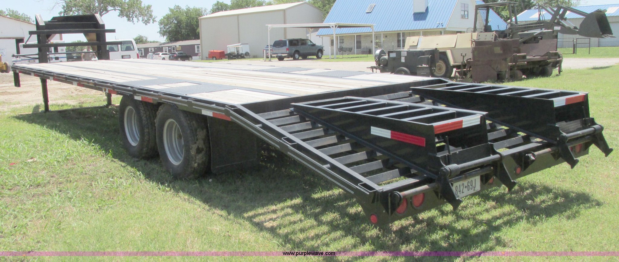 Purple Wave is selling a used Flat or Drop Deck Trailer in Texas. This item is a 2011 Pro-Trak gooseneck trailer with the following: 27'L x 8'W deck, 5'L x 8'W dovetail, 8'L neck, High tensile steel construction with flex control, 5'L x 24"W spring assisted ramps, Stake side pockets with rub rail, Locking storage box, 43"L x 24"W, Two speed dual leg landing gear, Safety brake away system, Spring suspension, Electric brakes, ST235/80R16 tires, GVWR 20,000 lbs, GAWR 10,000 lbs, Items in storage box are not included