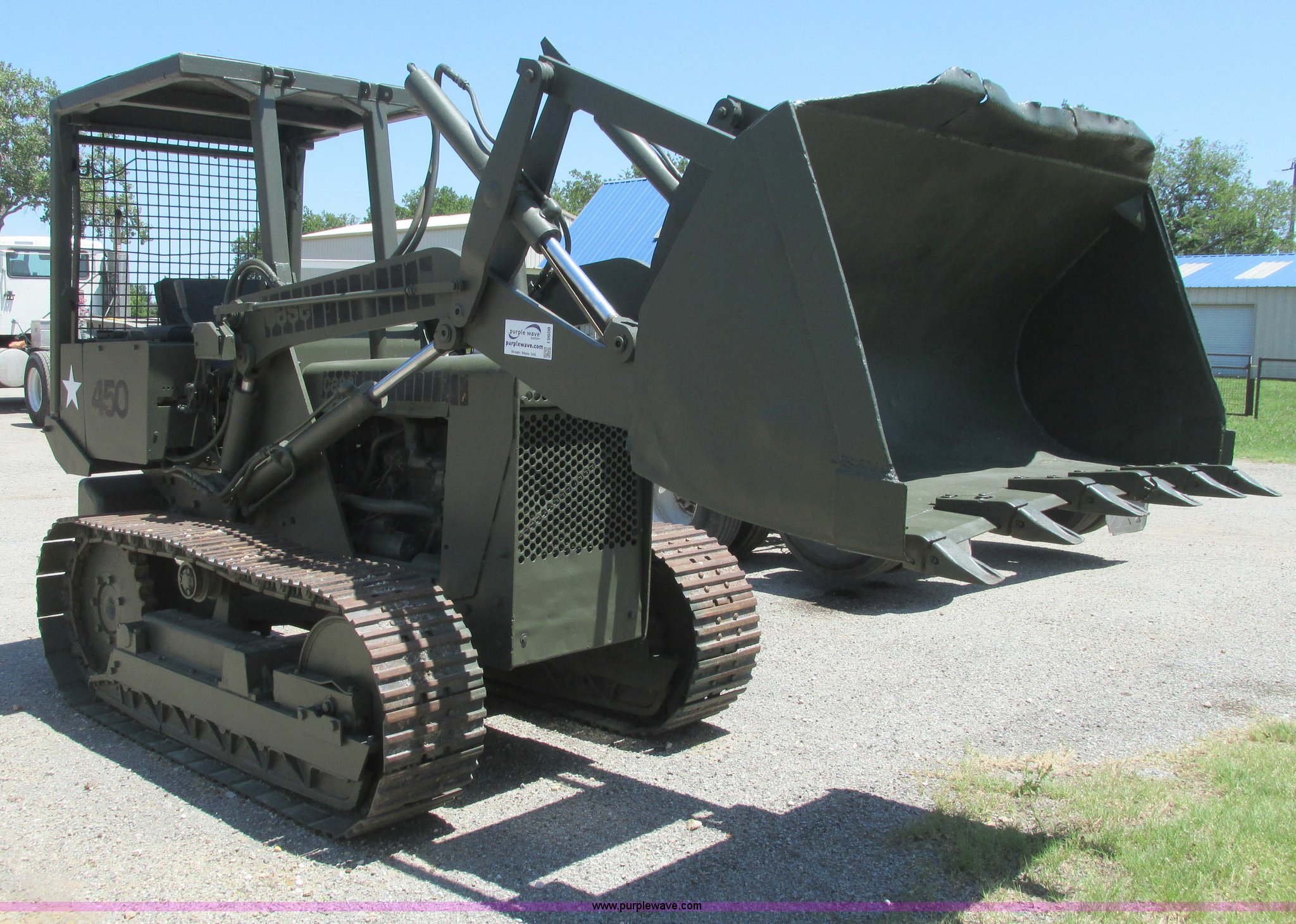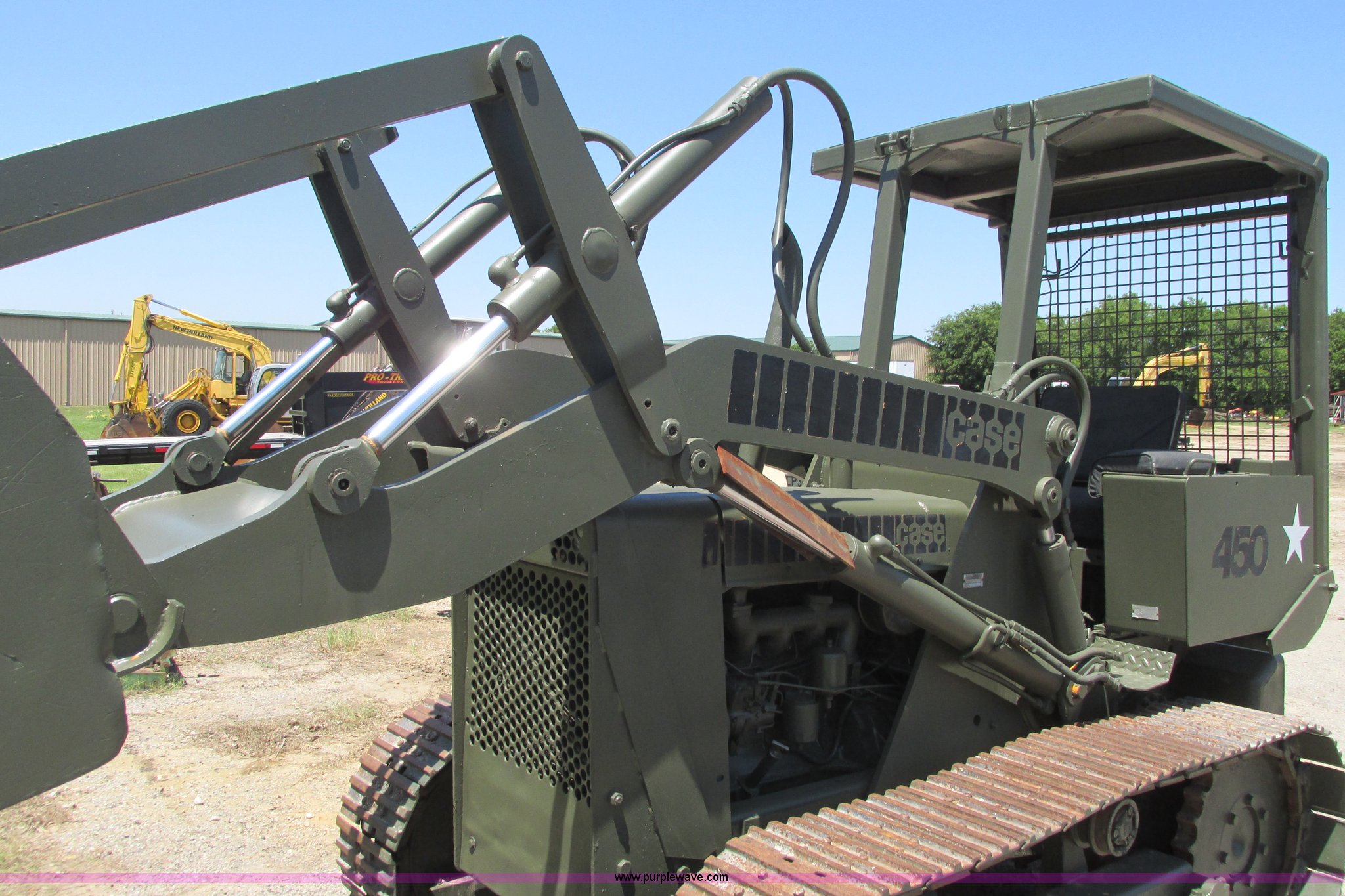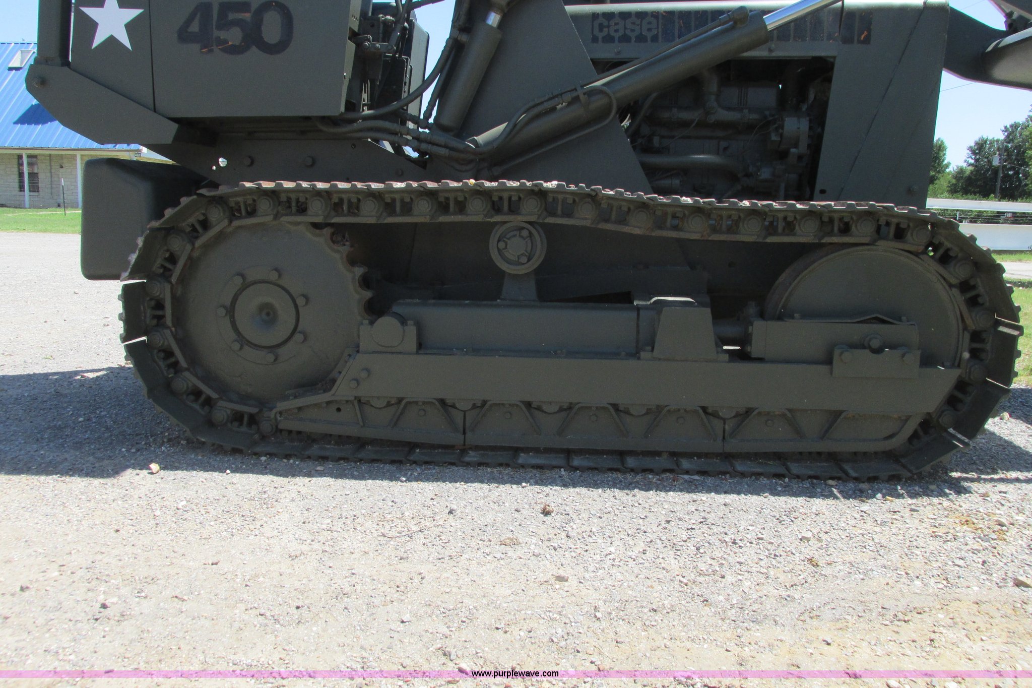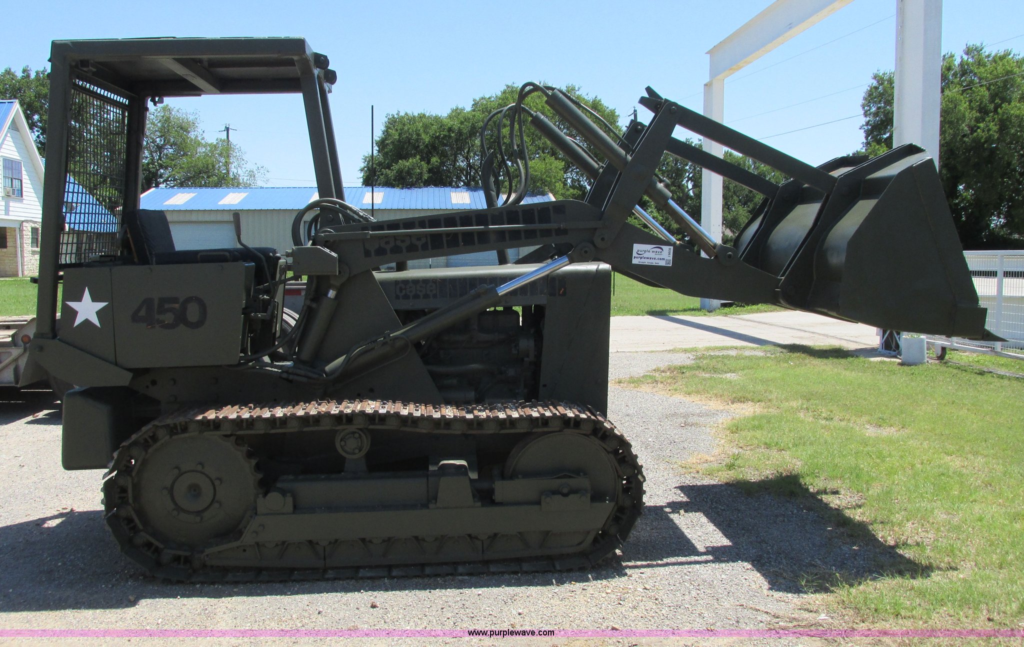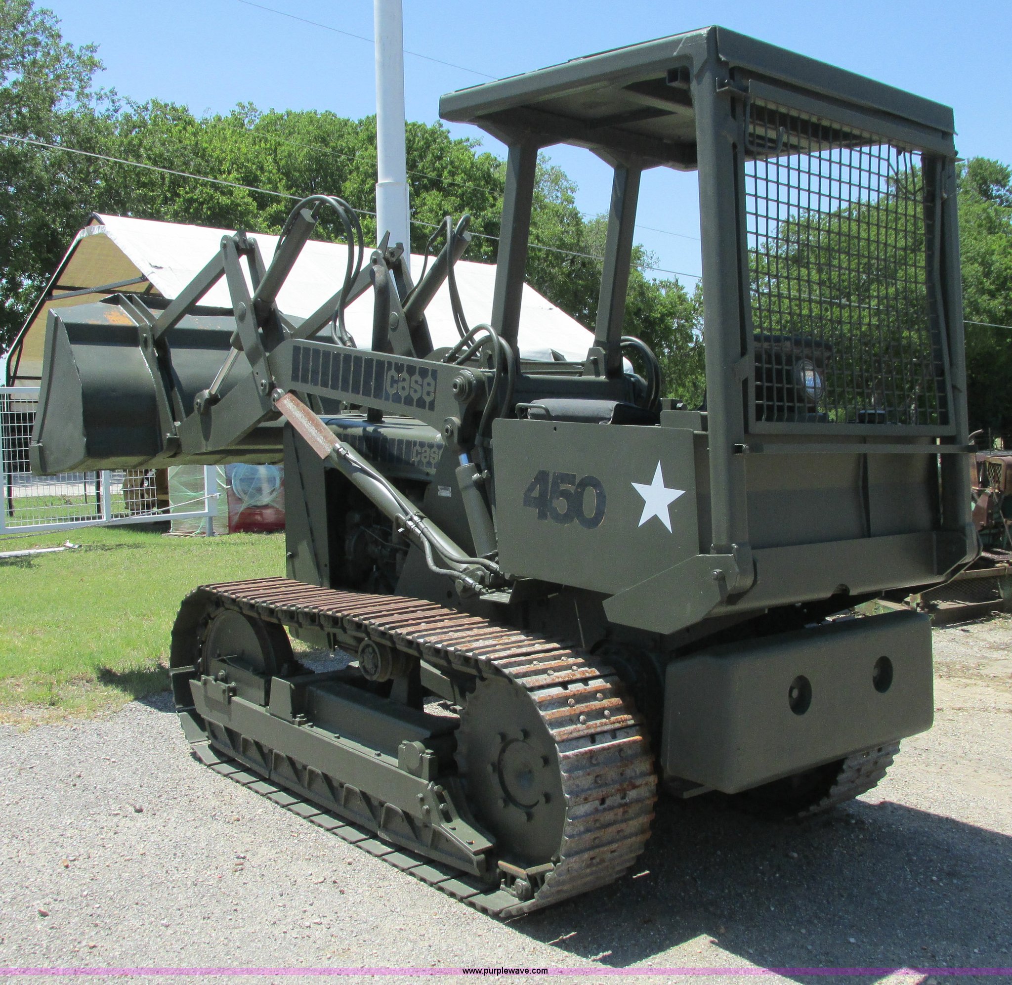Purple Wave is selling a used Crawler Loader in Texas. This item is a Case D450 track loader with the following: Case 4229178 four cylinder diesel engine, Hydrostatic transmission, 4F-4R gears, Canopy, Rear screen guards, 68"W bucket, Six bolt-on teeth, Bottom roller guards, 14"W single grouser track pads, Approximately 10,795 lbs. base operating weight, Engine is seized, Non-operational unit, Last used seven years ago, Serial 3060546