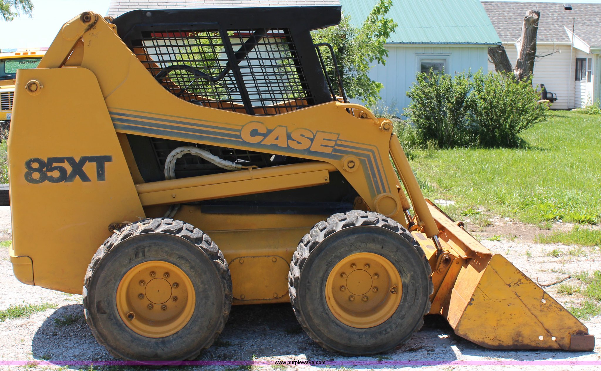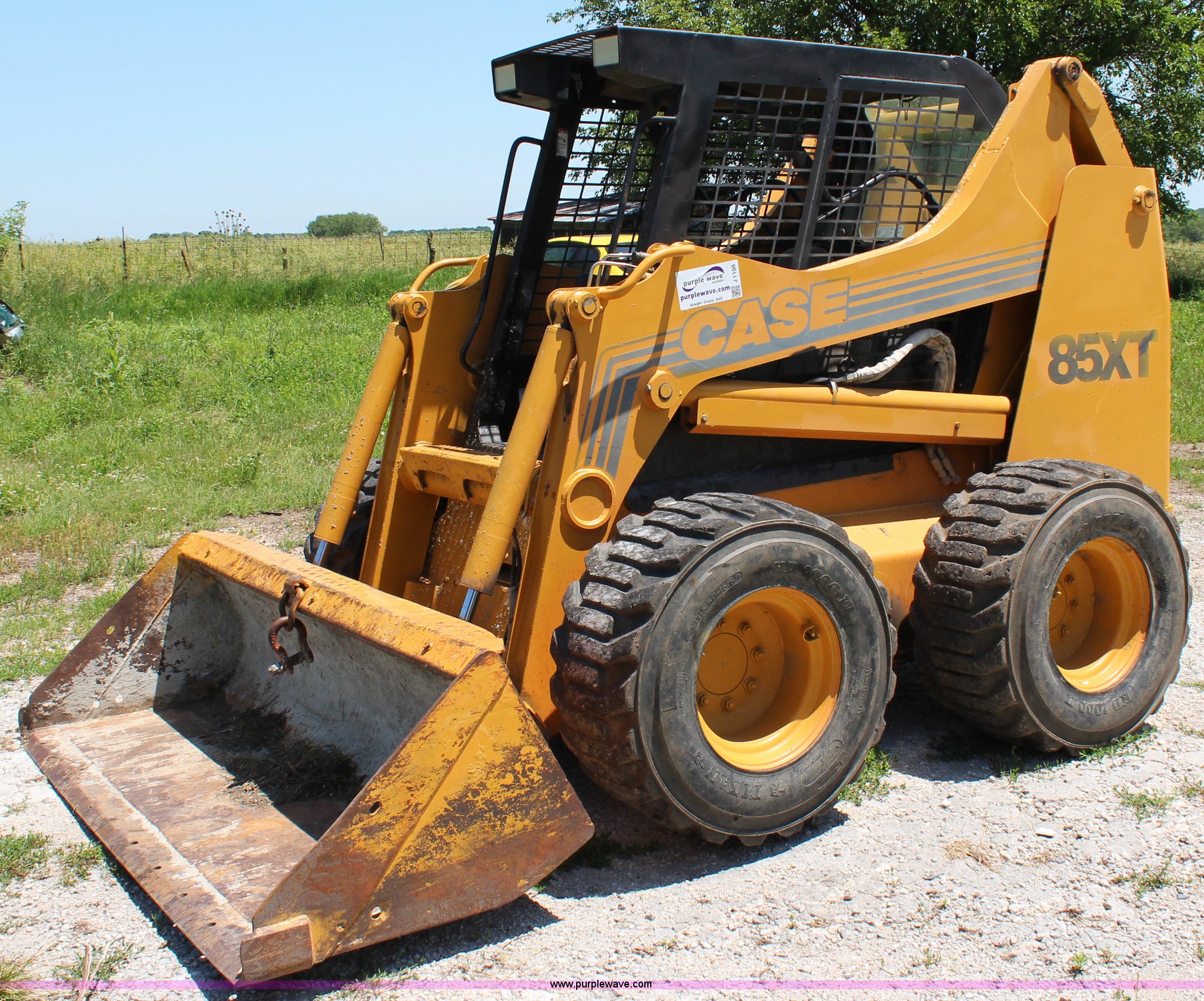 Purple Wave is selling a used Skid Steer Loader in Kansas. This item is a 1998 Case 85XT skid steer with the following: 1,814 hours on meter, Case 3.9L four cylinder diesel engine, Hydrostatic transmission, Joystick loader controls, Work lights, 82"W bucket, Hydraulic quick attach, Auxiliary hydraulics, 33 x 15.50-16.5 tires, 8,057 lbs. base operating weight, Outer air filter and cover missing, Serial JAF0256134