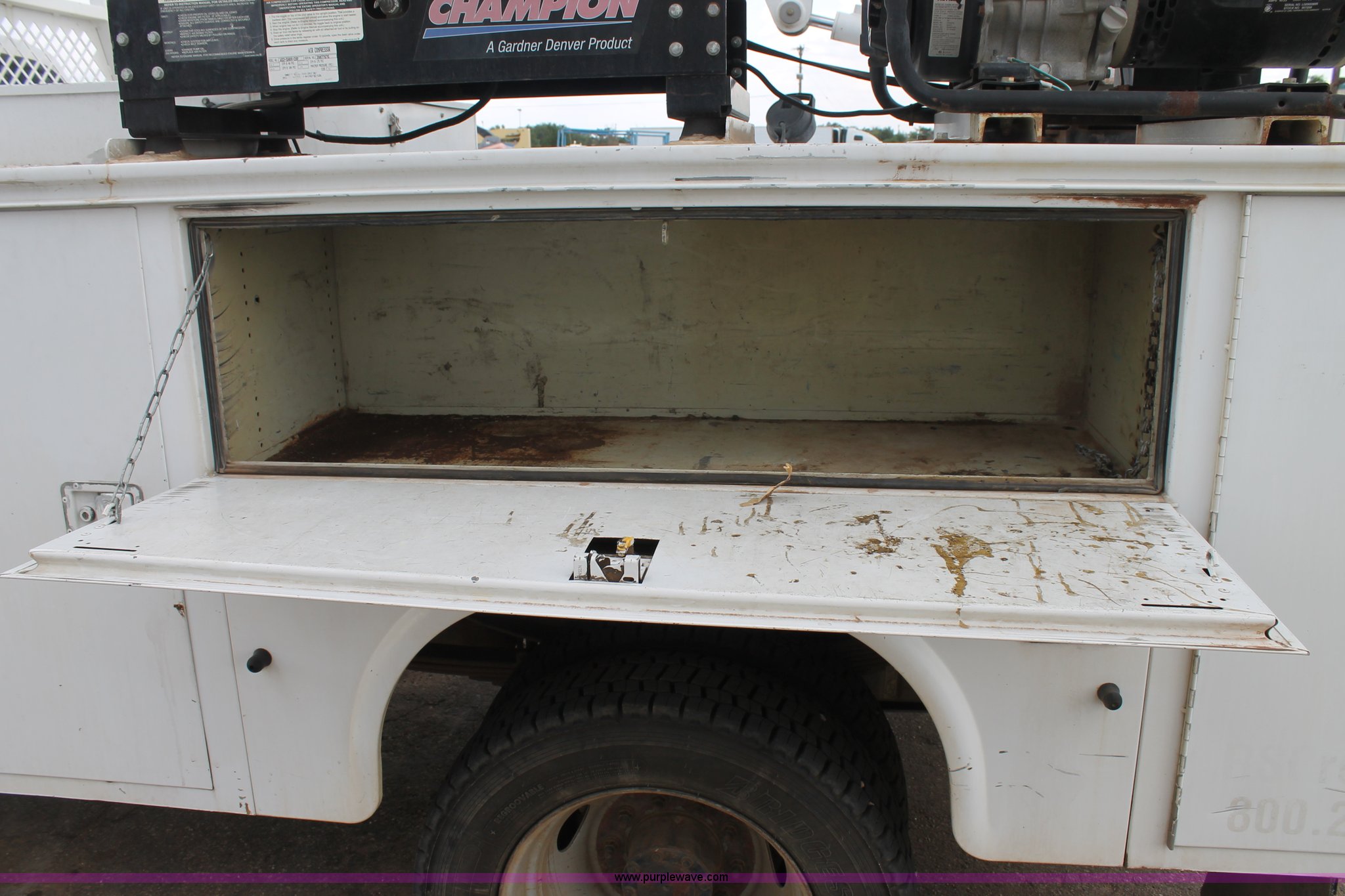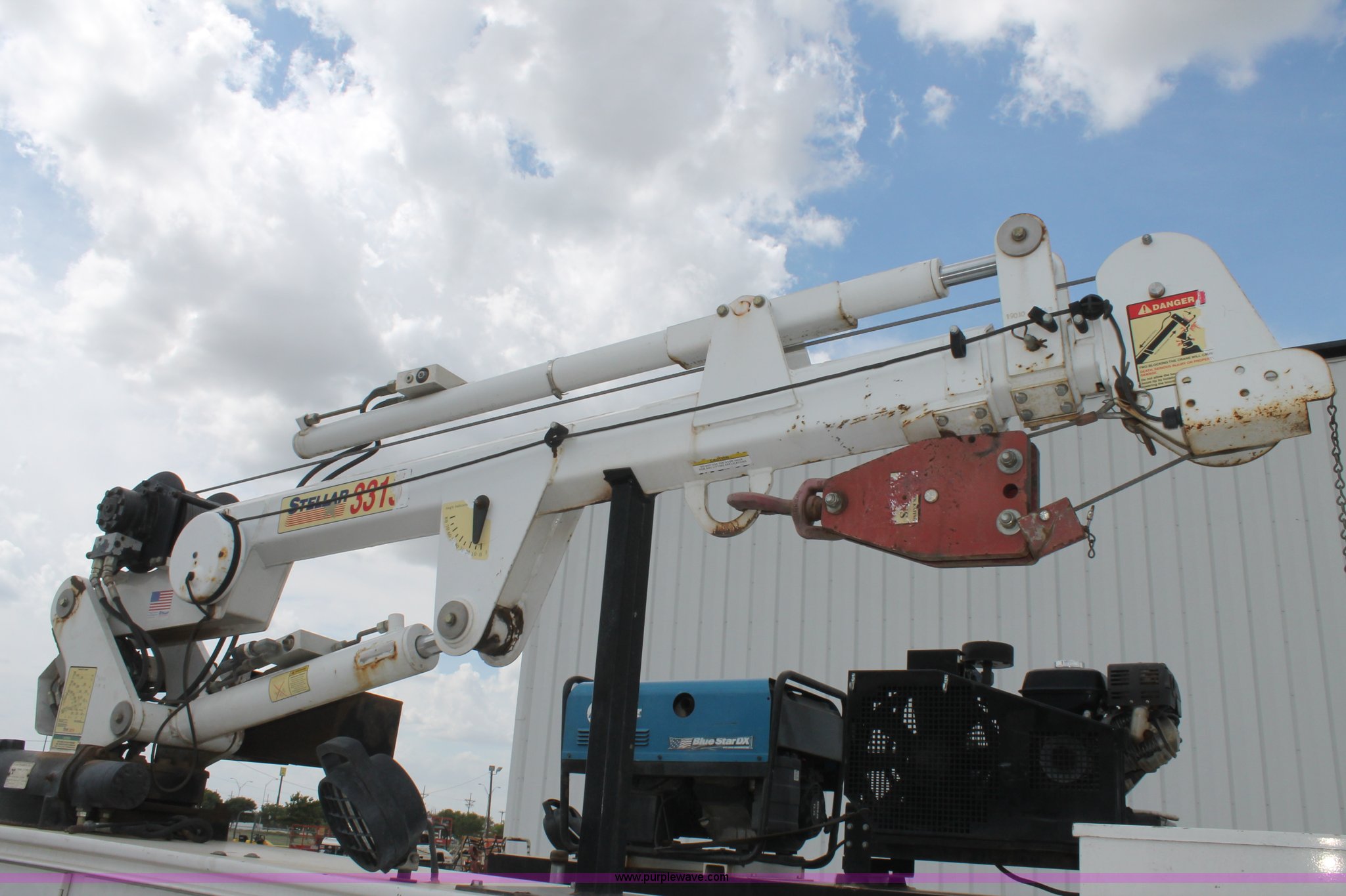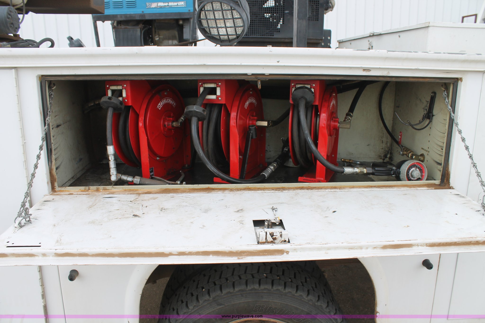 Purple Wave is selling a used Service Truck in Texas. This item is a 2006 Ford F550 service truck with crane with the following: 132,162 actual miles, 6.0L V8 OHV 32V turbo diesel engine, 325 HP, Automatic transmission, AC and heat, Tilt, Cruise, AM/FM/CD, Manual windows and locks, Vinyl interior, Rear work lights, Vise, Utility bed, (8) storage compartments, Six drawer toolbox, (3) oil hose reels, Air hose reel, Miller BlueStar 185 welder, 54 hours on meter, Kohler 12.75 HP engine, Electric start, Leads, Champion AS2-SH09-CHP air compressor, Honda GX270 engine, Electric start, Serial 20077676, 2006 Stellar 3315 crane, Extends to 16'9", 3,200 lbs capacity,, Amber strobe light, Receiver hitch, Trailer wiring, 225/70R19.5 tires, GVWR 19,000 lbs, FAWR 6,000 lbs, RAWR 13,660 lbs, EIN 631271RA