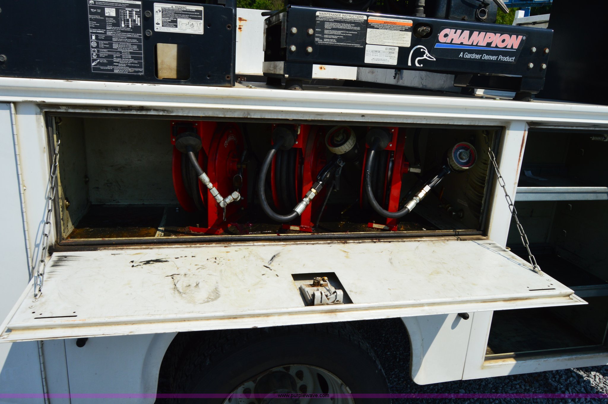 Purple Wave is selling a used Service Truck in Alabama. This item is a 2008 Ford F550 service truck with the following: 203,161 miles on odometer, 6.4L V8 OHV 32V turbo diesel engine, Automatic transmission, AC and heat, Tilt, Cruise, AM/FM/CD, Manual windows and locks, Vinyl interior, Front tow hooks, Trailer brake controller, Miller Bobcat 225 welder/generator, Kohler two cylinder gas engine, 120/240V outlets, 10,000 watt generator, Champion AS2-SH09-CHP air compressor, Honda GX2770 single cylinder gas engine, 175 max psi, Serial 20078238, Receiver hitch, Trailer wiring, 225/70R19.5 tires, Recently repaired ground wire, Recently replaced diode, Interior/exterior cosmetic damage, EIN 739174RA