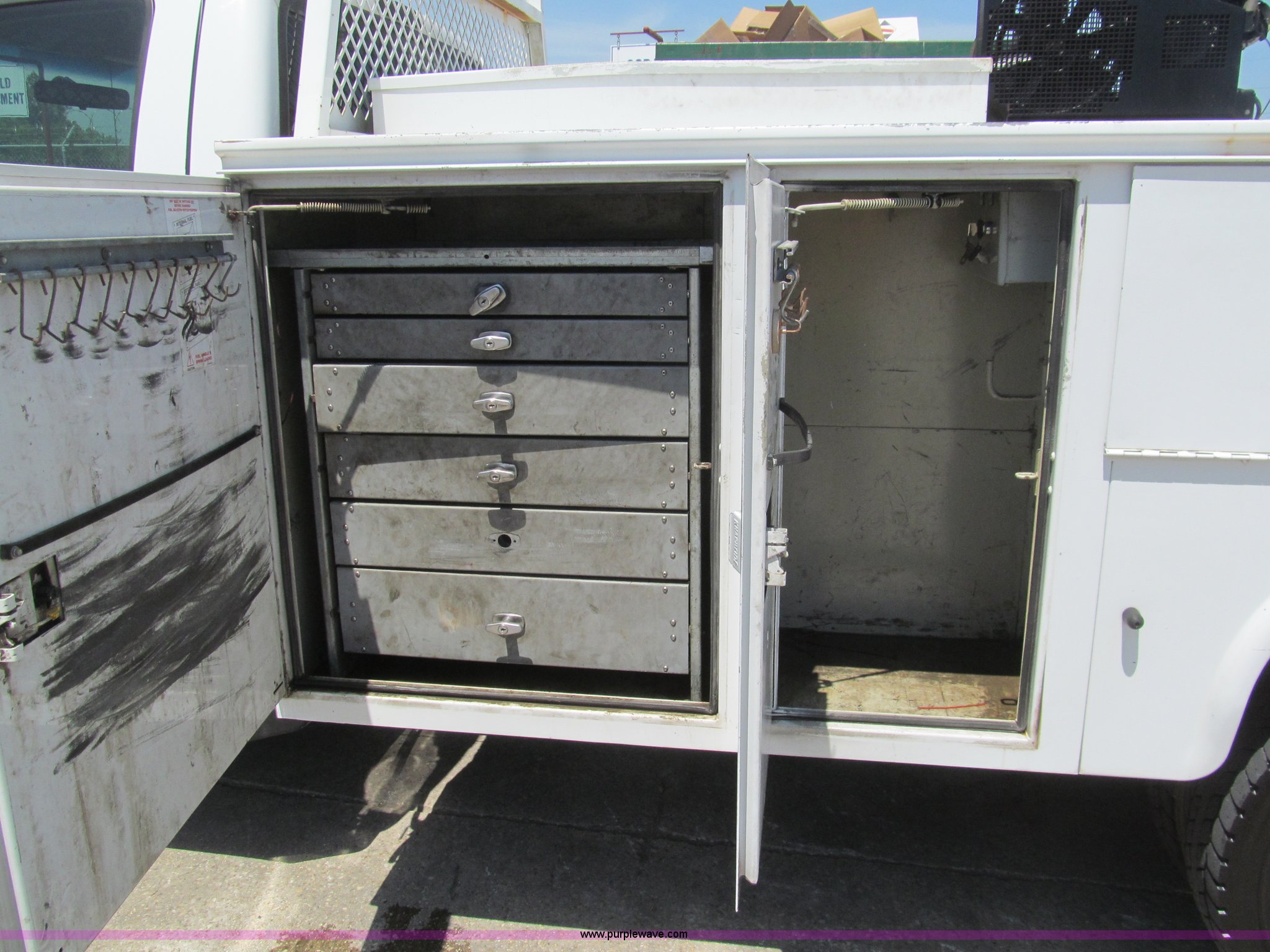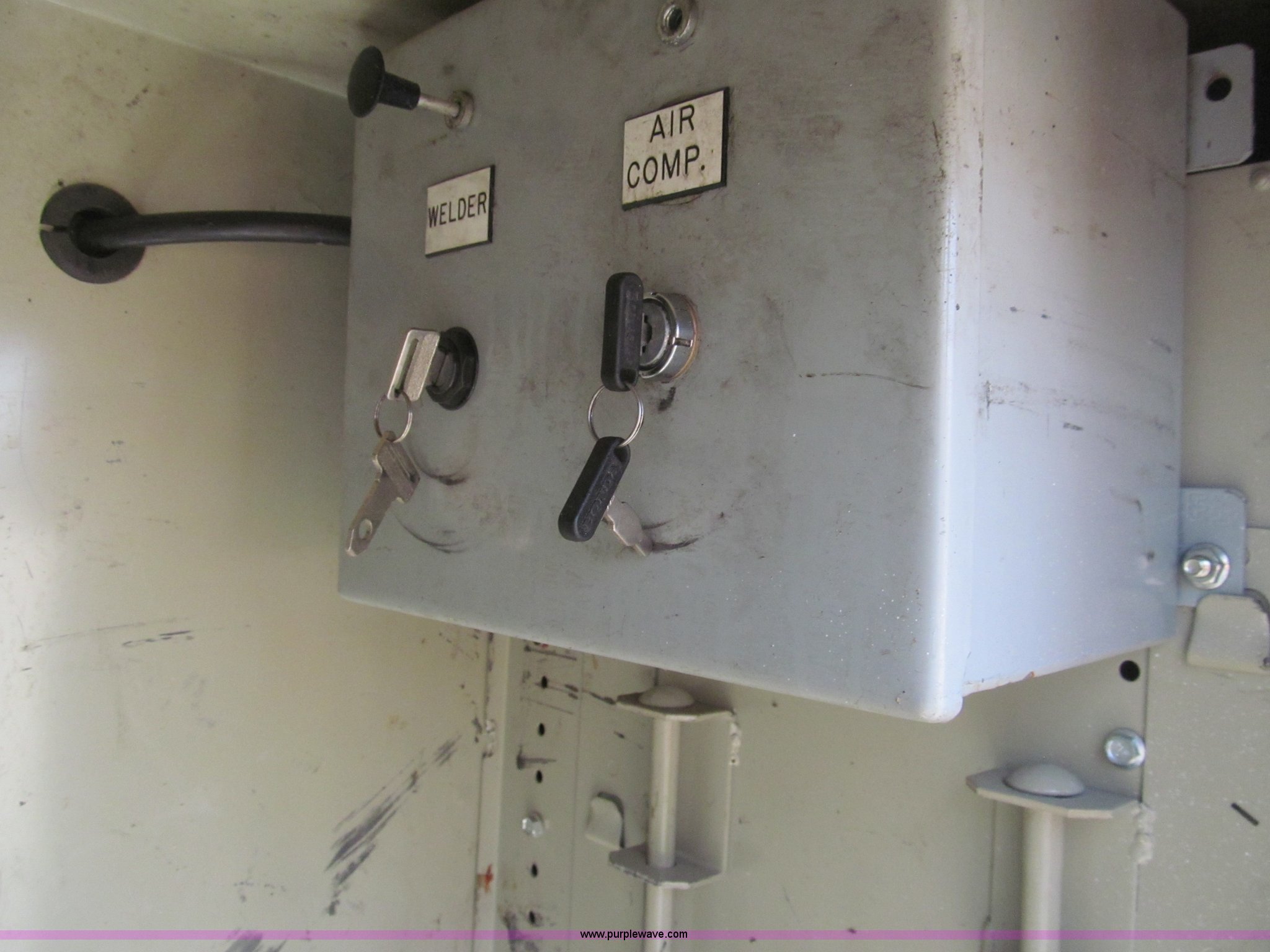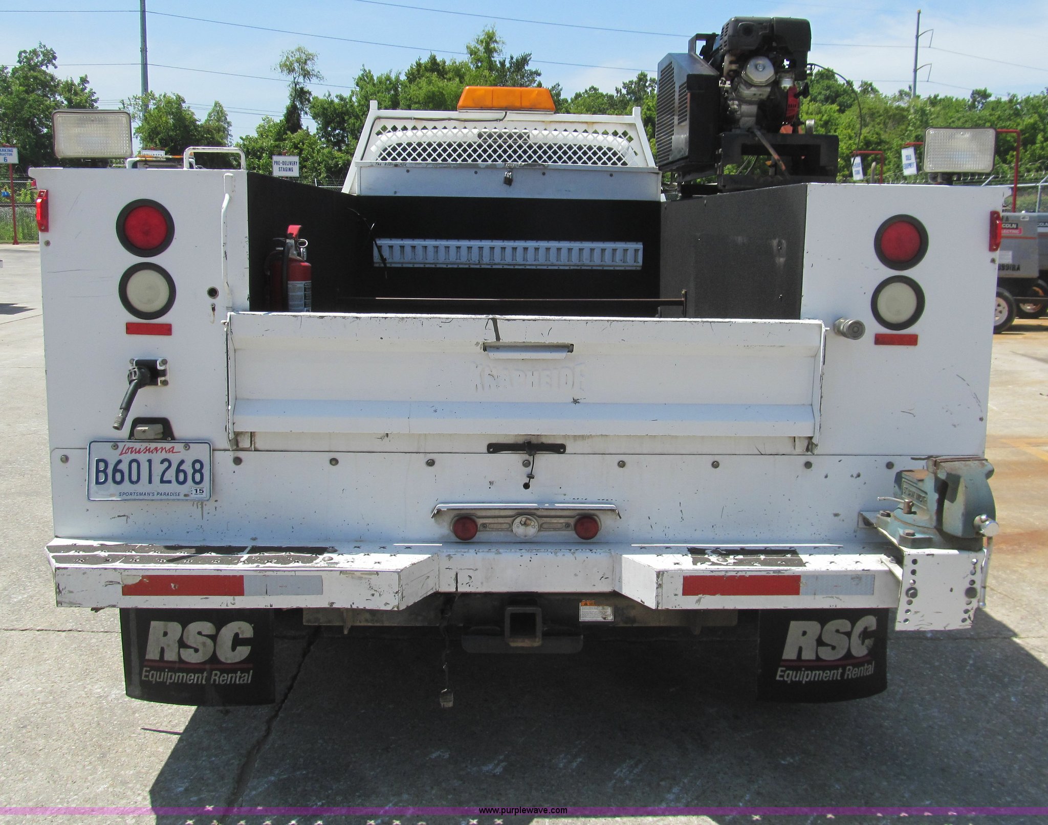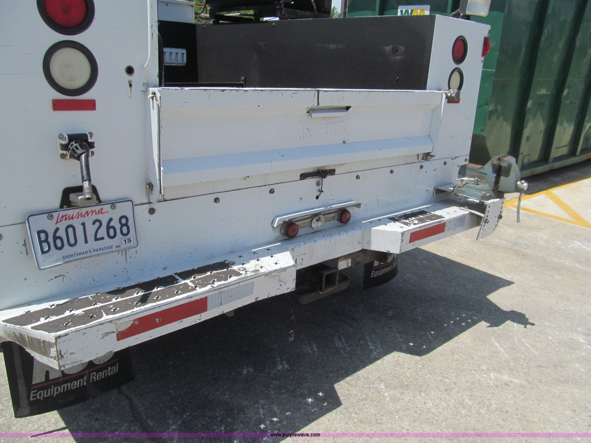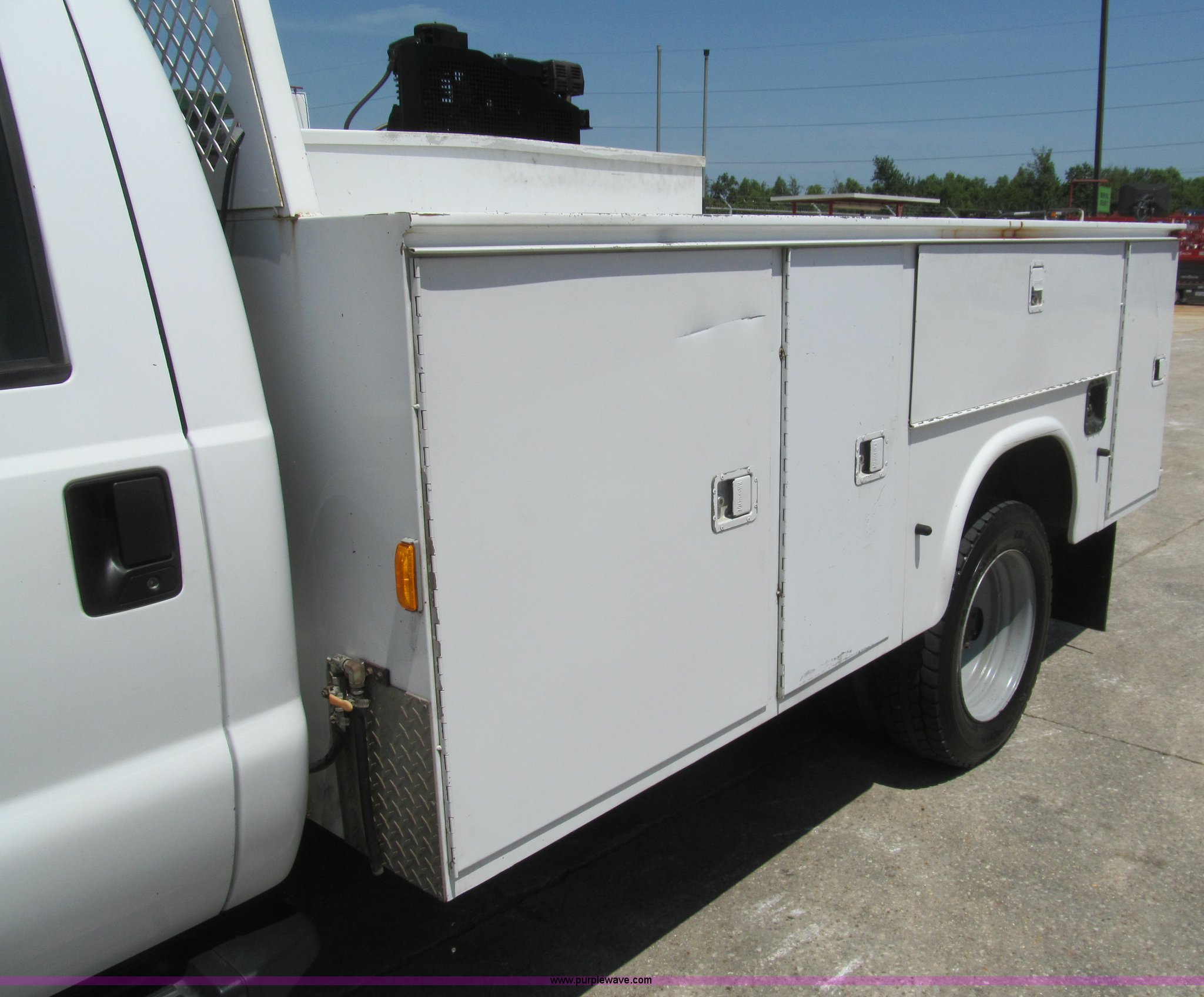 Purple Wave is selling a used Service Truck in Louisiana. This item is a 2007 Ford F550 Super Duty XL service truck with the following: 177,519 actual miles, 6.0L V8 OHV 32V turbo diesel engine, Automatic transmission, AC and heat, Tilt, Cruise, Pioneer AM/FM/CD, Manual windows and locks, Vinyl interior, Auxiliary switches, Jotto desk stand, Knapheide 11' utility bed, (8) storage compartments, American Eagle tool case, 5" vice, Champion air compressor, Honda gas engine, Reel, hose, and nozzle assembly, 175 psi, Graco oil system, Motor, hydraulic, and grease reservoirs, Reelcraft reel, hose, and nozzle assembly, Graco Mini-Fireball pumps,, Front tow hooks, Front auxiliary power outlet, Receiver hitch, Trailer wiring, 225/70R19.5 tires, EIN 667031RA