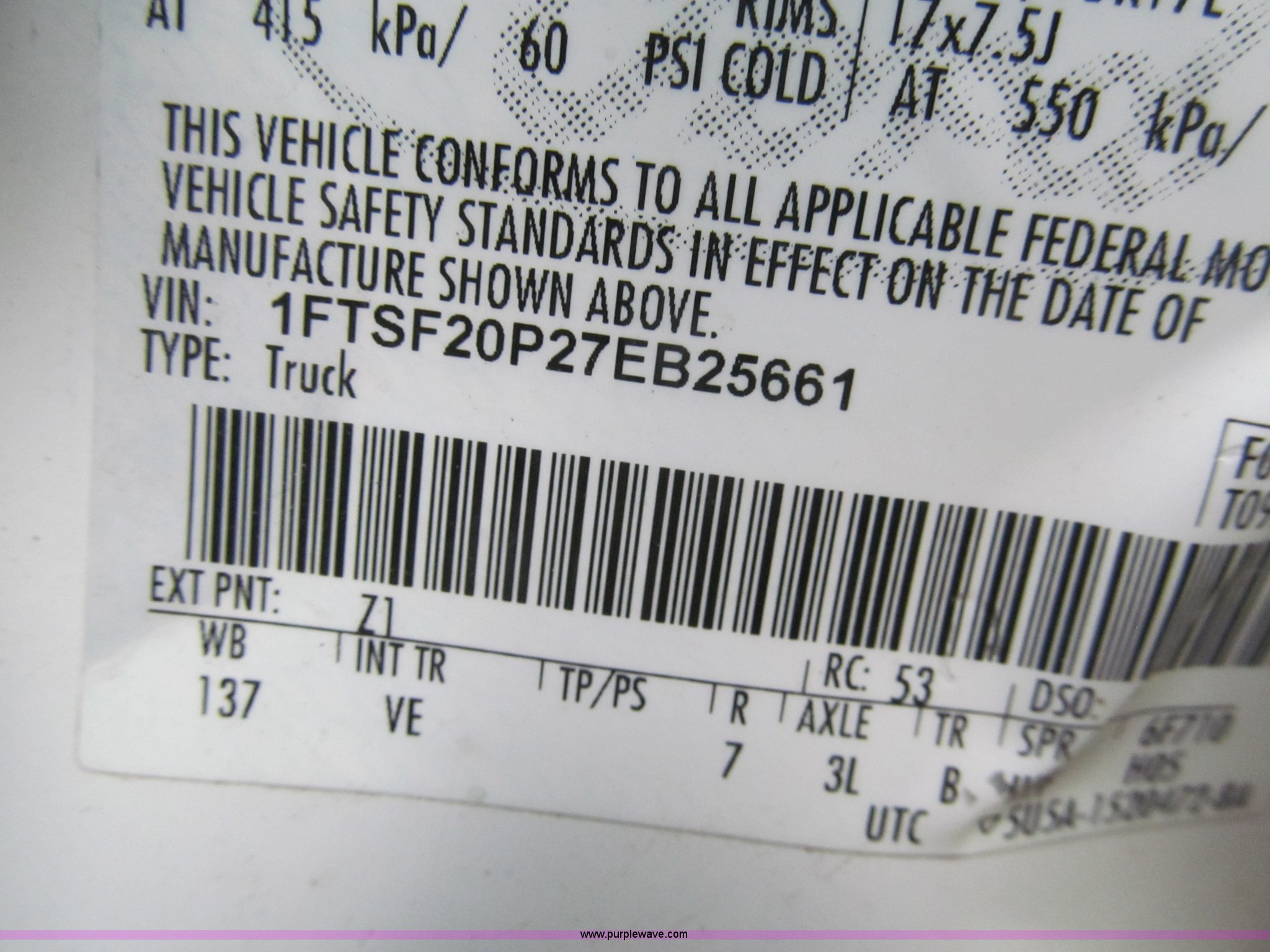Purple Wave is selling a used 3/4 or 1 Ton Pickup or Van in Texas. This item is a 2007 Ford F250 Super Duty XL pickup truck with the following: 69,716 miles on odometer, 6.0L V8 OHV 32V turbo diesel engine, Automatic transmission, AC and heat, Tilt, Cruise, AM/FM, Manual windows and locks, Auxiliary switches, Vinyl interior, Front tow hooks, Headache rack, Tommy Gate hydraulic lift, Model PUW60-1040S38TP4, Serial 004Z0963M, Receiver hitch, Trailer wiring, LT245/75R17 tires, Unit# 670257RA