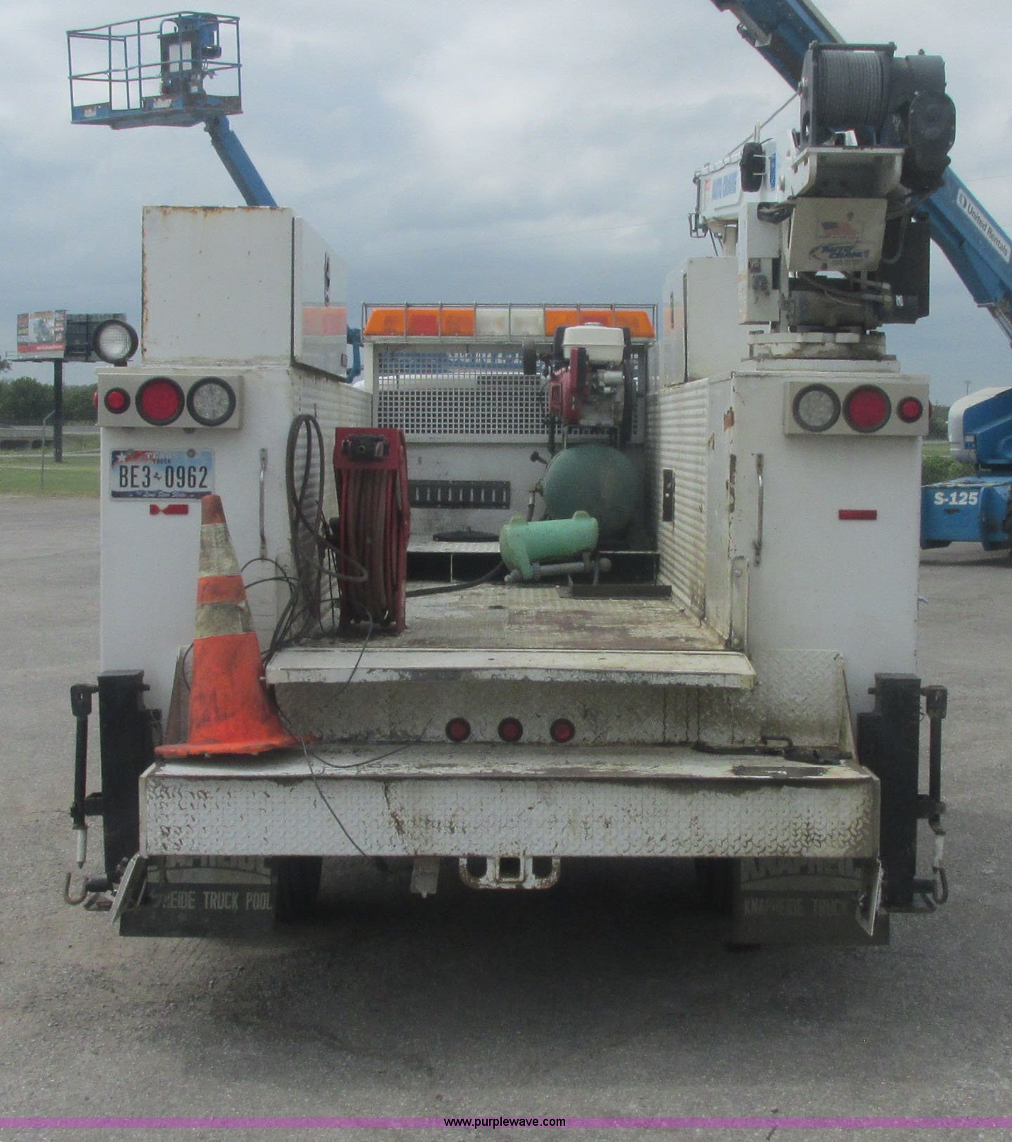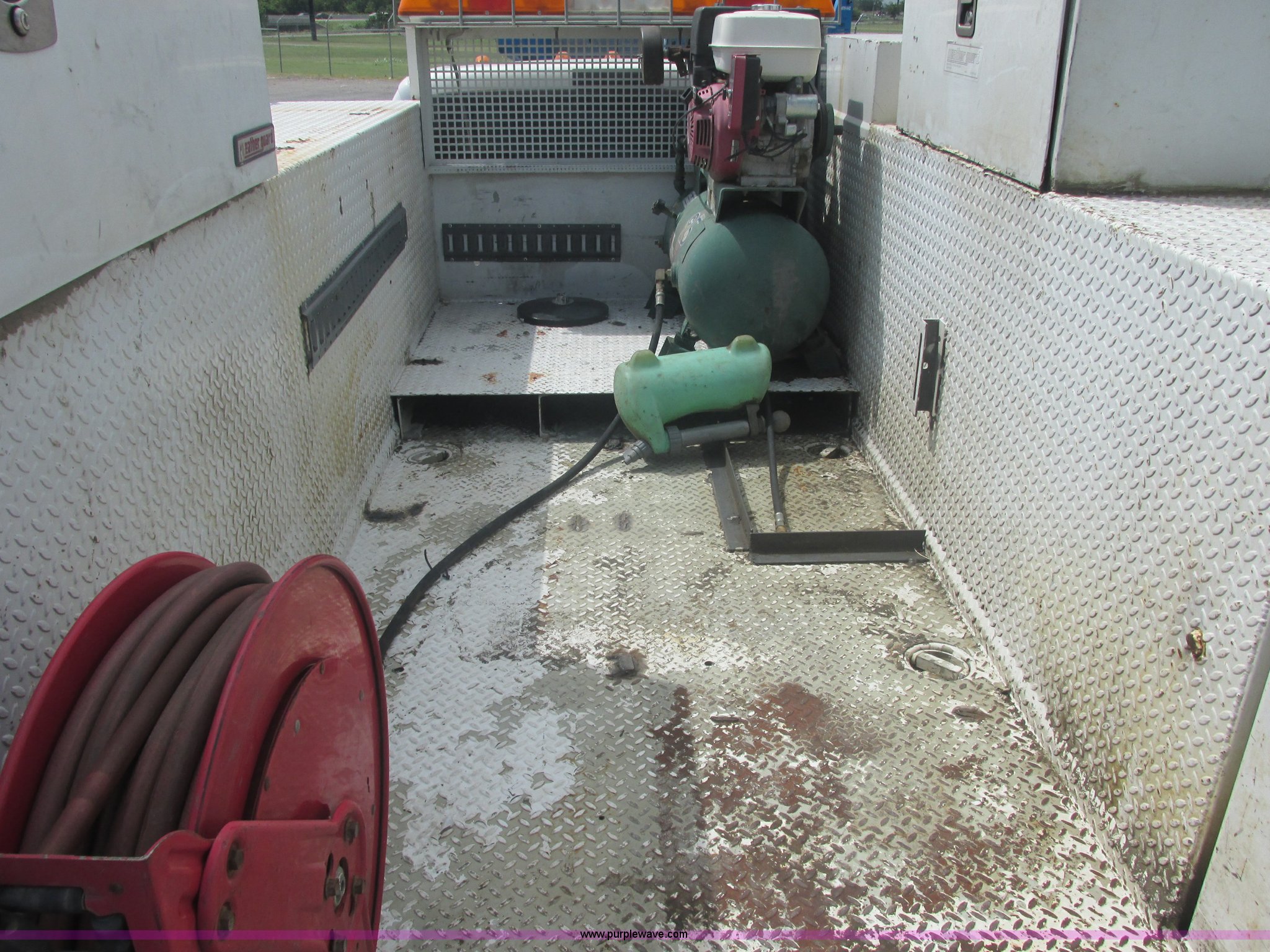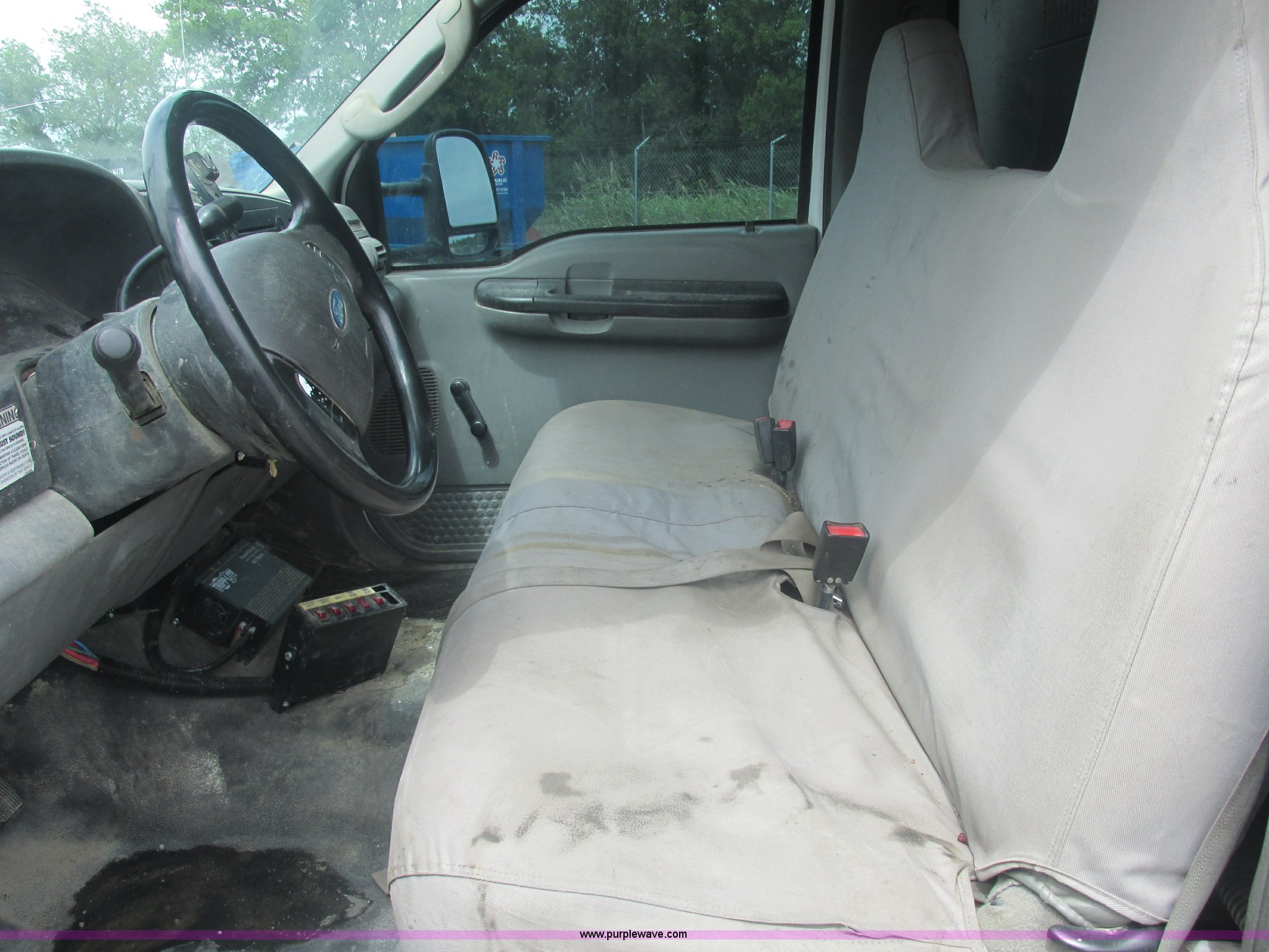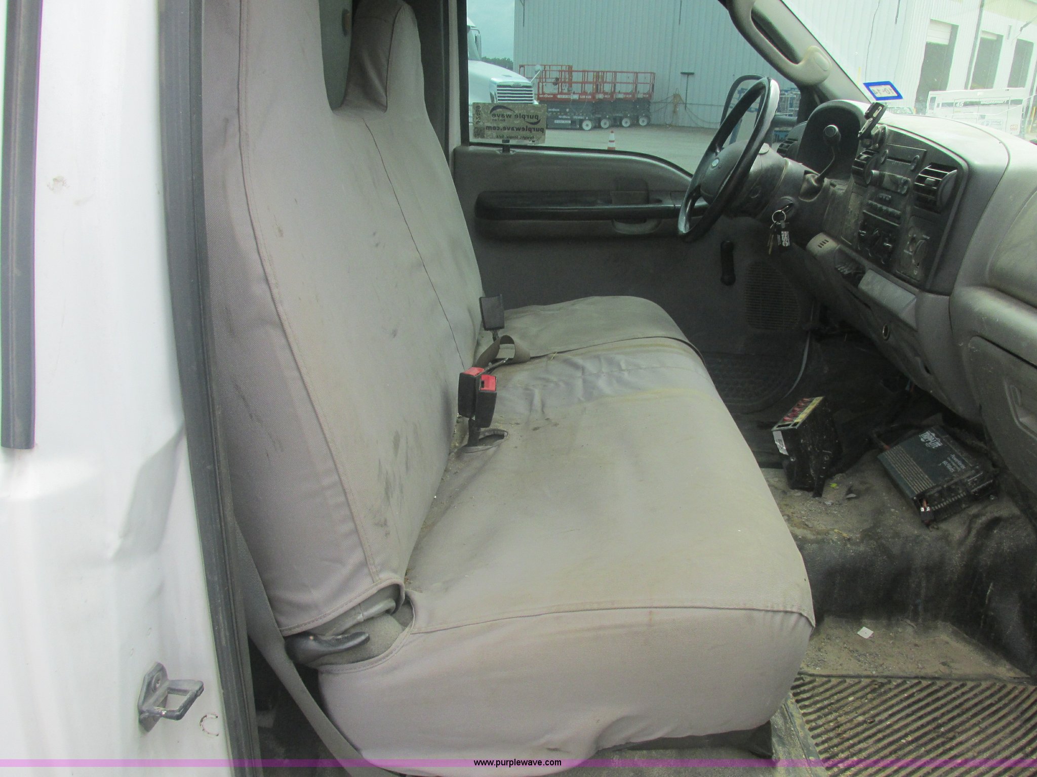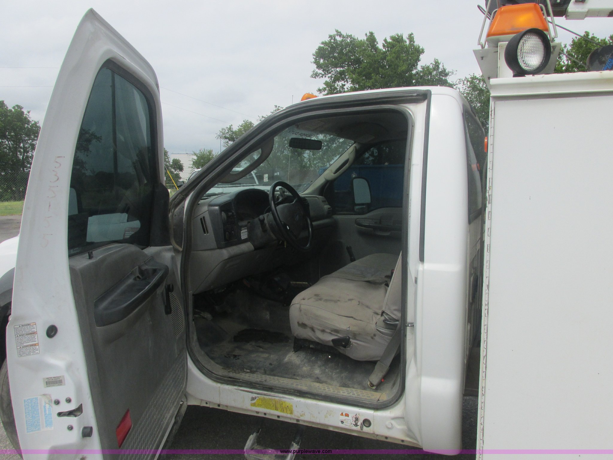 Purple Wave is selling a used Service Truck in Oklahoma. This item is a 2005 Ford F550 Super Duty XL service truck with crane with the following: 234,663 actual miles, 6.0L V8 OHV 32V turbo diesel engine, Automatic transmission, AC and heat, Cruise, AM/FM/CD, Manual windows and locks, Cloth interior, Auto Crane 60065H crane, Rear stabilizer jacks, Manchester 6105-1HCM3-3 air compressor, Hose, Serial D004407, Top mounted lights, 600 watt power converter, Backup alarm, Receiver hitch, P225/70R19.5 tires, EIN 535155RA