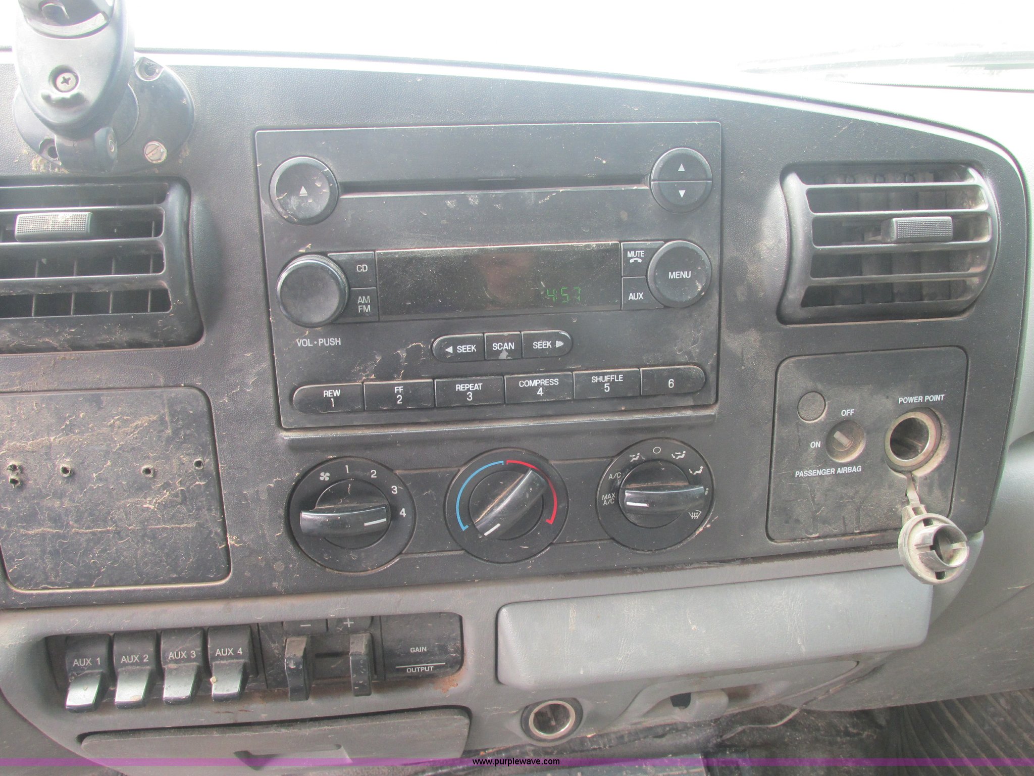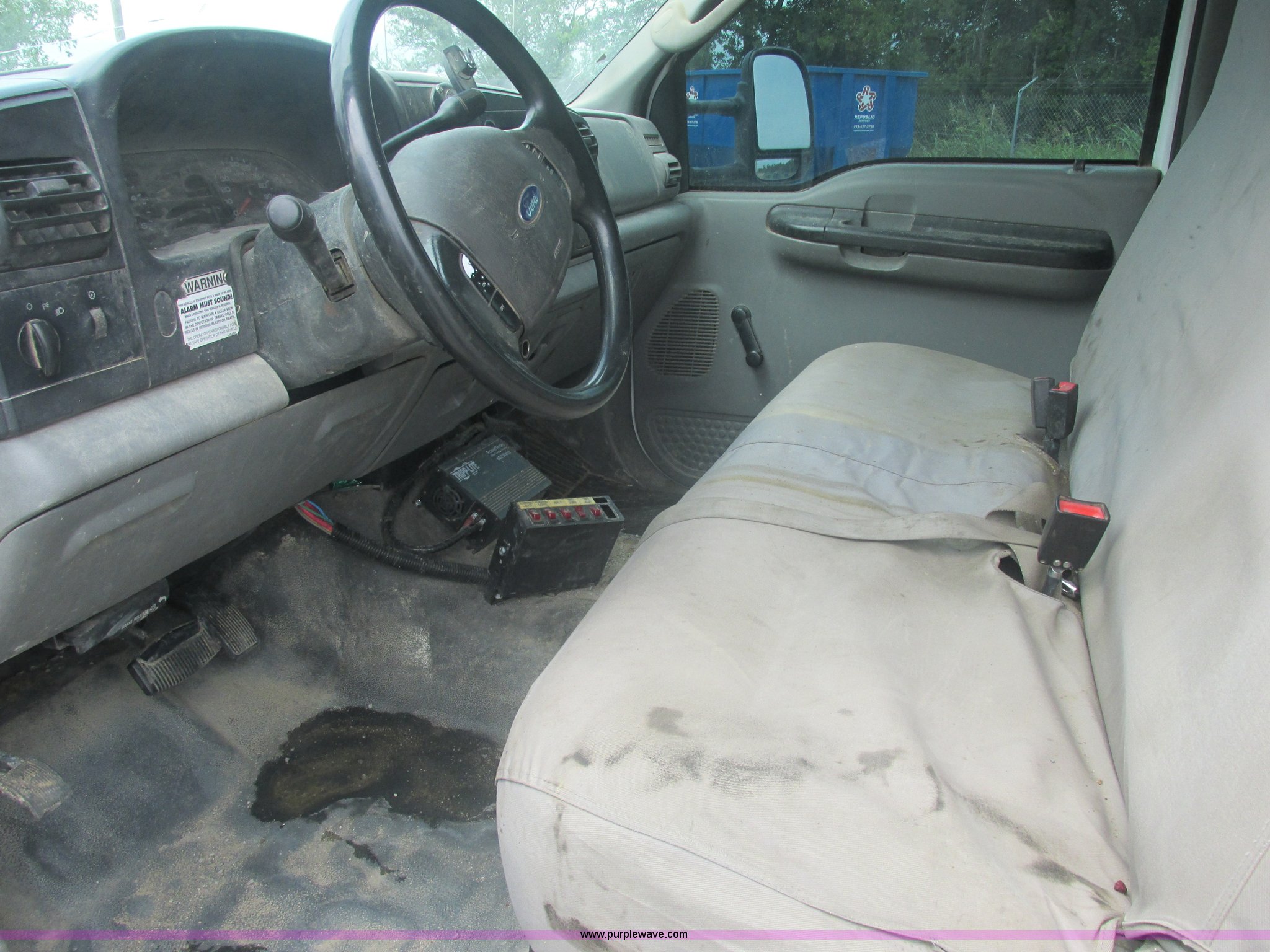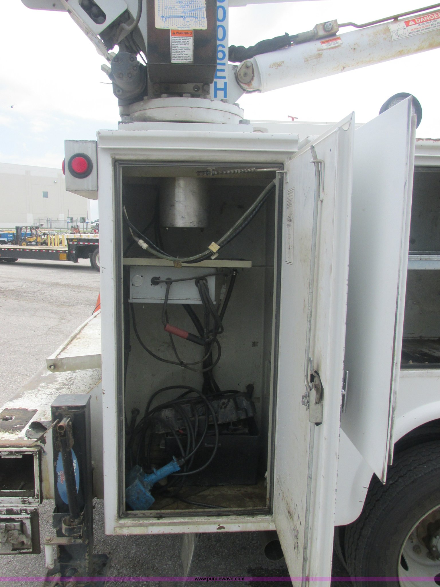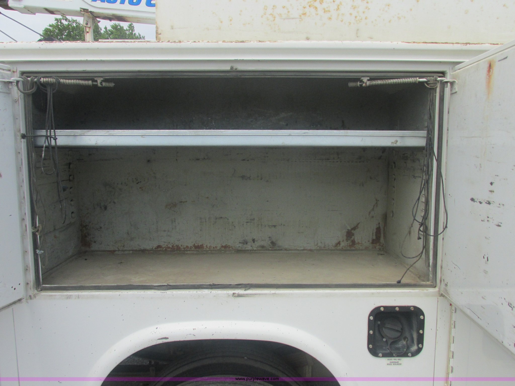 Purple Wave is selling a used Service Truck in Oklahoma. This item is a 2005 Ford F550 Super Duty XL service truck with crane with the following: 234,663 actual miles, 6.0L V8 OHV 32V turbo diesel engine, Automatic transmission, AC and heat, Cruise, AM/FM/CD, Manual windows and locks, Cloth interior, Auto Crane 60065H crane, Rear stabilizer jacks, Manchester 6105-1HCM3-3 air compressor, Hose, Serial D004407, Top mounted lights, 600 watt power converter, Backup alarm, Receiver hitch, P225/70R19.5 tires, EIN 535155RA