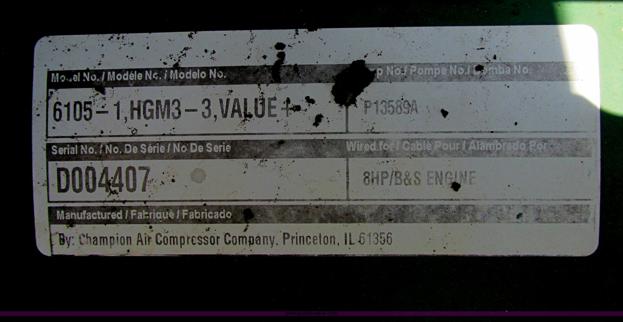 - Manchester 6105-1HCM3-3 air compressor