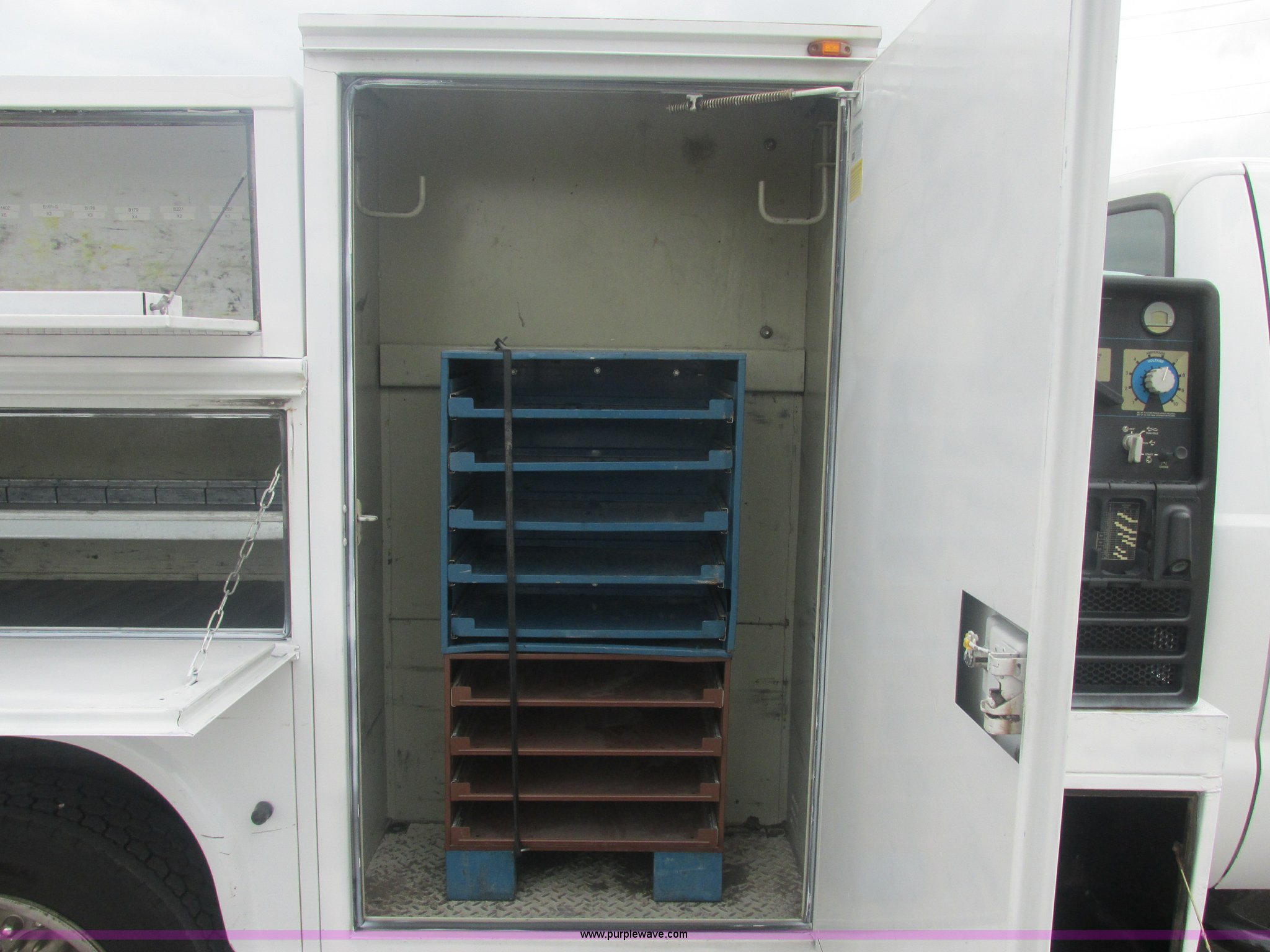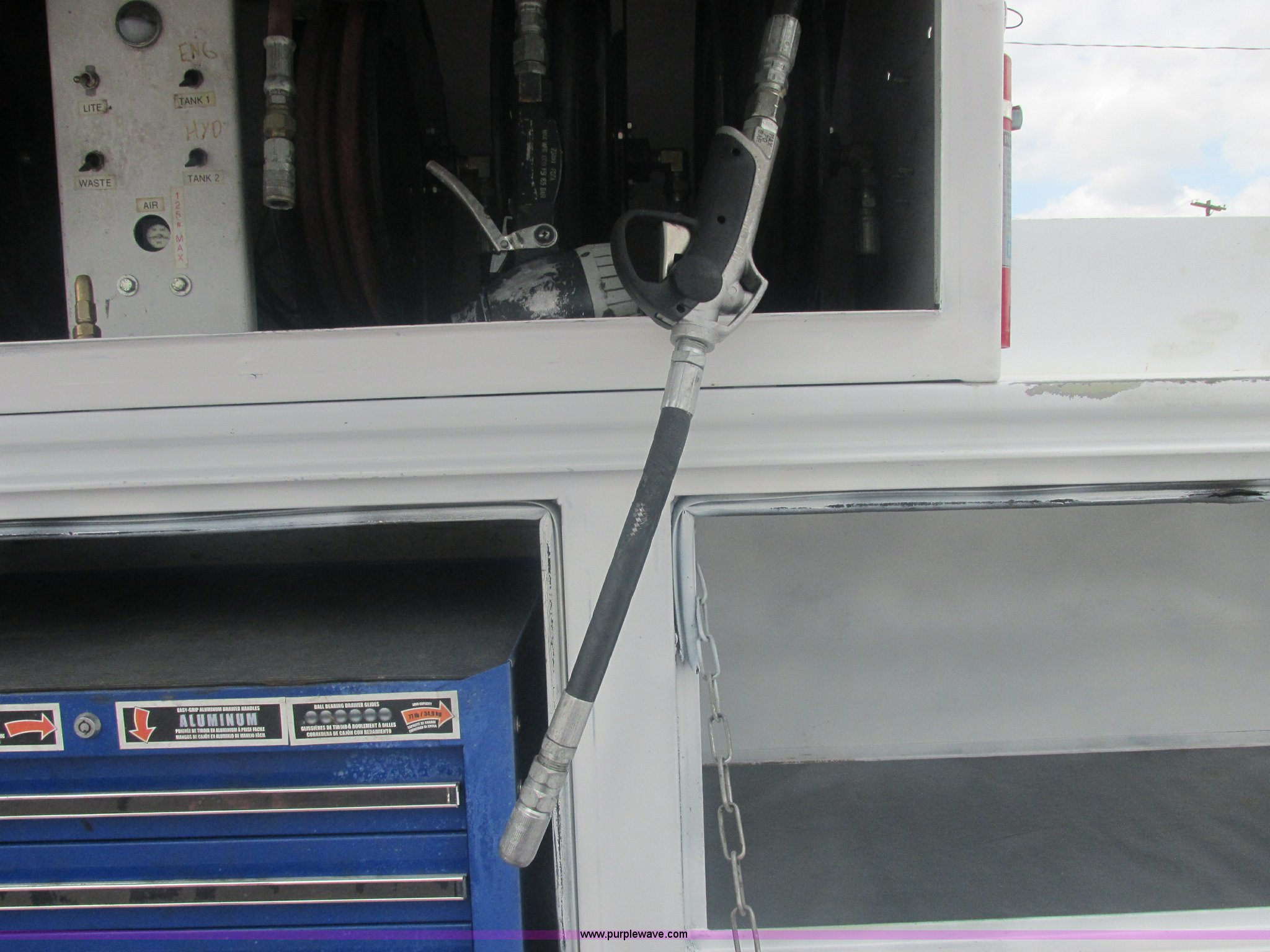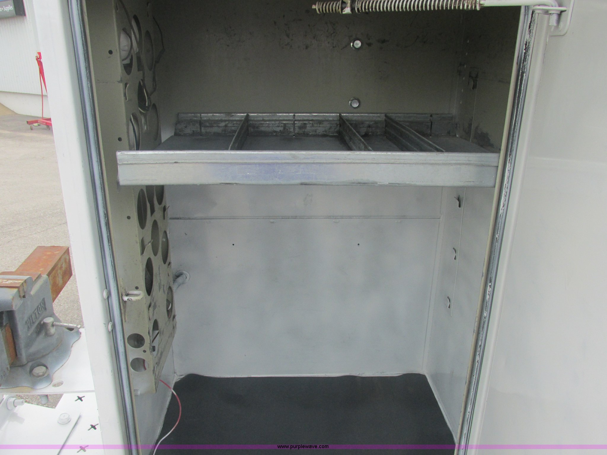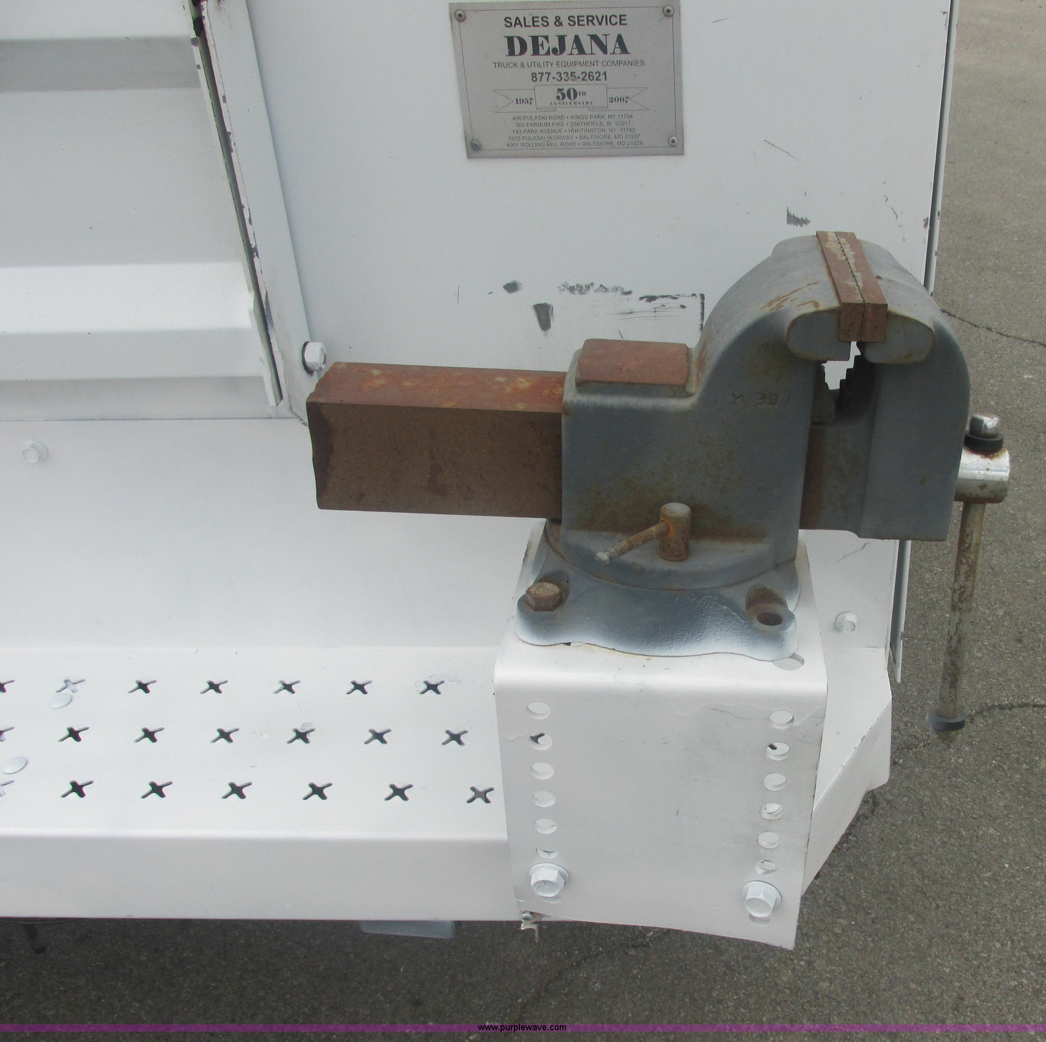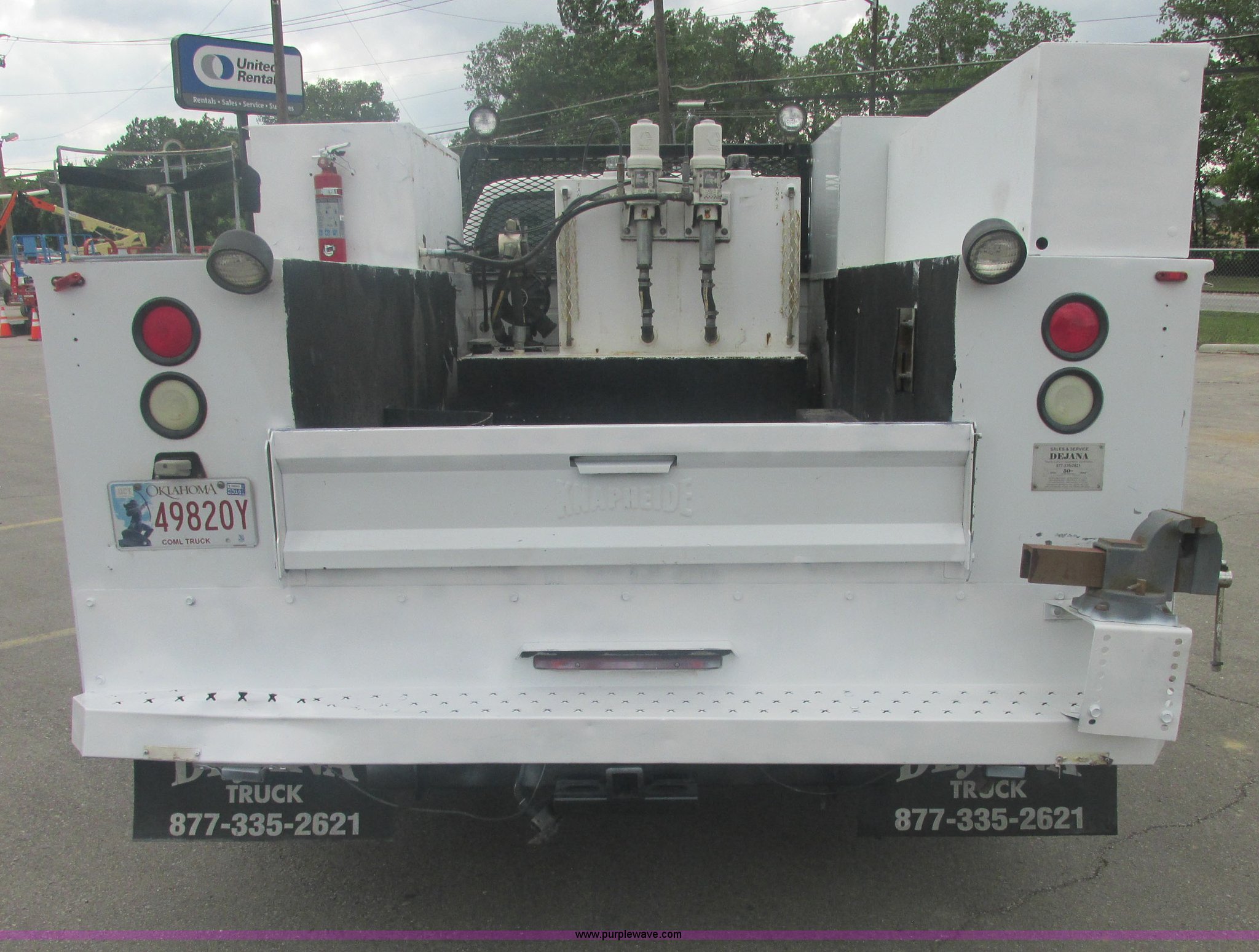 Purple Wave is selling a used Service Truck in Oklahoma. This item is a 2007 Ford F550 Super Duty XL service truck with the following: 220,451 actual miles, 6.0L V8 OHV 32V turbo diesel engine, Automatic transmission, AC and heat, Tilt, Cruise, AM/FM, Power windows, locks, and mirrors, Cloth interior, Knapheide 610805460J utility bed, Serial 20070822-0084609, Rear mounted vice, Honda GX240 8 HP air compressor, Miller Bobcat 225 welder/generator, CC/CV, AC/DC welder, 10,000 watt generator, Stock No. 907209, Battery dead, Hydraulic oil reservoir, Oil reservoir, 25 gallon waste tank, 225/70R19.5 tires, Injectors replaced eight months ago, EIN 1016956