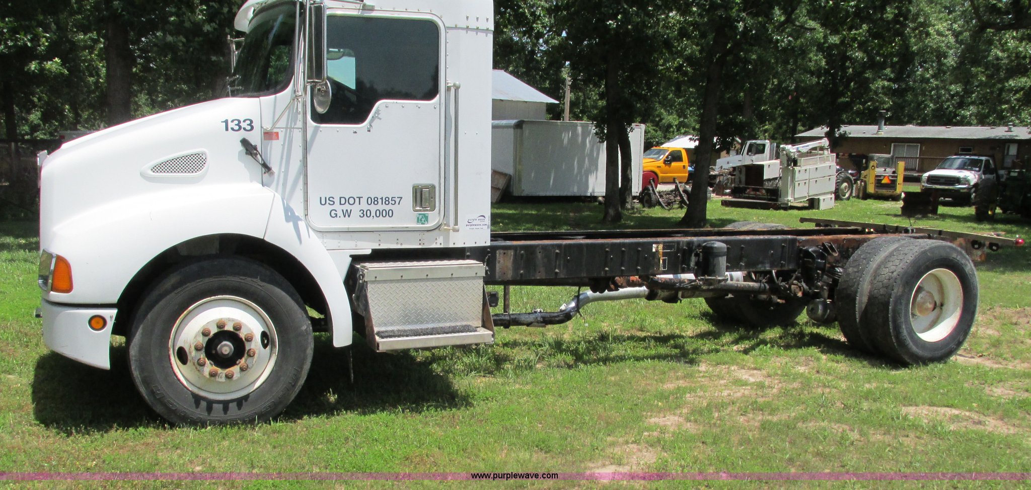 Purple Wave is selling a used Truck Tractor in Missouri. This item is a 1999 Kenworth T300 semi truck with the following: 408,633 actual miles, Cummins ISC 8.3L L6 diesel engine, Nine speed manual transmission, Model RT8709B, AC and heat, Cruise, AM/FM, Spring suspension seat, Visor, Block heater, 47 gallon fuel tank, Spring suspension, Air brakes, 3.70 gear ratio, 11R22.5 tires, GVWR 33,000 lbs, 10,740 lbs chassis weight, Taillight mounted on wood board