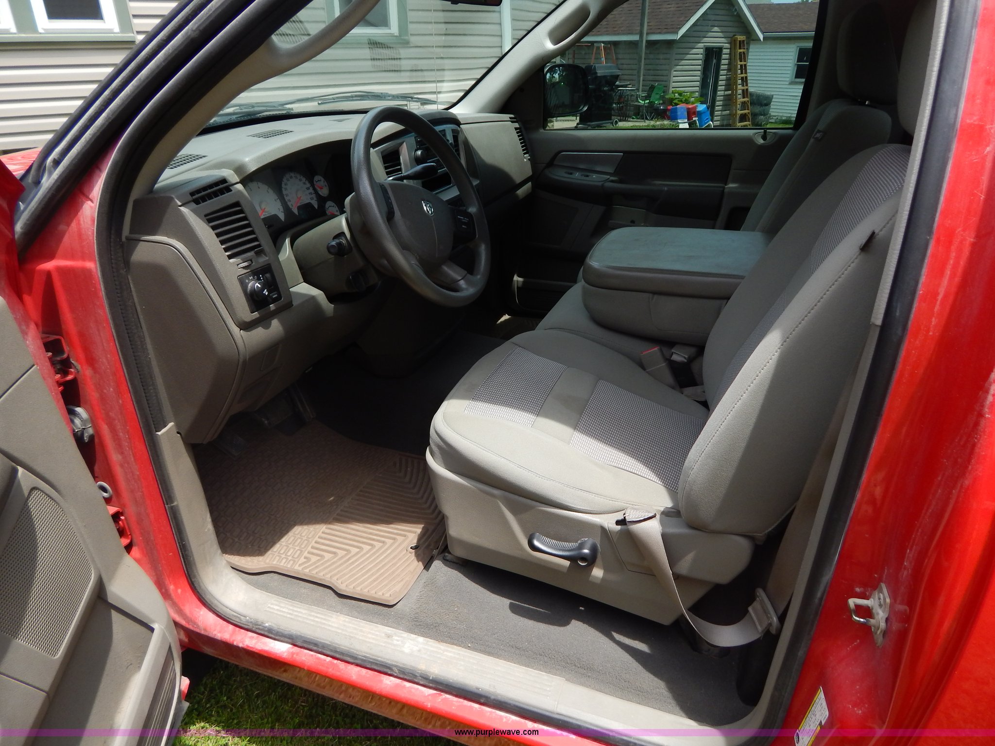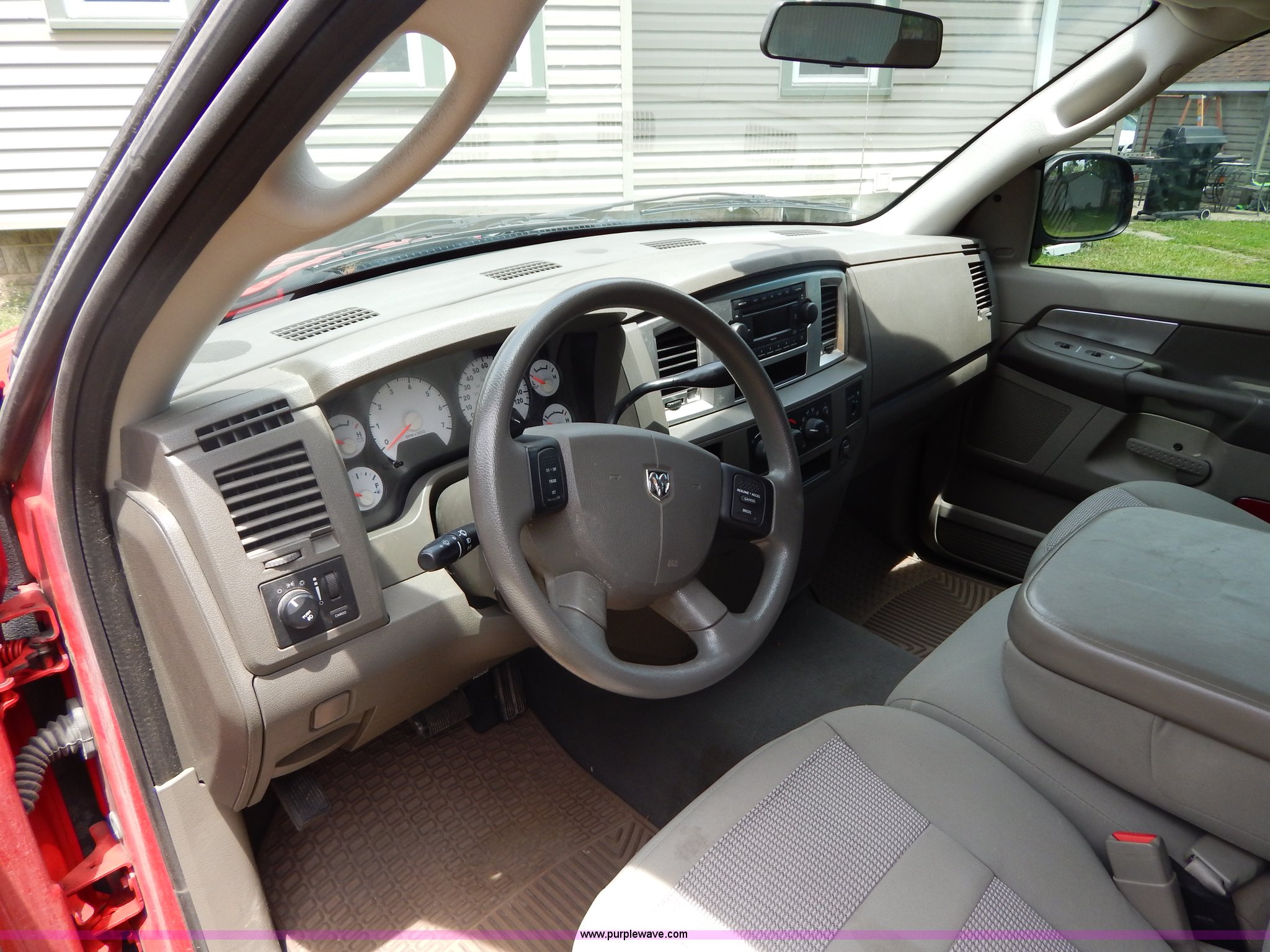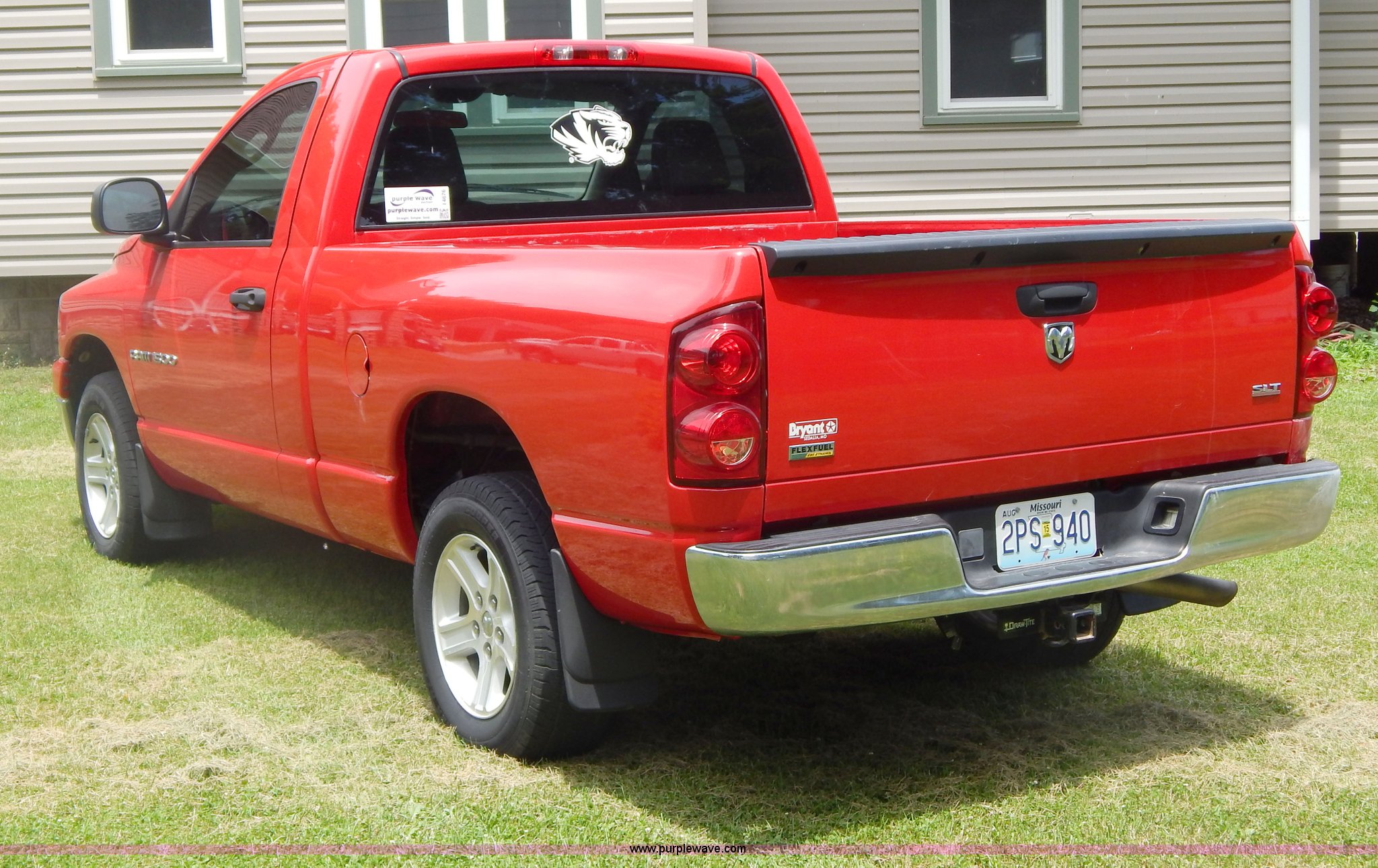 Purple Wave is selling a used 1/2 Ton Pickup or Van in Missouri. This item is a 2007 Dodge Ram 1500 pickup truck with the following: 104,079 miles on odometer, 4.7L V8 SOHC 16V FFV gas engine, Automatic transmission, AC and heat, Tilt, Cruise, AM/FM/CD, Power windows, locks, and mirrors, Cloth interior, Receiver hitch, Trailer wiring, 245/70R17 tires