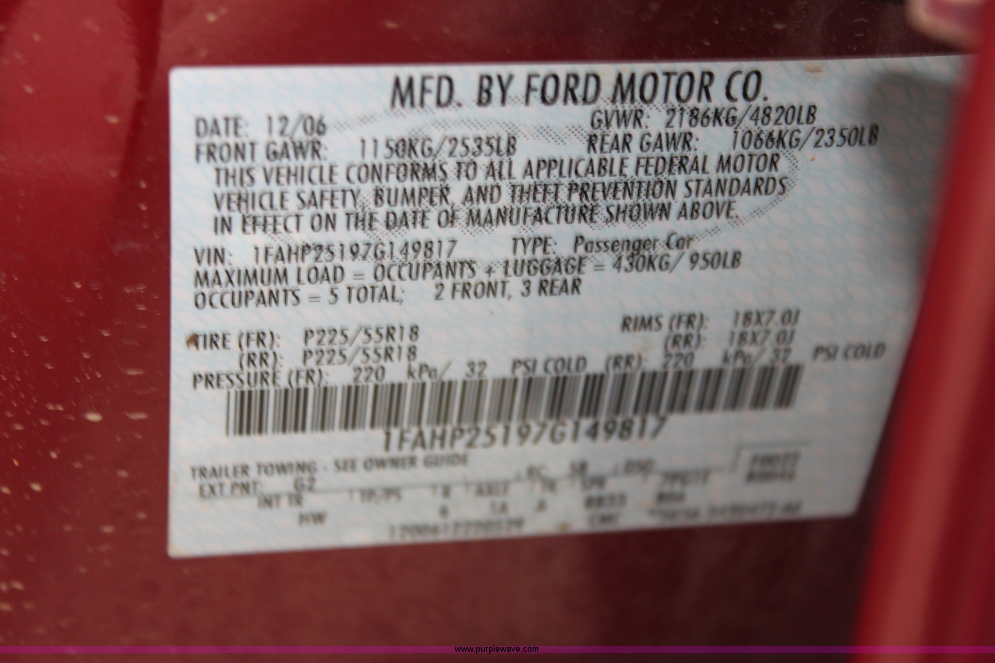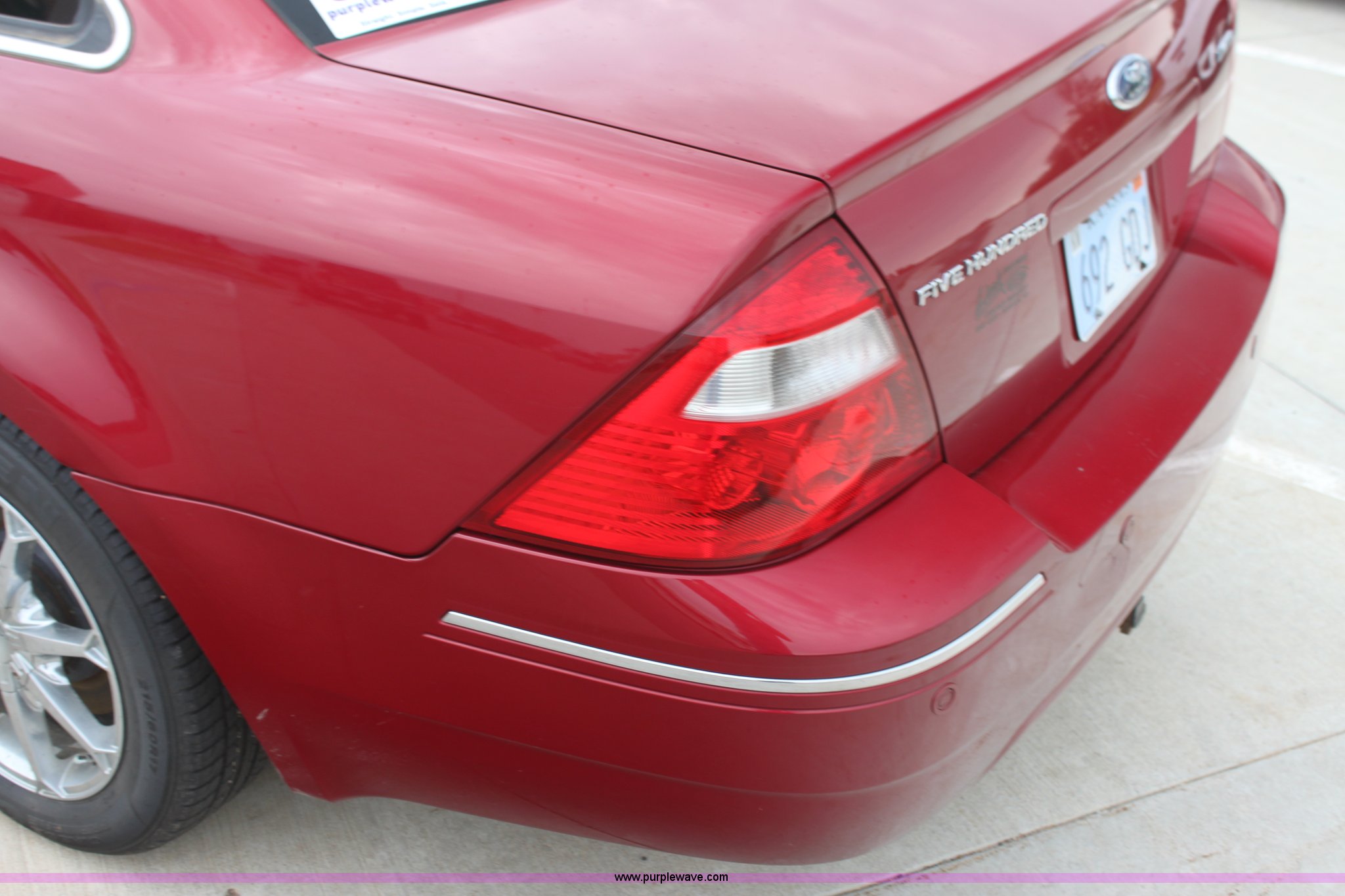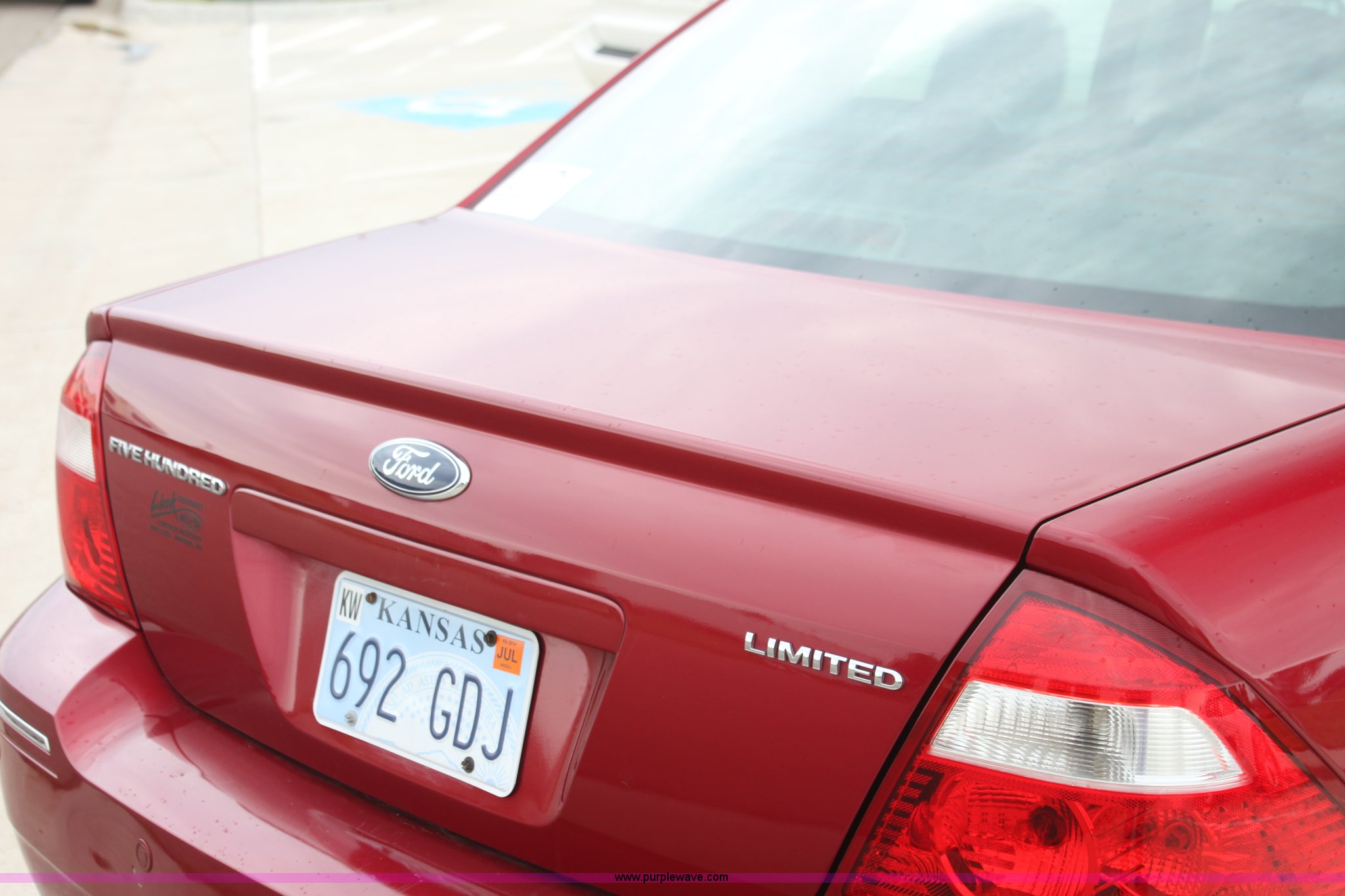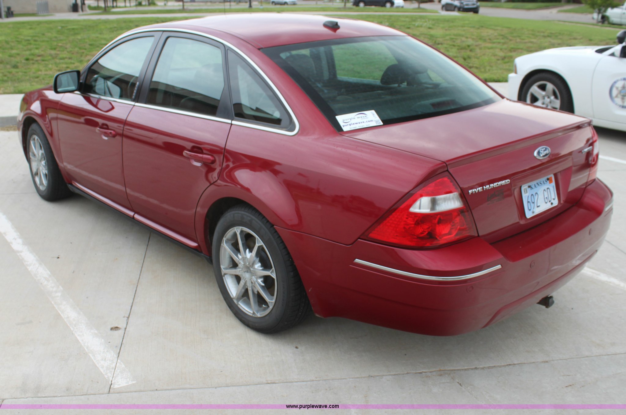 Purple Wave is selling a used Passenger Vehicle in Kansas. This item is a 2007 Ford Five Hundred Limited with the following: 75,080 miles on odometer, 3.0L V6 DOHC 24V gas engine, Automatic transmission, AC and heat, Tilt, Cruise, AM/FM/CD, Power windows and locks, Leather interior, Power adjustable foot pedals, 235/55R17 tires, Interior/exterior cosmetic damage